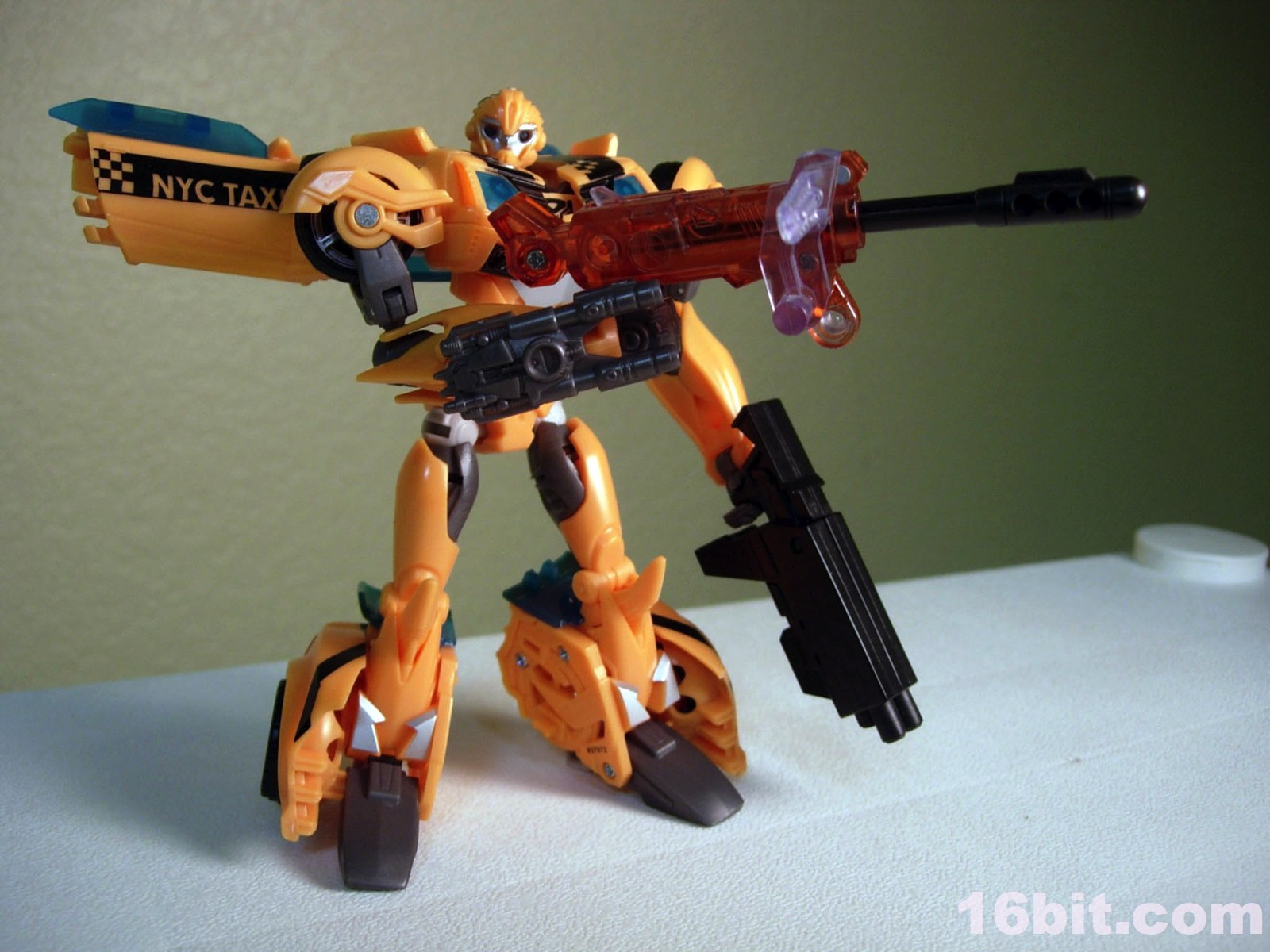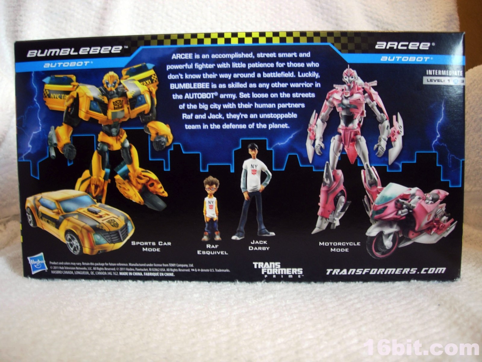 Item No.: No. 37972 Manufacturer:Hasbro Includes:Arm cannon, two human sidekicks, Arcee figure Action Feature:Transforms into New York Taxi (or close enough) Retail:$30-$33 Availability: October 2011 Other: Prime Bumblebee Prepaint