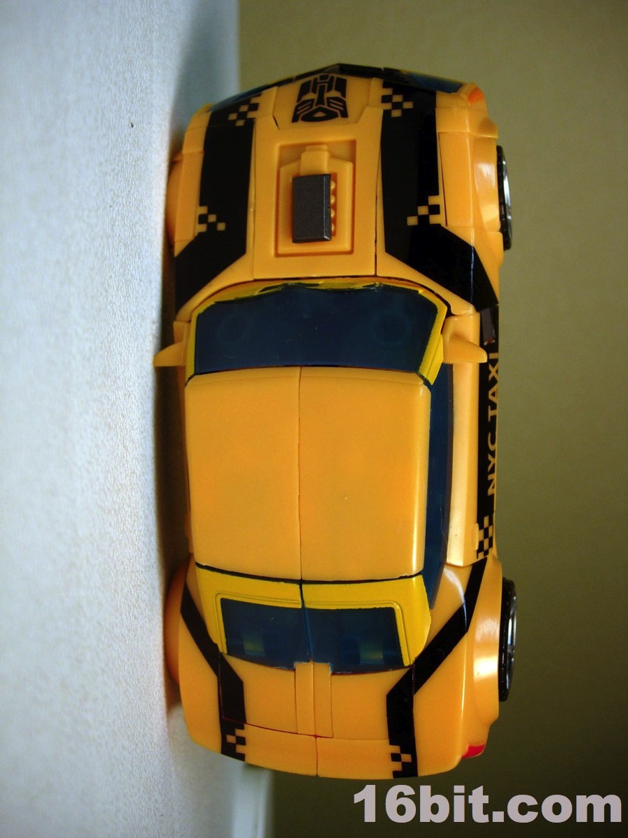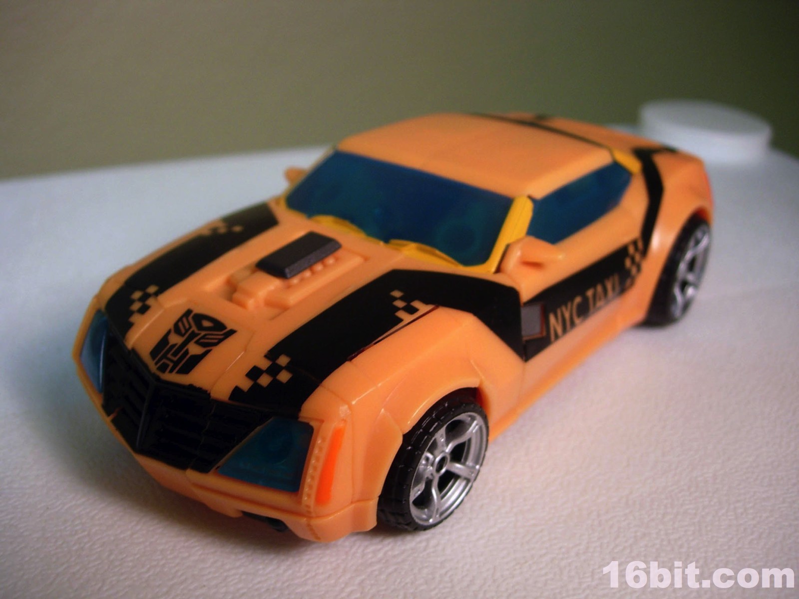 One of a few prepaints from Transformers Prime, this taxi version of Bumblebee is kind of genius. While the mold isn't exactly a cab, it is yellow, so adding some checkers and "NYC Taxi" isn't much of a stretch.