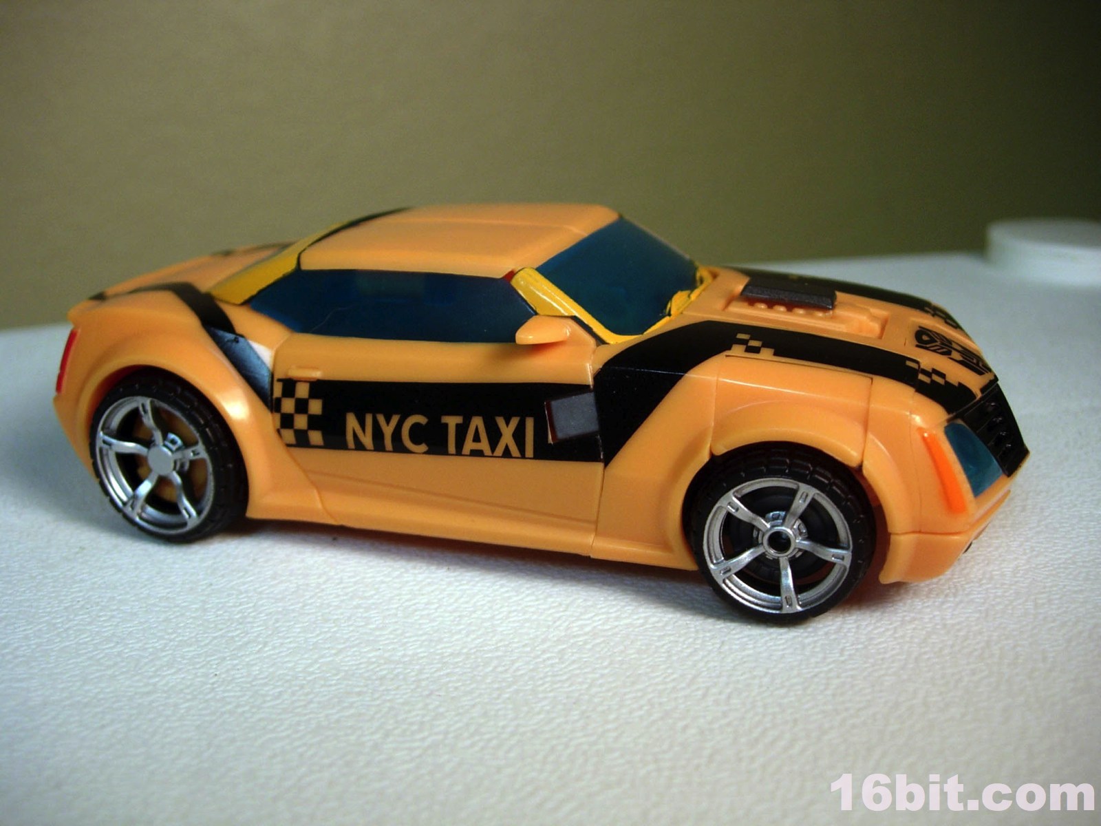 Even though I'm not crazy about the robot mode, I like the idea of owning a Transformers car that's a taxi. I've got sportscars, rescue vehicles, and police and fire vehicles... but a taxi? That's exciting. I'd also like to see a station wagon or other equally mundane (and fun) vehicle, so on the strength of that alone I'd say it's worth a look. I don't believe I'll be buying the normal version of the mold when he hits, but hey, it might be worth it for you to snag him if you can find one.