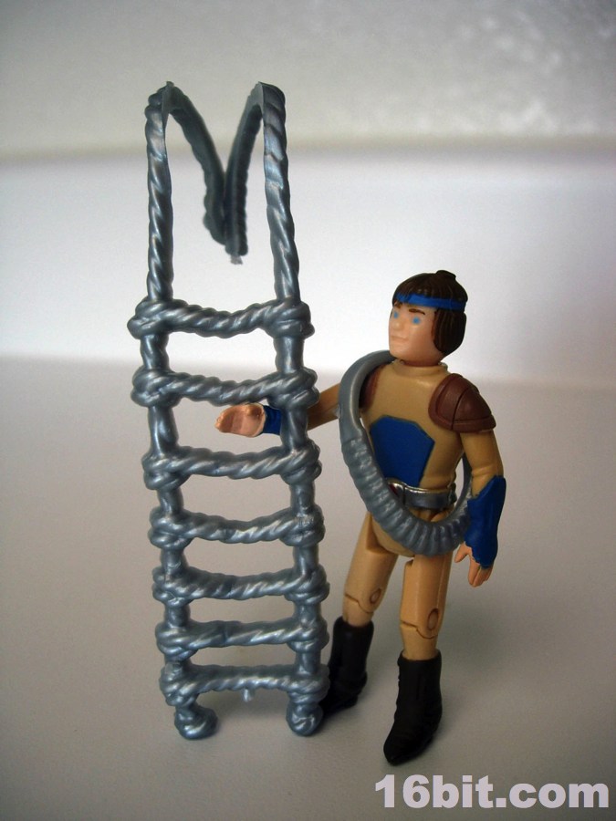7 points of articulation give him just about enough movement to sit in the saddle or carry his ample silver gear, which included a ladder, a couple of guns, and a bunch of bandoliers/necklaces/hippie crap. I don't know why I'm in such a mood to knock that group today, but man, I thought those sucked as a kid. It's not that I need guns to have a good time, but at least give the kid some tools or a helmet or something. A hat! Would a hat be so bad?