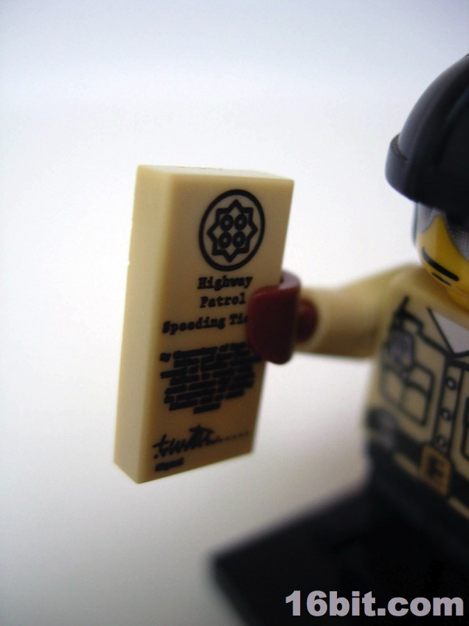 Rounding out the set is a pair of handcuffs, and you can attach them to pretty much any LEGO figure with two arms. The plastic feels like a softer PVC, which is what you want here. There's a little give so they hopefully won't snap during play. The entire package is neat, but I wouldn't suggest overpaying for this one unless you really need a LEGO Speeding Ticket... and now that I type out that sentence, I think I do need one.