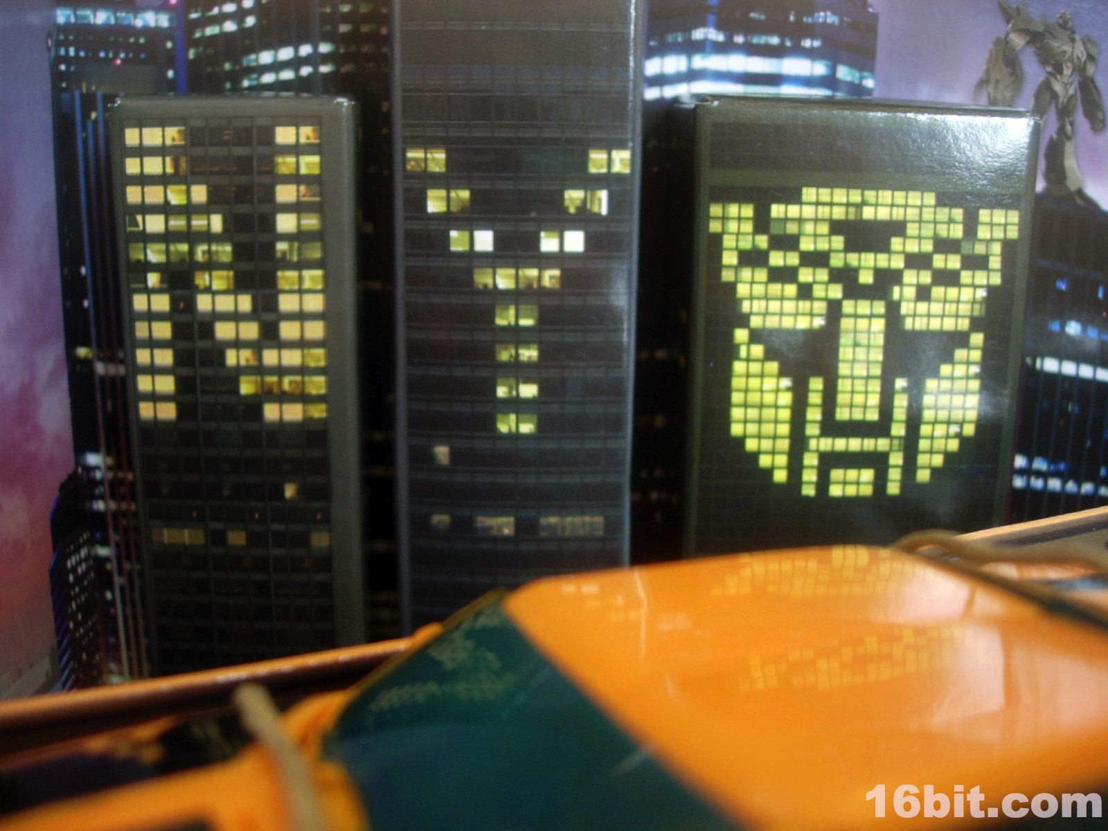 The tall robot was packaged in a fairly compact vehicle mode inside a swell diorama package which vaguely resembles New York City, which is a really nice idea. Most figures made as convention exclusives have little or nothing to do with the show, while this set is thematically tied to the event. Granted, Arcee's design has nothing to do with New York but Bumblebee, Jak, and Raff all riff on things that tourists are likely to encounter in the Big Apple. Namely, cabs and souvenir t-shirts.
