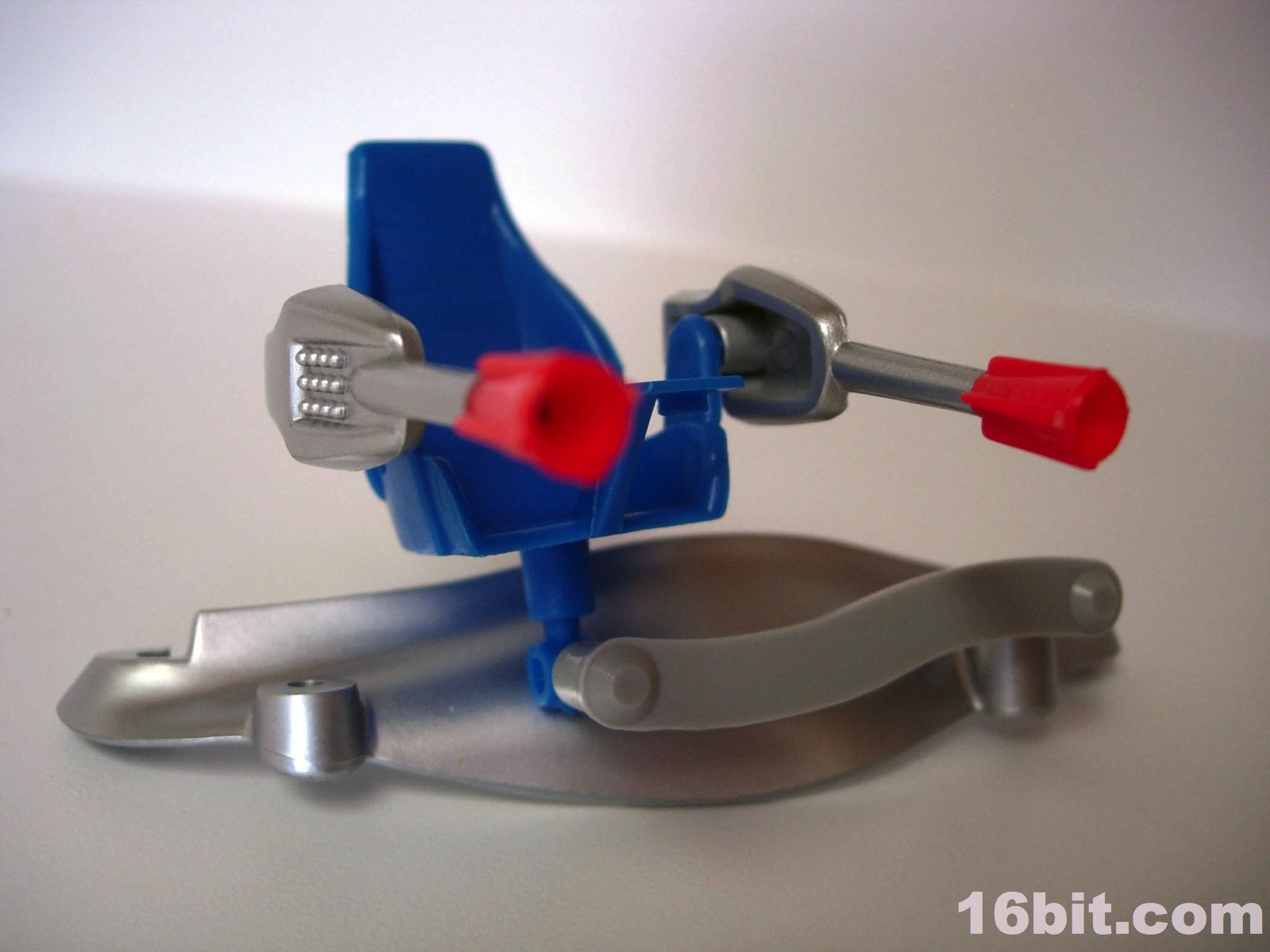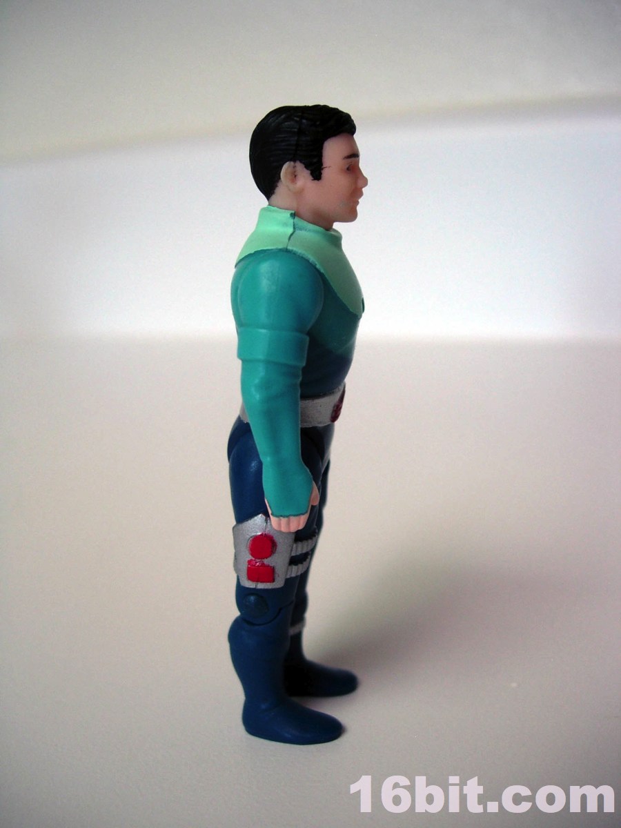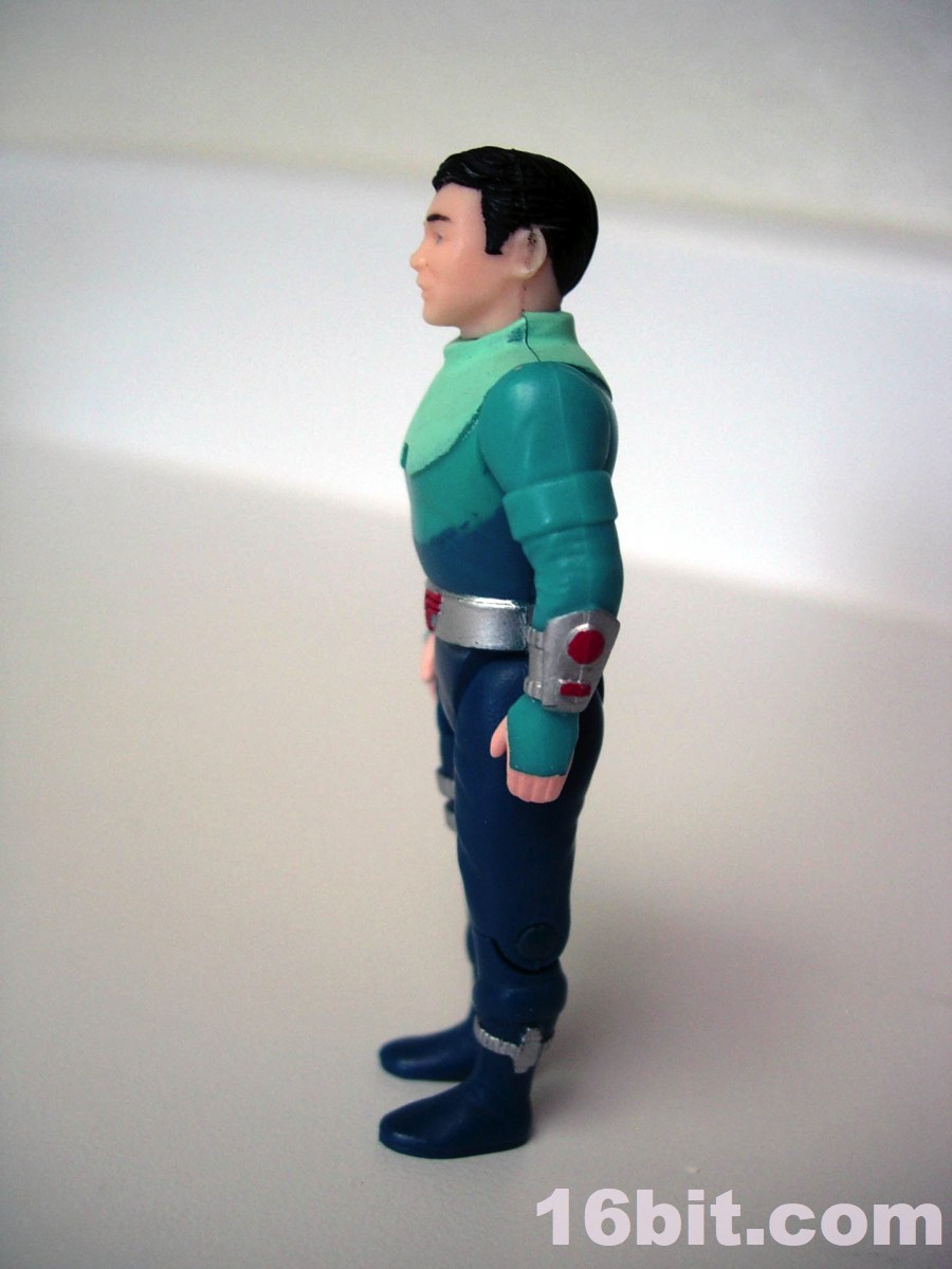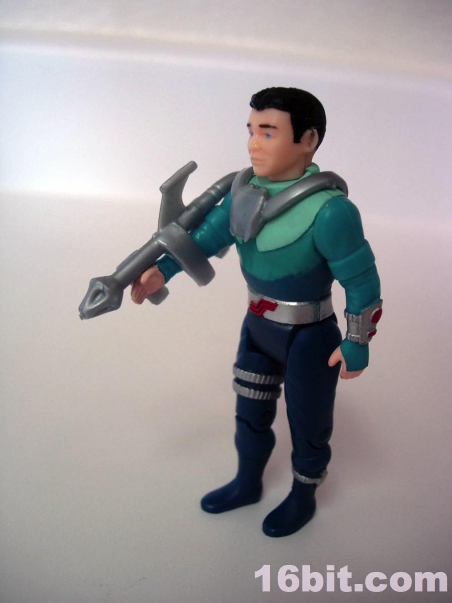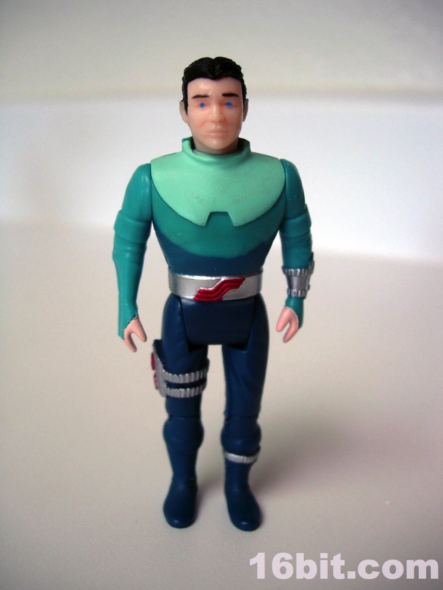 His little buddy Shadow is blue. Very blue. He has blue eyes, black hair, and has a few silver bits and pieces that practically cry out "I'm sorry I came from the late 1980s when everything was vaguely pacifistic yet I still attached a half-dozen guns to this poor innocent lizard thing." Like other figures in this line, he has jointed knees, shoulders, hips, and a neck so he can be posed to sit in the big armored bits for his ride of choice. What you see is basically what you get... even as a kid, I knew the humans were holding the line back. Why not dudes in space suits? The Rulons were cool enough with their freaky animal-inspired designs, but man, the humans. Such a snooze.
