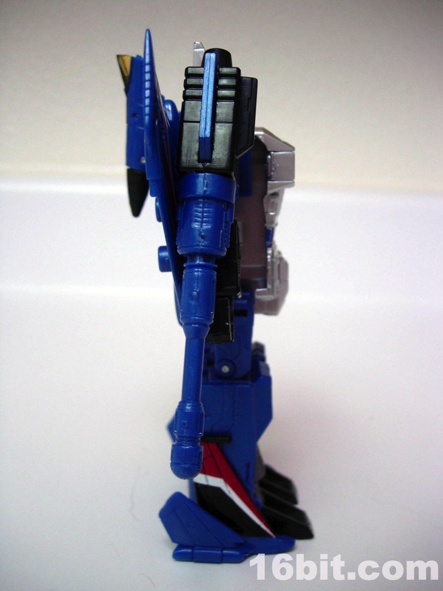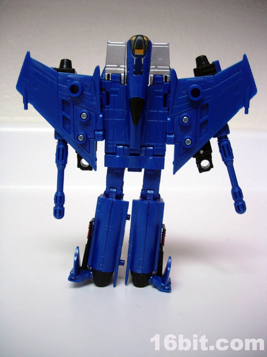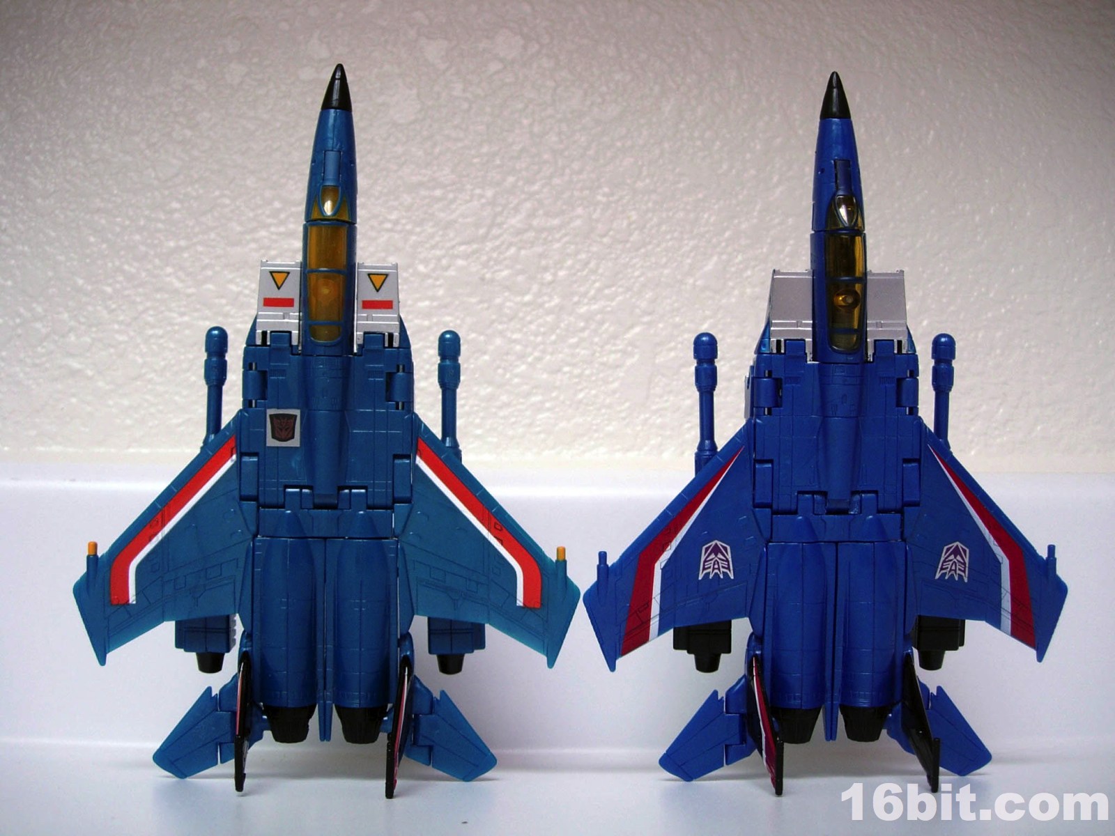 This was the first non-exclusive Thundercracker in this "classic" style, plus it managed to roll out at a time when Transformers fever was riding high due to a new movie. Interest in it quickly cooled, but it's still a fine toy and you should probably get it. I would say that the Botcon Thundercracker (pictured below) may be the best version as it's a pinch closer to the original toy from 1984. The 2011 Generations release seems to be more in line with other interpretations as he has Decepticon logos on his wings as well as just below his neck, which is a design trait introduced to the Seekers around 2010. (See also Dirge.) I don't care for it, but considering the difference between Botcon Thundercracker and Generations Thundercracker is at least $100 most of the time... I think I can let it slide.