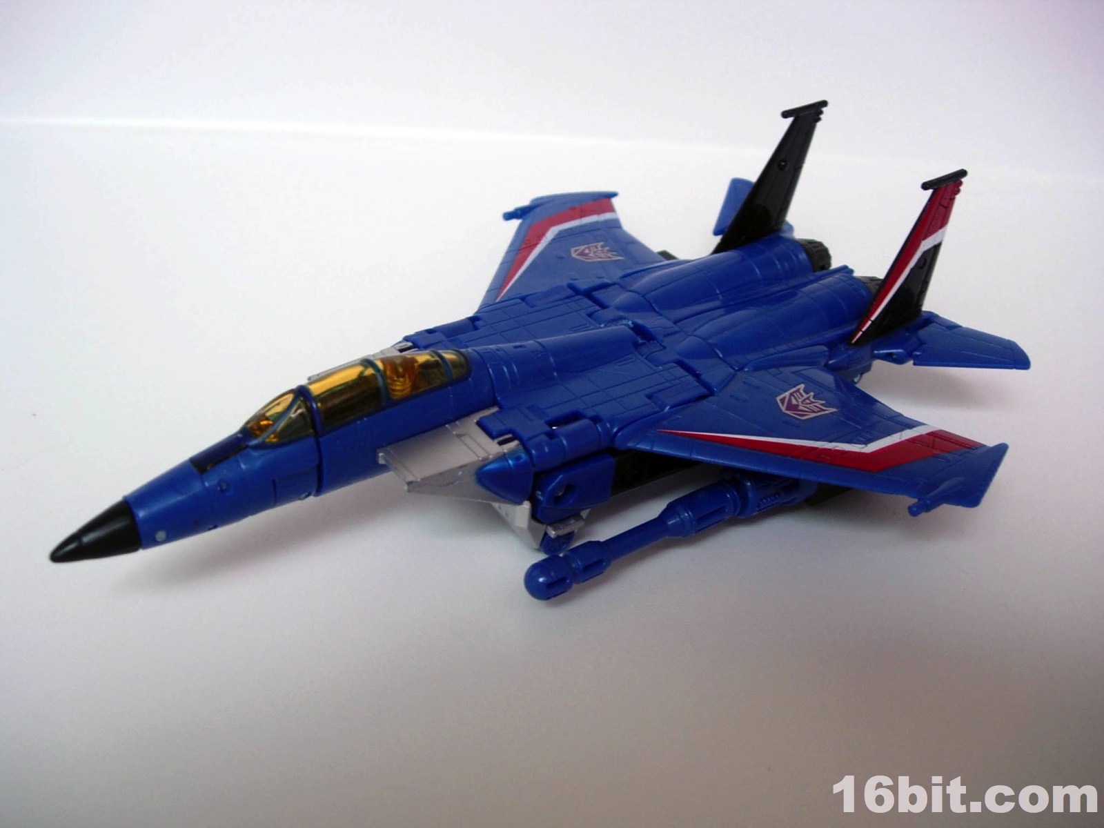 The jet mode has minimal functionality-- like most alt modes, it basically sits there. Since you can access the cannons, Thundercracker can "attack" in this form, plus you can use the landing gear if you're so inclined. It's a nice looking model, but again, it doesn't do much.