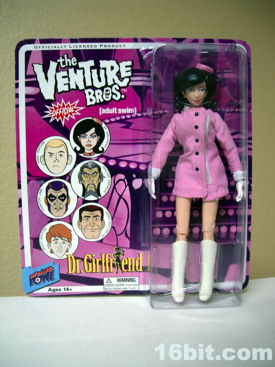 As (at press time) the only Dr. Girlfriend toy larger than a small PVC trading figure, odds are you'll be getting her based on the merits of the character rather than the figure. While I do wish she had snaps instead of velcro on her dress, she turned out really well and the character design works well within the vocabulary of the 1970s Mego format. This is more of a display piece than anything-- she needs some help to stand, for example, and it's not like there are any vehicles or playsets. As I'm a fan of the show and this feels like some weird artifact from the future, one I'm happy to have around. I'd suggest fans of the show grab it, but if you aren't already sold on the character it's not like the figure breaks new ground in a way that will slap your collection upside the head. It's good, it's fun, it's from my favorite Adult Swim show. And that's good enough for me (for now, who knows what's next?)!