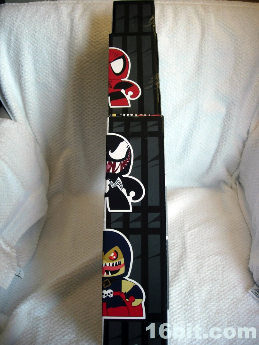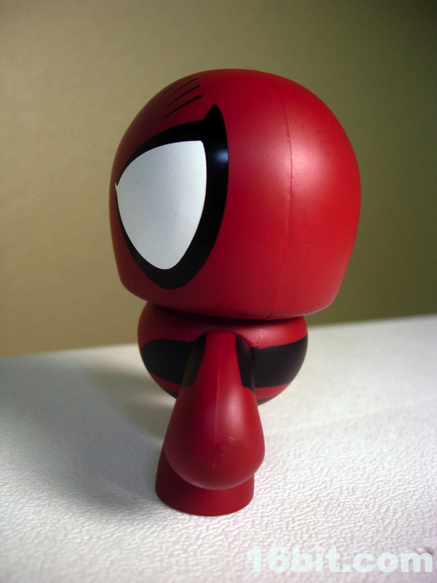 It's not common that Hasbro painted actual emotion on the Mighty Muggs in some sort of comic emote, but Spidey here actually has a visual representation of his spider sense, tingling. I dig it. This tiny vinyl figure lacks the "webbing" of his costume, presenting the figure in a much simpler, even more stylized version of his famous costume. Molded in red with white and black, this may be one of the simplest takes on Peter Parker's alter-ego, but I have to say the six "spider sense" marks really makes it one of the most fun.