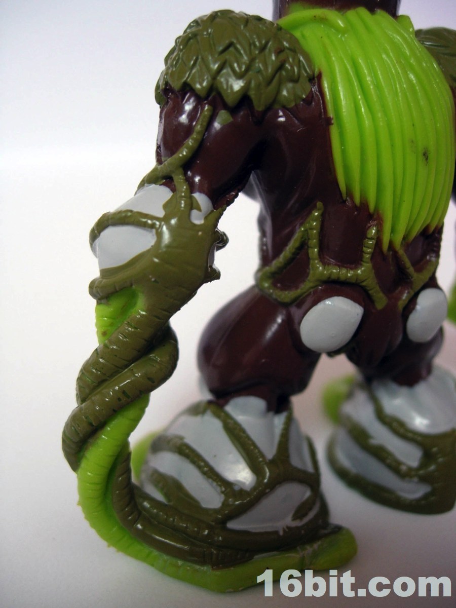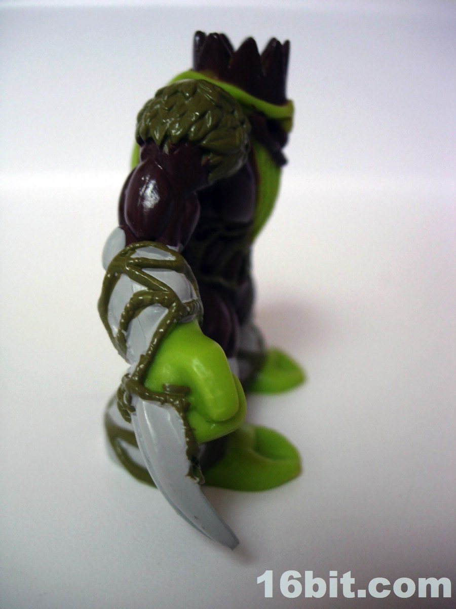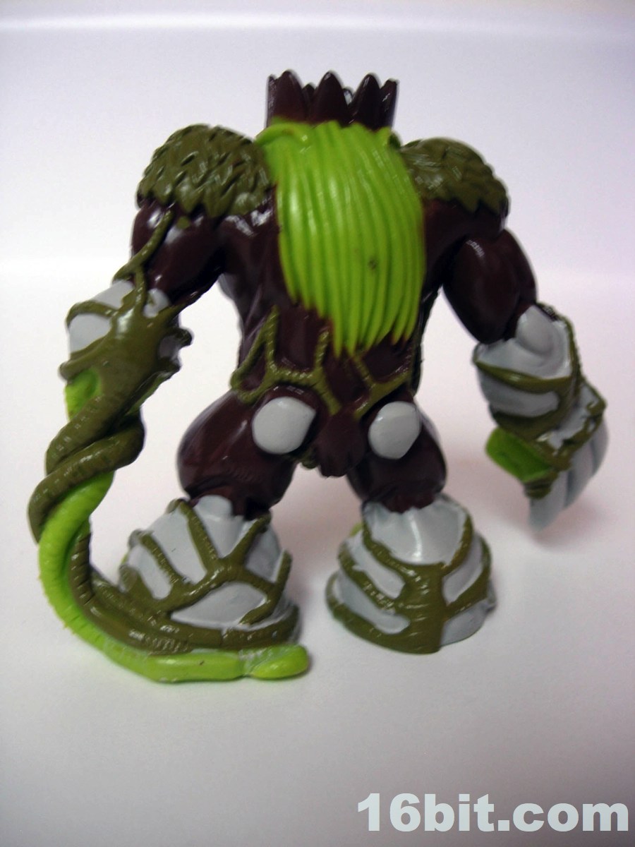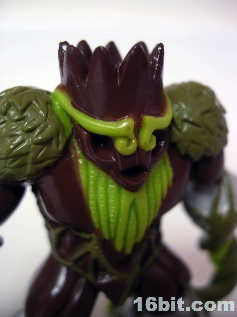 Next up is Barbatus, the Lord of the Forest. The original sculptors did a nice job here, giving him a crow, a beard, and tons of forest-like elements all over his person. The shoulders are made of leaves, some moss makes up his outfit, rocks make up his joints (and butt), plus there are tendrils for one of his hands. The fist covered in a Wolverine-esque claw is a nice touch to give him a little more malice, as his trading card paints him as a toxic, lethal, and dangerous overlord of the dark and tree-covered realms. They really did a bang-up job translating his role into a toy, and the creature makes a strong statement as a central figure in this line. It's worth getting.