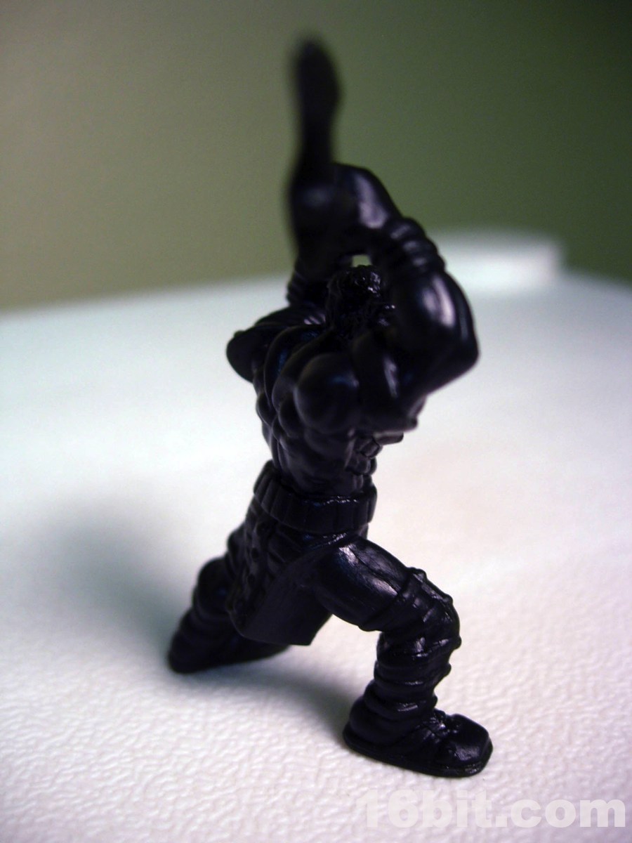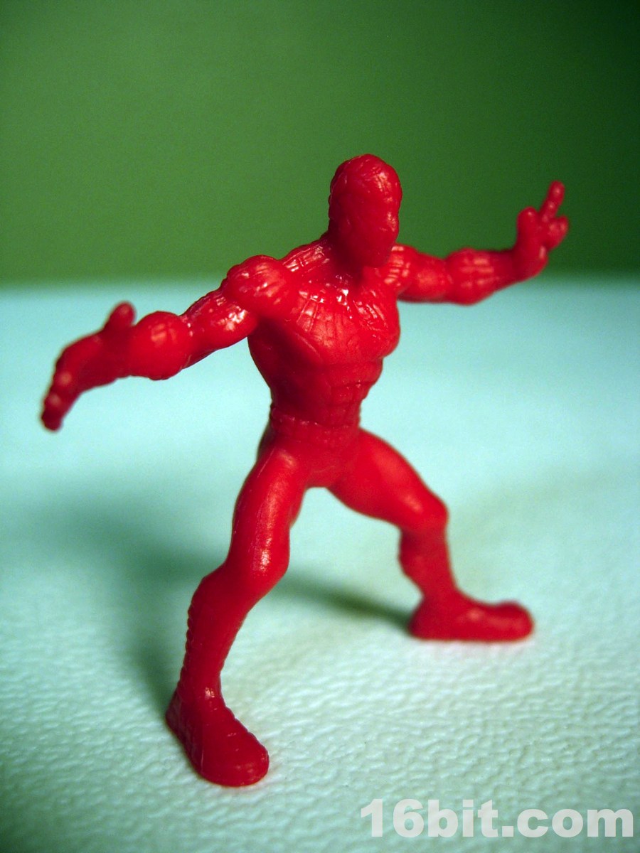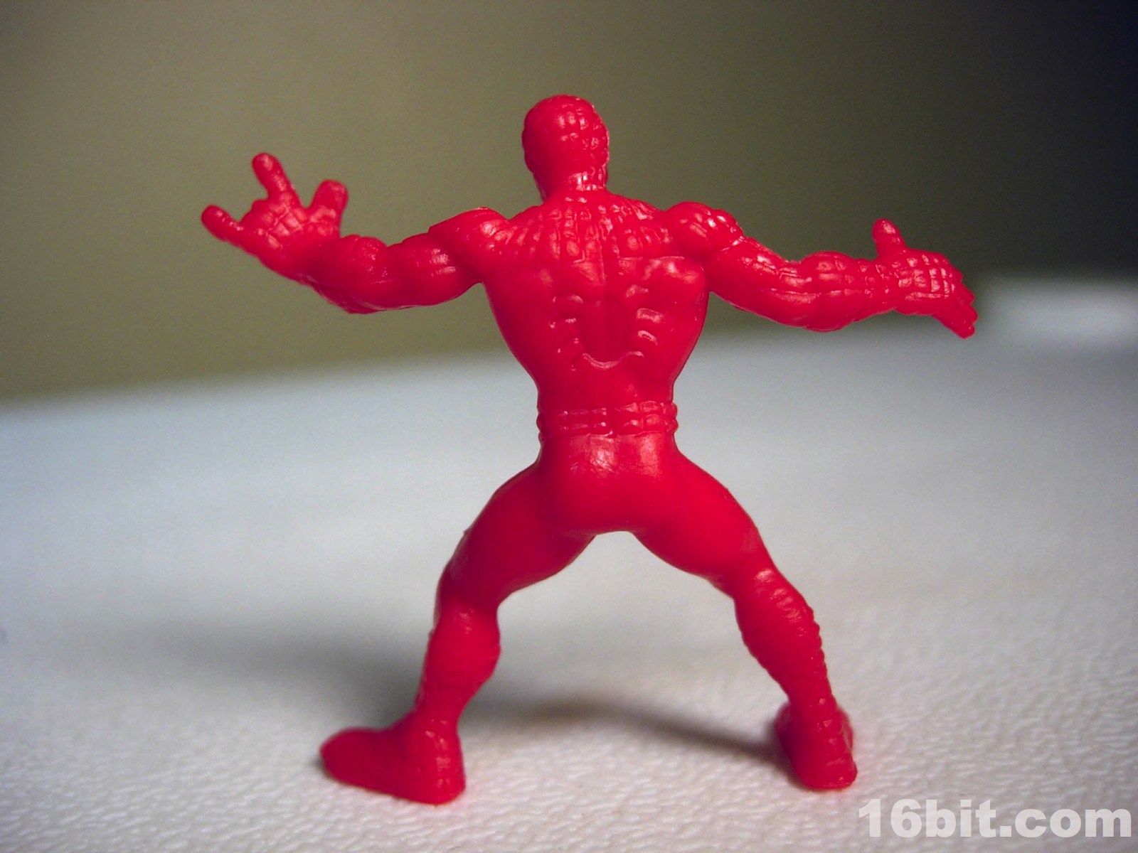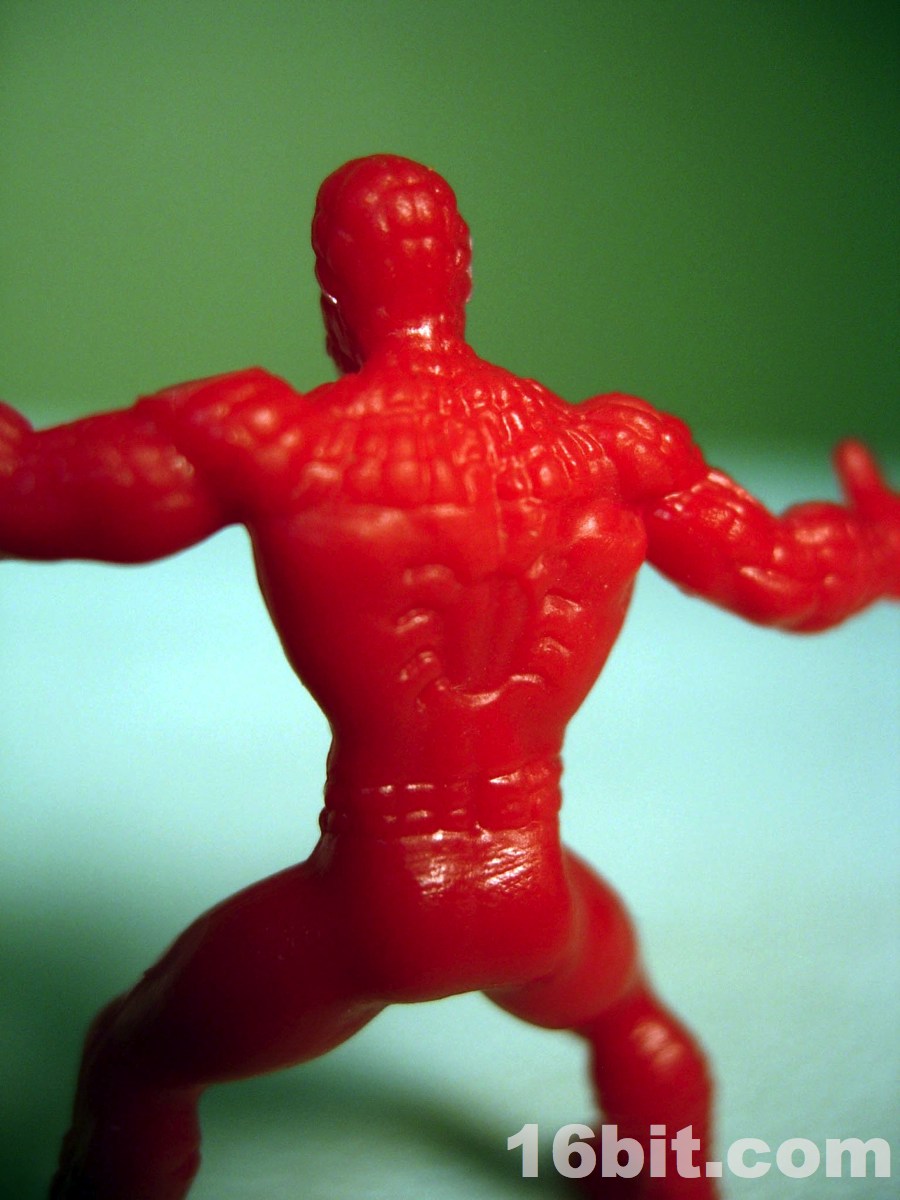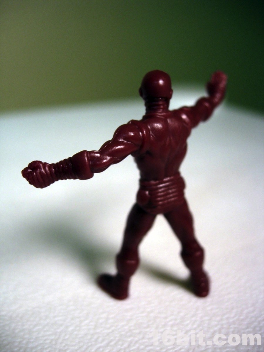 While not "hard plastic," the HOH figures are not as flexible as M.U.S.C.L.E. or their cousins. If anything, they feel like a significantly higher-quality incarnation of those little green military figures we've all seen. The sculpting is crisp, the molding is clean, and there's no real danger of ugly flash hanging off them yet. (Well, with the exception of my War Machine figure, as seen below, which I decided to keep on for now.) I fear that this kind of plastic means they could get damaged if not properly stored over time, but it does have an advantage-- their feet aren't huge and they have no display stands, but they can stand with virtually no problems. This may not sound like a big deal, but I was actually stunned all 8 could stand up perfectly well right out-of-the-box and that the detailing was really nice.