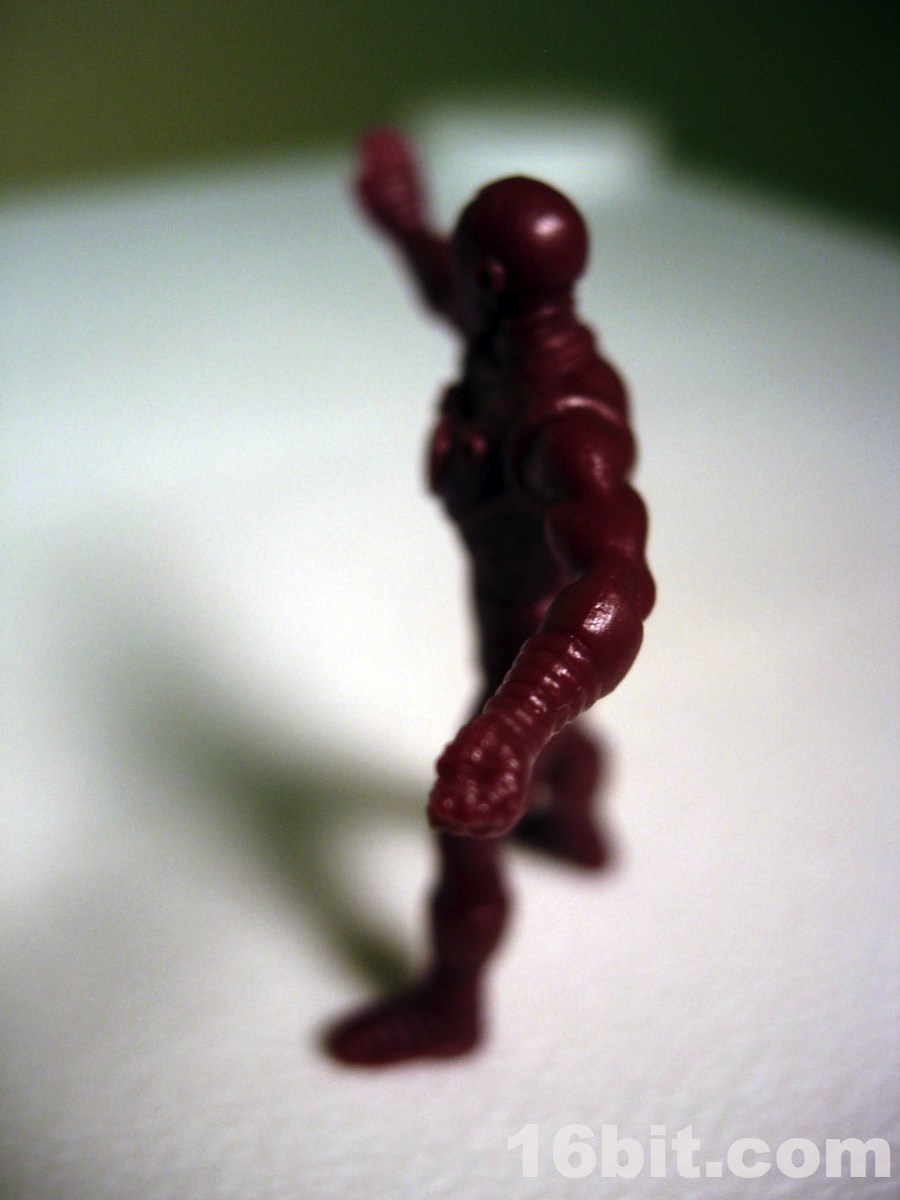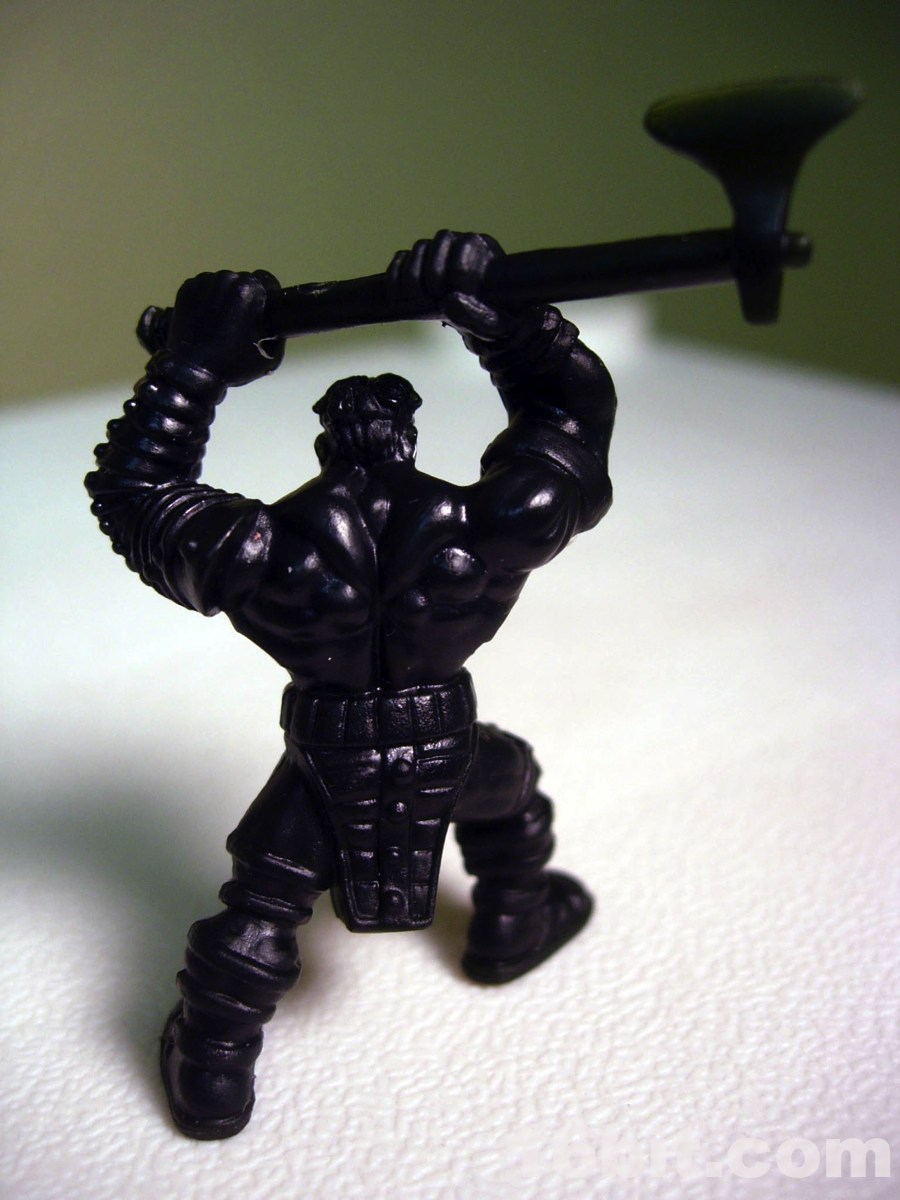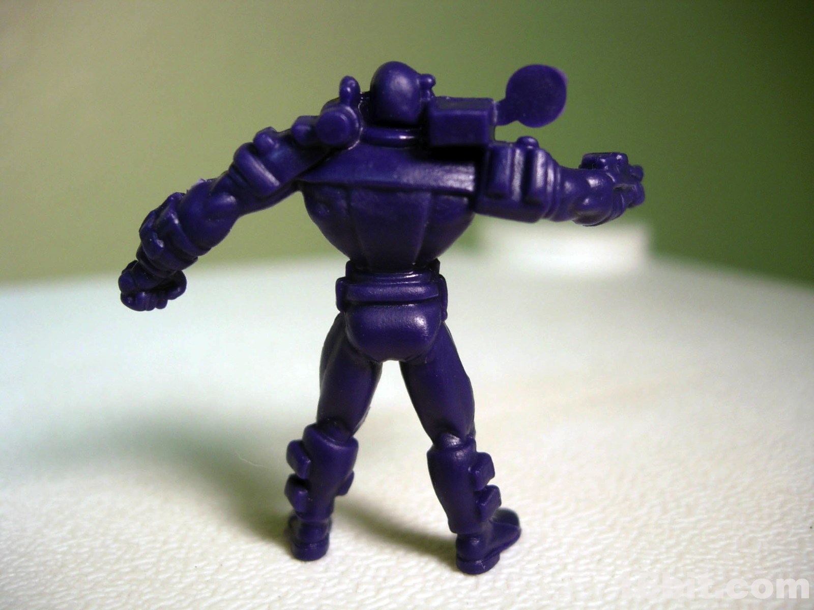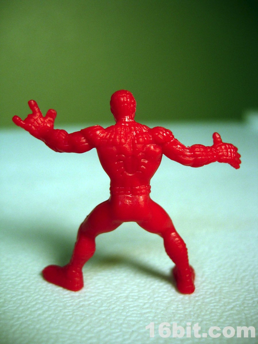 While not "hard plastic," the HOH figures are not as flexible as M.U.S.C.L.E. or their cousins. If anything, they feel like a significantly higher-quality incarnation of those little green military figures we've all seen. The sculpting is crisp, the molding is clean, and there's no real danger of ugly flash hanging off them yet. (Well, with the exception of my War Machine figure, as seen below, which I decided to keep on for now.) I fear that this kind of plastic means they could get damaged if not properly stored over time, but it does have an advantage-- their feet aren't huge and they have no display stands, but they can stand with virtually no problems. This may not sound like a big deal, but I was actually stunned all 8 could stand up perfectly well right out-of-the-box and that the detailing was really nice.