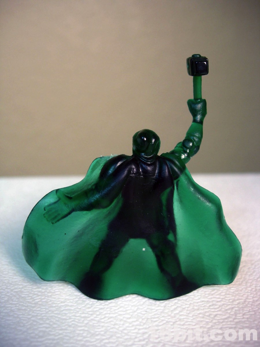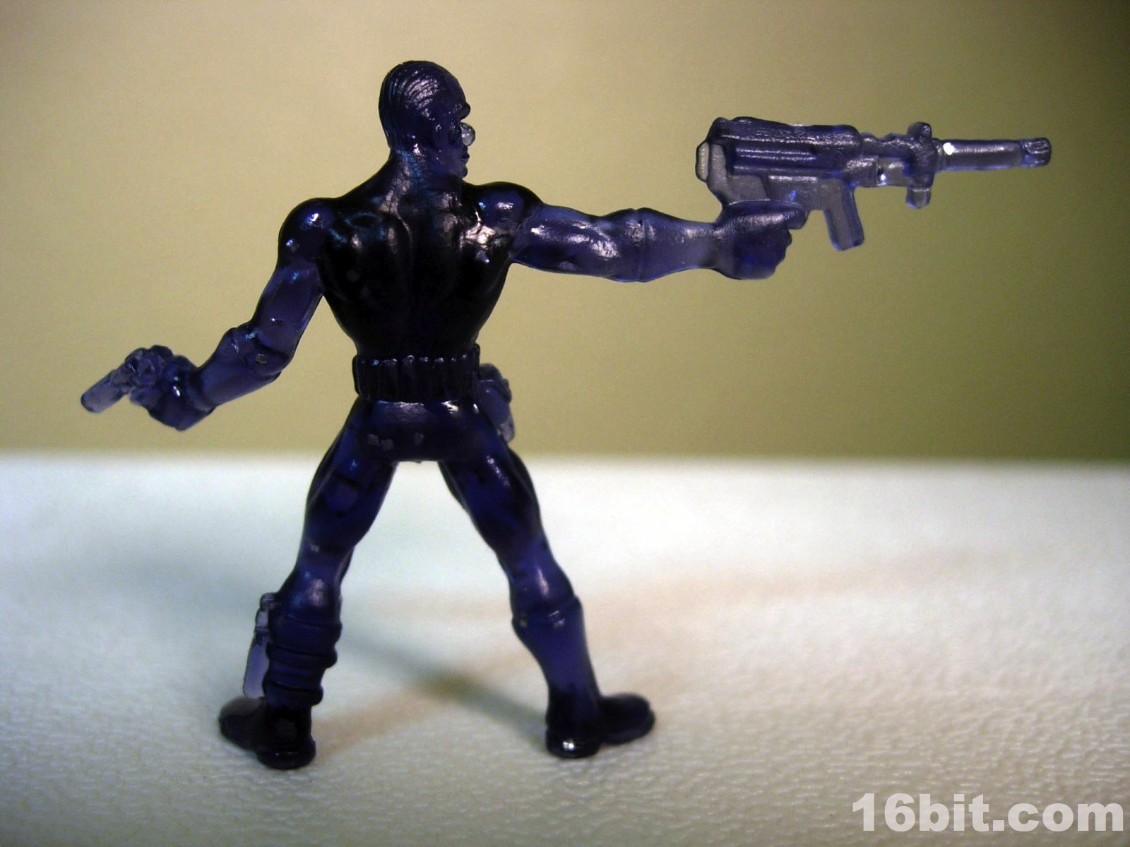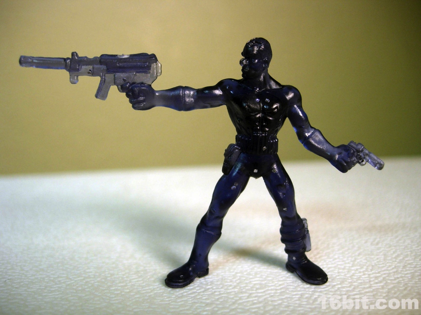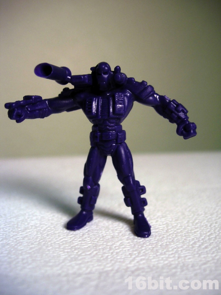 While not "hard plastic," the HOH figures are not as flexible as M.U.S.C.L.E. or their cousins. If anything, they feel like a significantly higher-quality incarnation of those little green military figures we've all seen. The sculpting is crisp, the molding is clean, and there's no real danger of ugly flash hanging off them yet. (Well, with the exception of my War Machine figure, as seen below, which I decided to keep on for now.) I fear that this kind of plastic means they could get damaged if not properly stored over time, but it does have an advantage-- their feet aren't huge and they have no display stands, but they can stand with virtually no problems. This may not sound like a big deal, but I was actually stunned all 8 could stand up perfectly well right out-of-the-box and that the detailing was really nice.