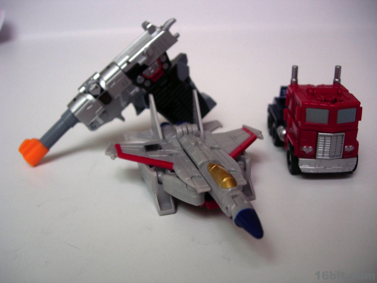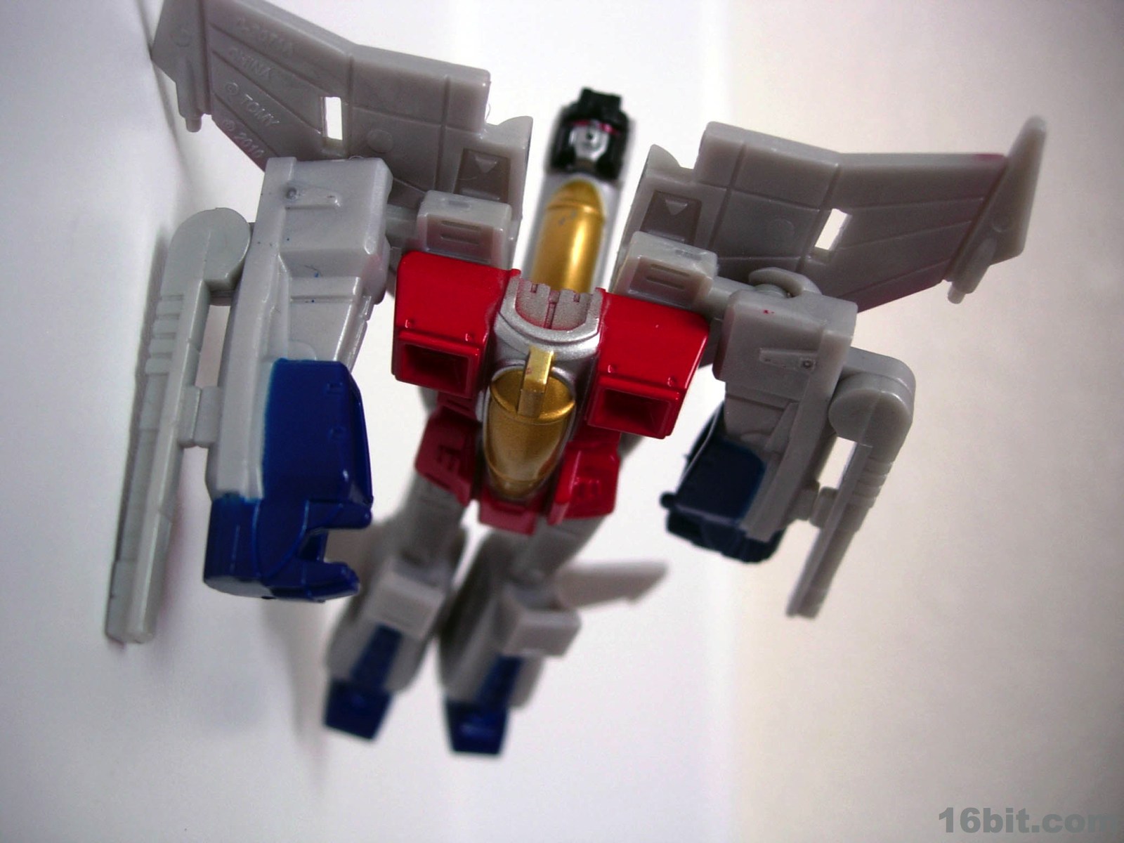 Changing him into a plane and back is an utter delight, and very different from most other jets over the years. I'm not even going to describe it to you. If you have fun changing these toys around, go get one because it's totally worth the experience.