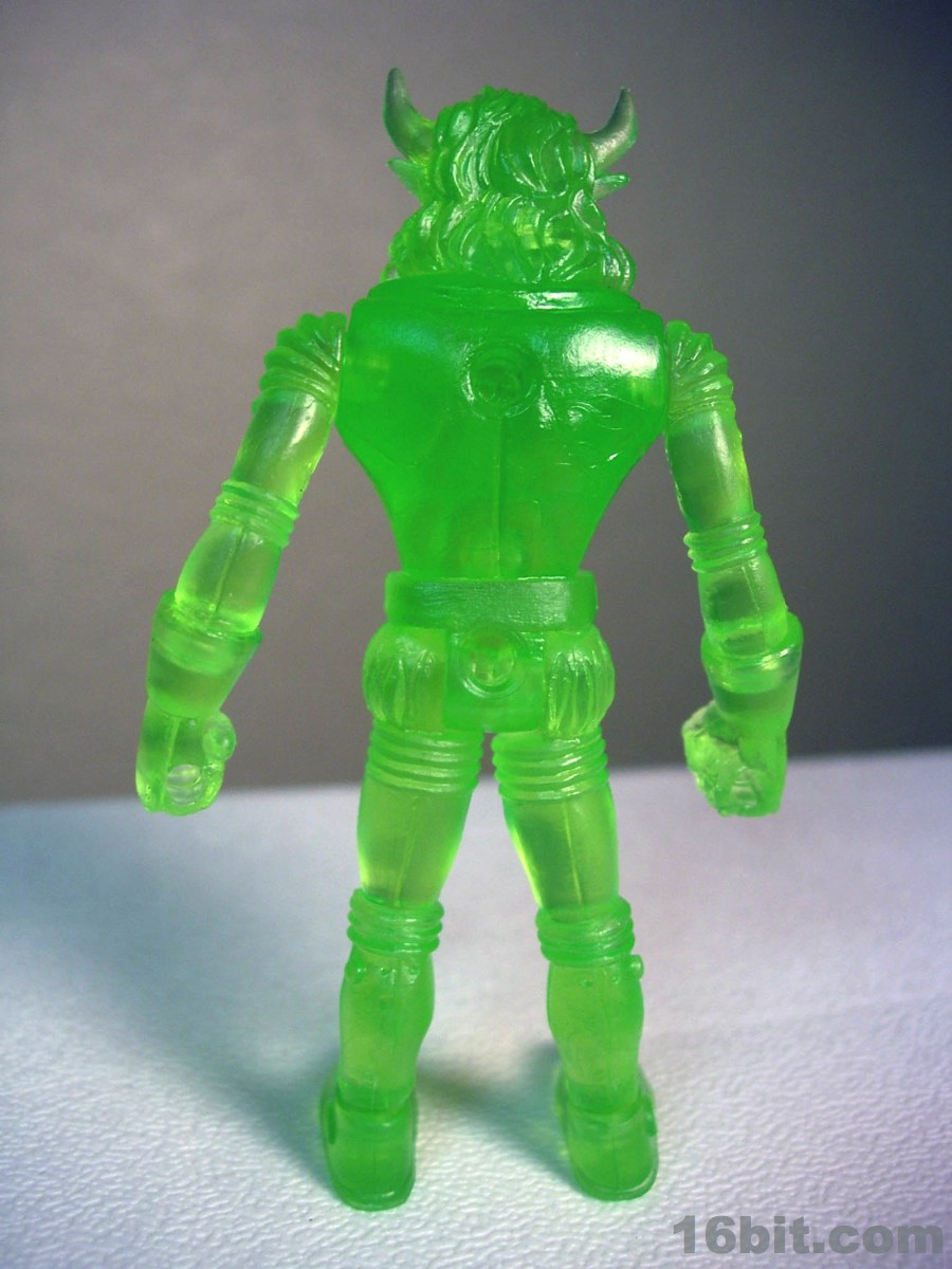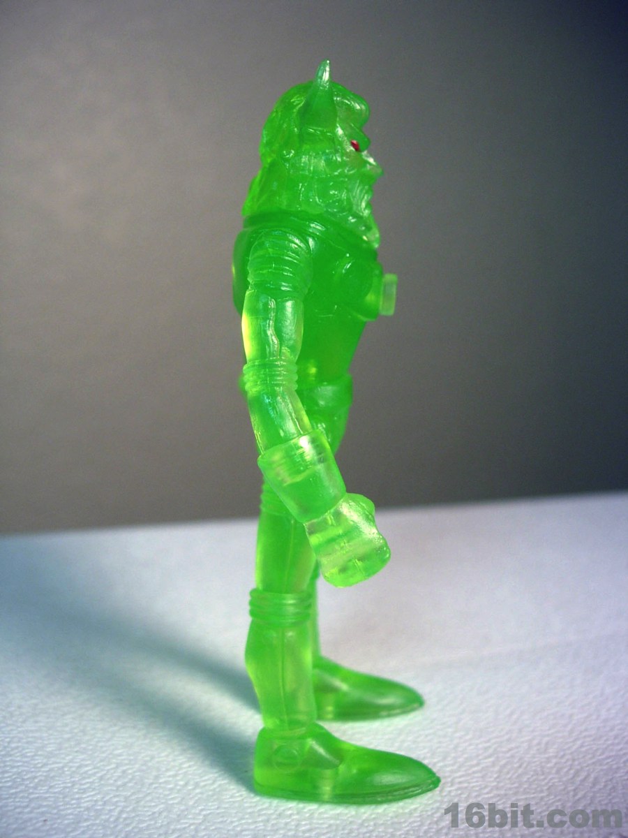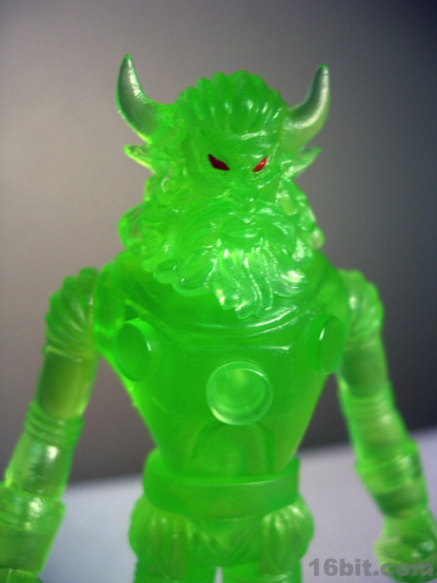 Four Horsemen Outer Space Men Galactic Holiday Mystron Action FigureBecause of Toy Fair in New York, figures like Mystron got written up a long time before they were posted-- this is what we call planning ahead. As the third release of the character, and technically the third pre-release as the painted version had yet to ship as of his release, this particular Mystron was cast in a bizarre green color. I say "bizarre" because, while appropriate for the Christmas season, I generally don't think of "green" when I think of "the center of the Earth" or, more specifically, Hell. Brown? Sure. Red? Absolutely. Smokey grey? Yes. But not green, even though it turns out the ghostly color really works well for this devilish creation.
