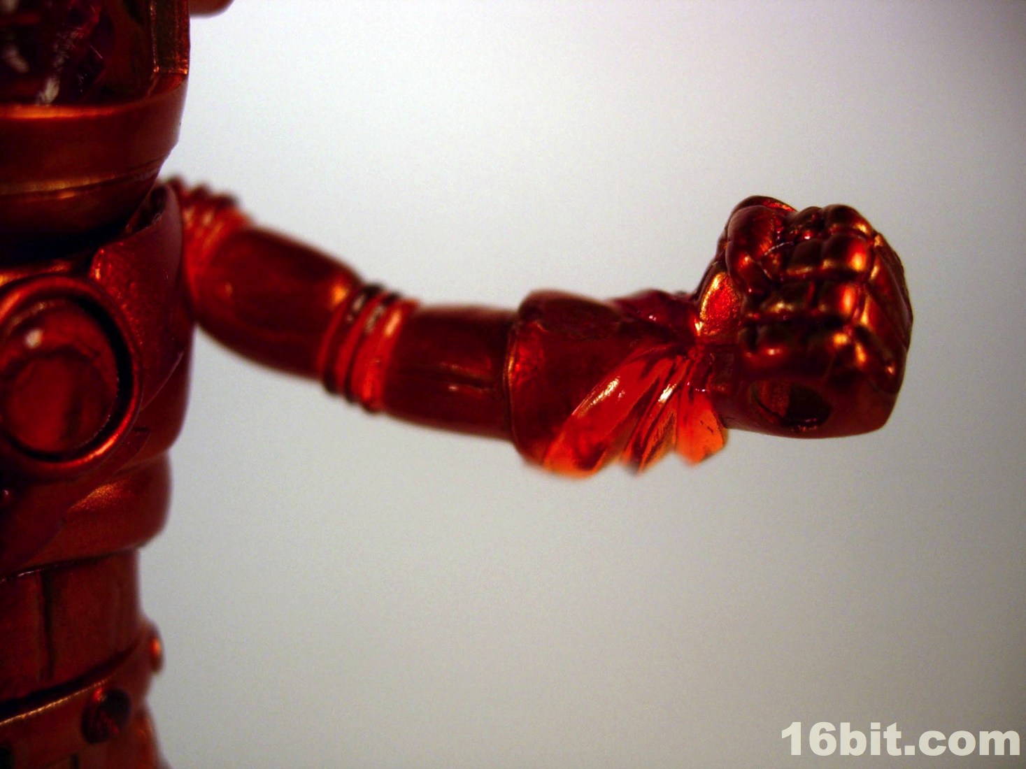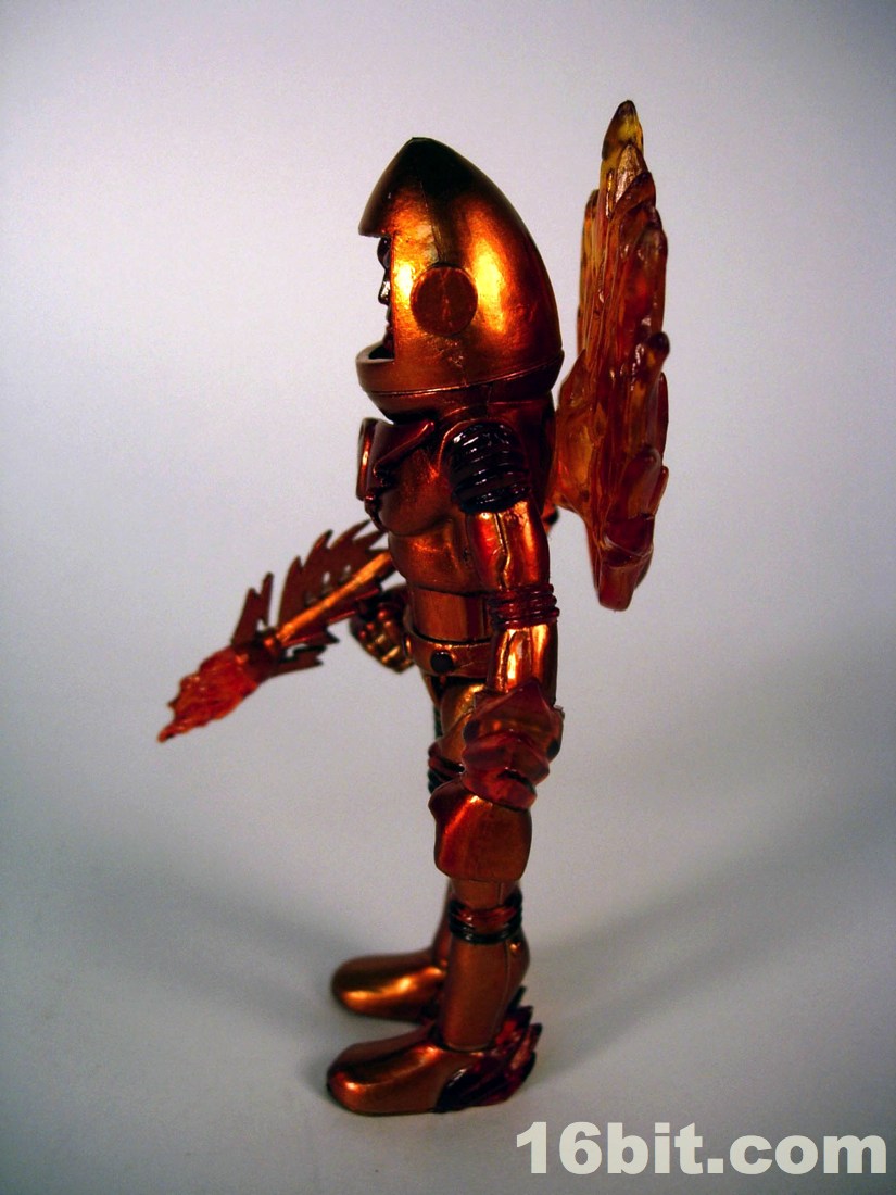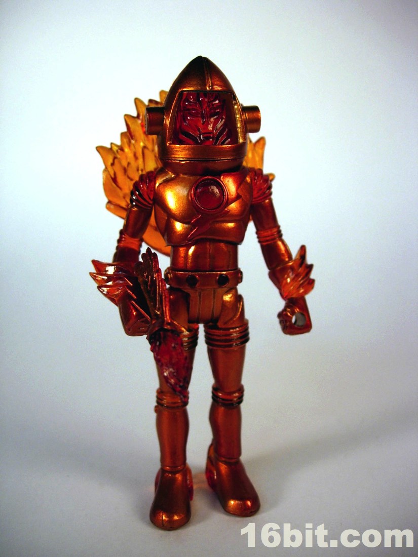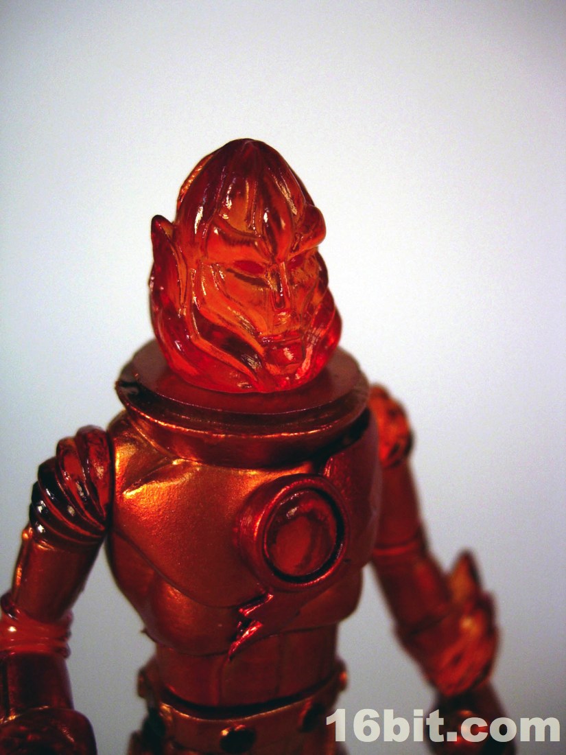 The most amazing thing about this particular figure is how it was painted-- not the colors, but the actual paint mask. The figure's helmet was cast in clear plastic, but has a "hole" in the back to let light shine through and illuminate the head through the back of the helmet. It's pretty clever. The figure's lower back has the same feature, this time adding light to the fire logo on his chest. It's a minor thing, but a dang clever way to get around the lack of battery-powered lighting inside a figure. If another toy company hasn't already done this in their figure lines, I guarantee someone else will ape the process inside the next year.