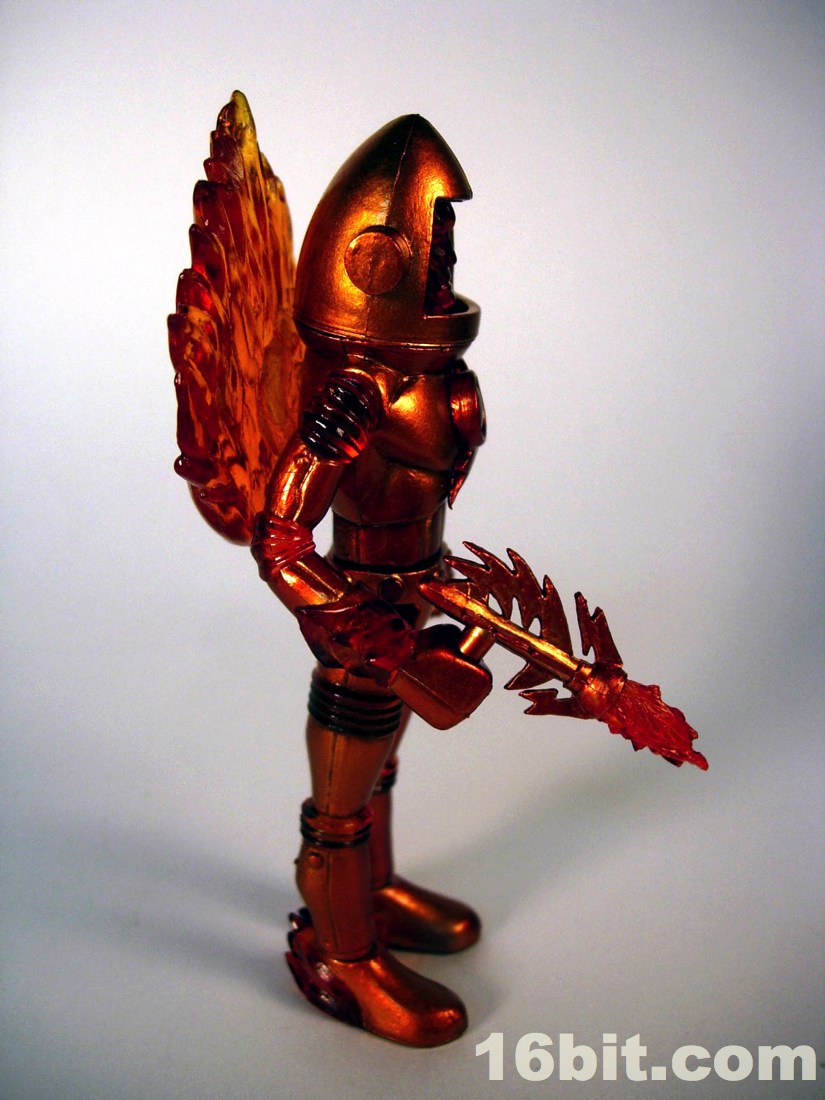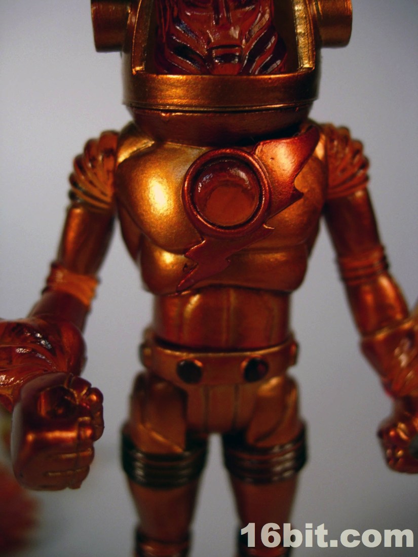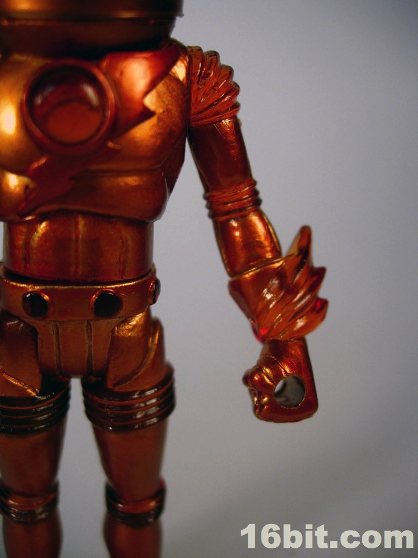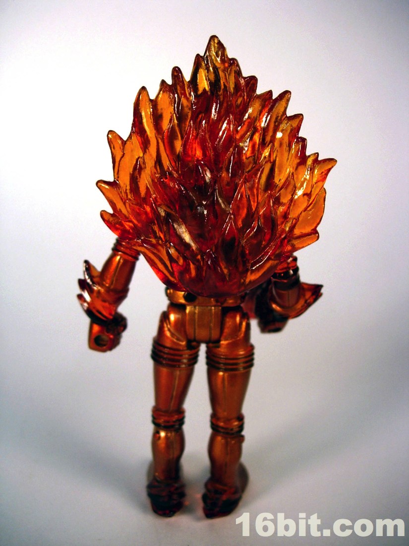 The most amazing thing about this particular figure is how it was painted-- not the colors, but the actual paint mask. The figure's helmet was cast in clear plastic, but has a "hole" in the back to let light shine through and illuminate the head through the back of the helmet. It's pretty clever. The figure's lower back has the same feature, this time adding light to the fire logo on his chest. It's a minor thing, but a dang clever way to get around the lack of battery-powered lighting inside a figure. If another toy company hasn't already done this in their figure lines, I guarantee someone else will ape the process inside the next year.