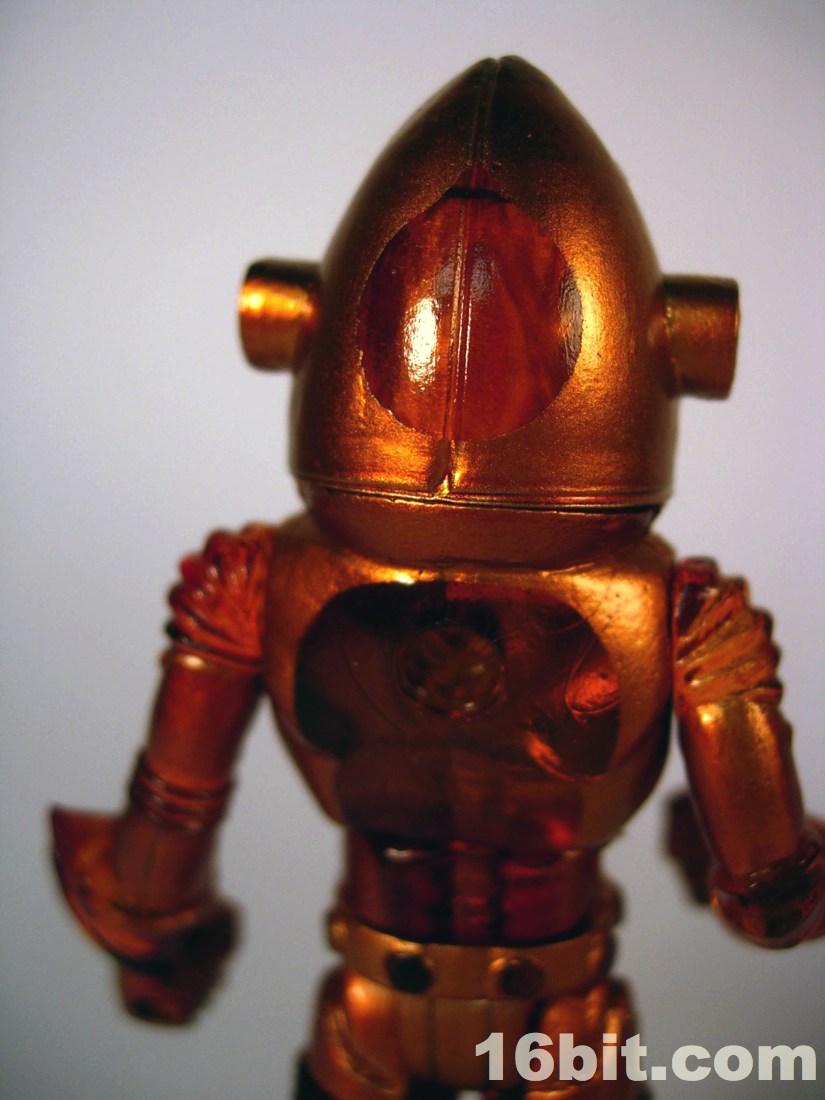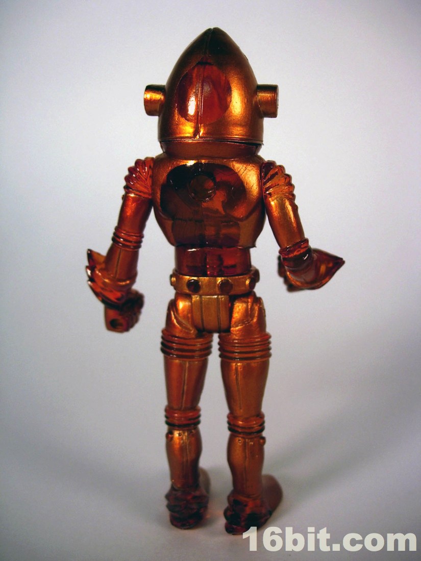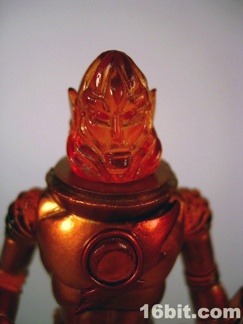 There is no new construction here, and "Blazing Inferno" (as creator Mel Birnkrant has dubbed him) is cast in a yellow plastic, coated in orange and metallic orange paint. He has the same Glyos construction and roughly a dozen joints, complete with swappable bent arms for your display needs. The figure seems to have been a yellow plastic clear figure, painted in silver armor, and then the whole thing was painted orange. I might be wrong here, but that's the feeling I get. Even his gun got the deluxe treatment, but is it worth the asking price? Not really. It's not a bad figure-- had this line debuted at $32 a pop, I'm sure people would shrug and be used to it due to the lower edition sizes. This set in particular is advertised at only 200 pieces of each, meaning these are some of the rarest mass-produced action figures in this (or any other) toy line. The question is, will anyone care?