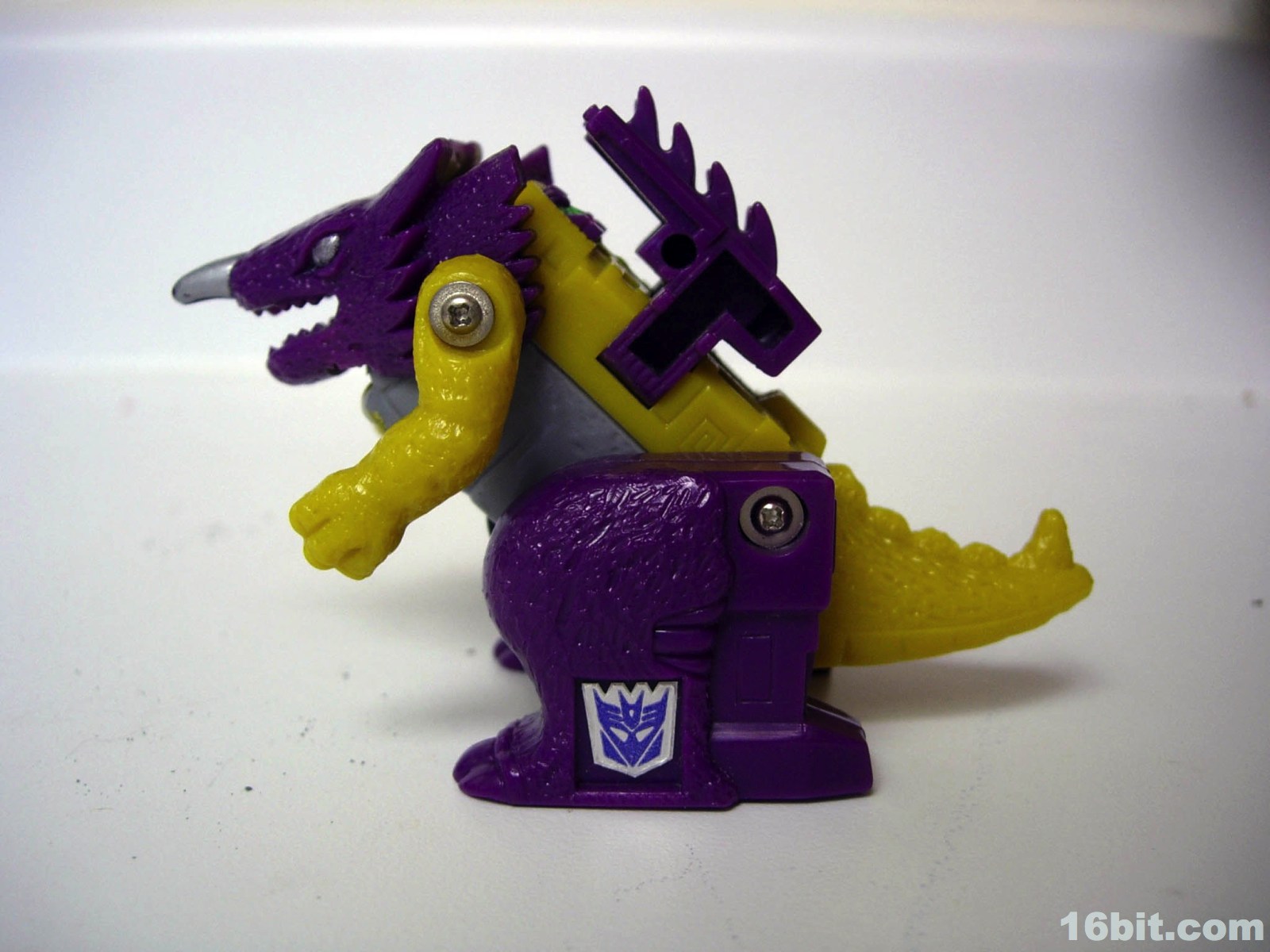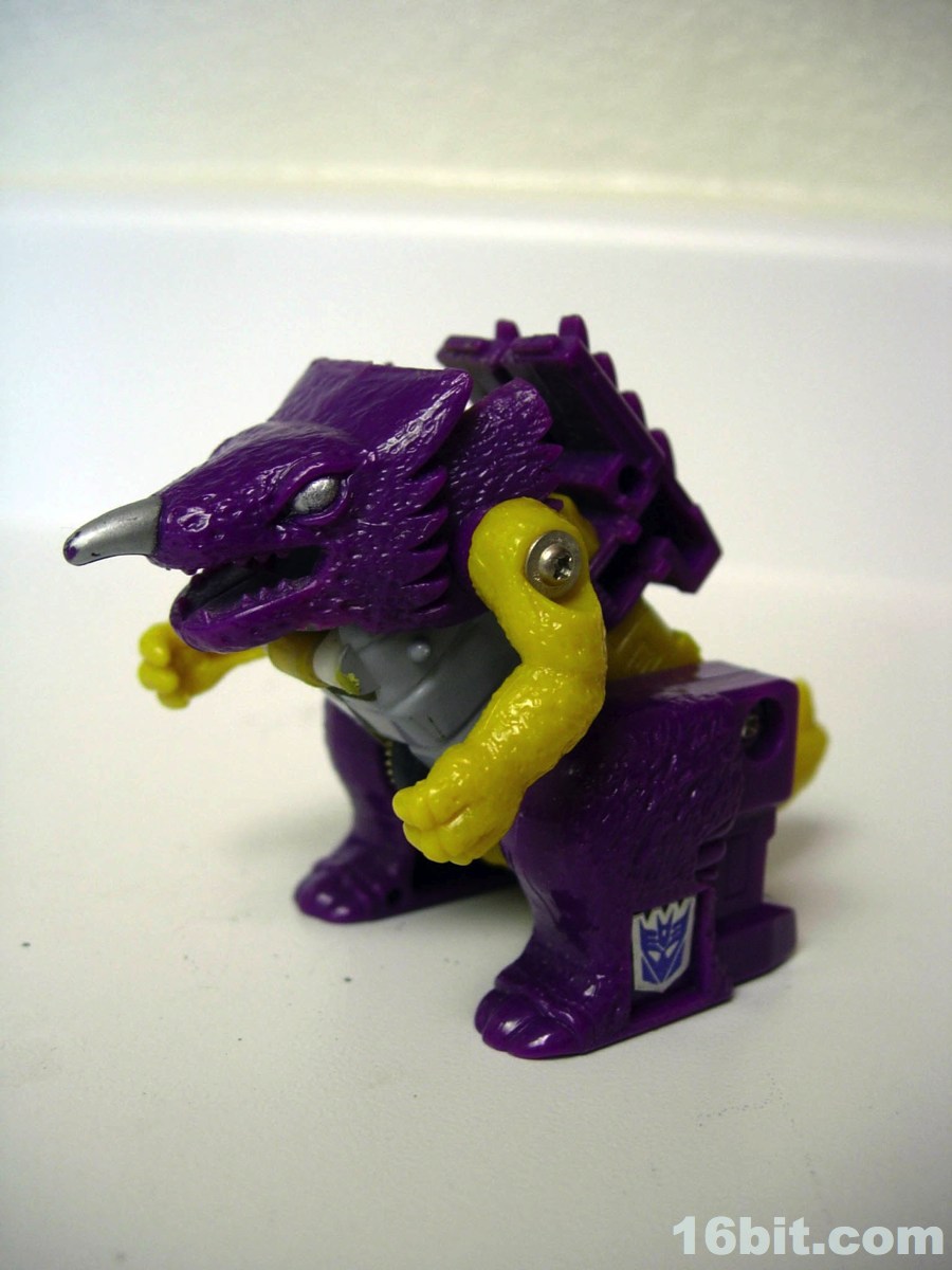 The only other Cindersaur toy was the Botcon 2010 "G2" version, which is a bright (and clear) blue recolor of Beast Wars 10th Anniversary Megatron. You know, the one with the Cyber Key up its genitals. I like it because it's weird, but this little original G1 Cindersaur has been with me for years and I really dig the little dude. Even though he has no guns, little articulation, and virtually no backstory, he's fun and small and isn't that enough?
