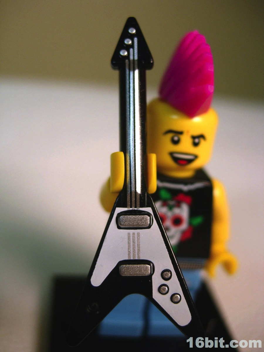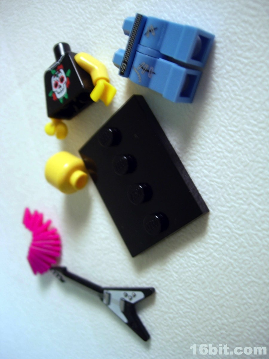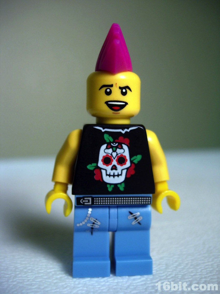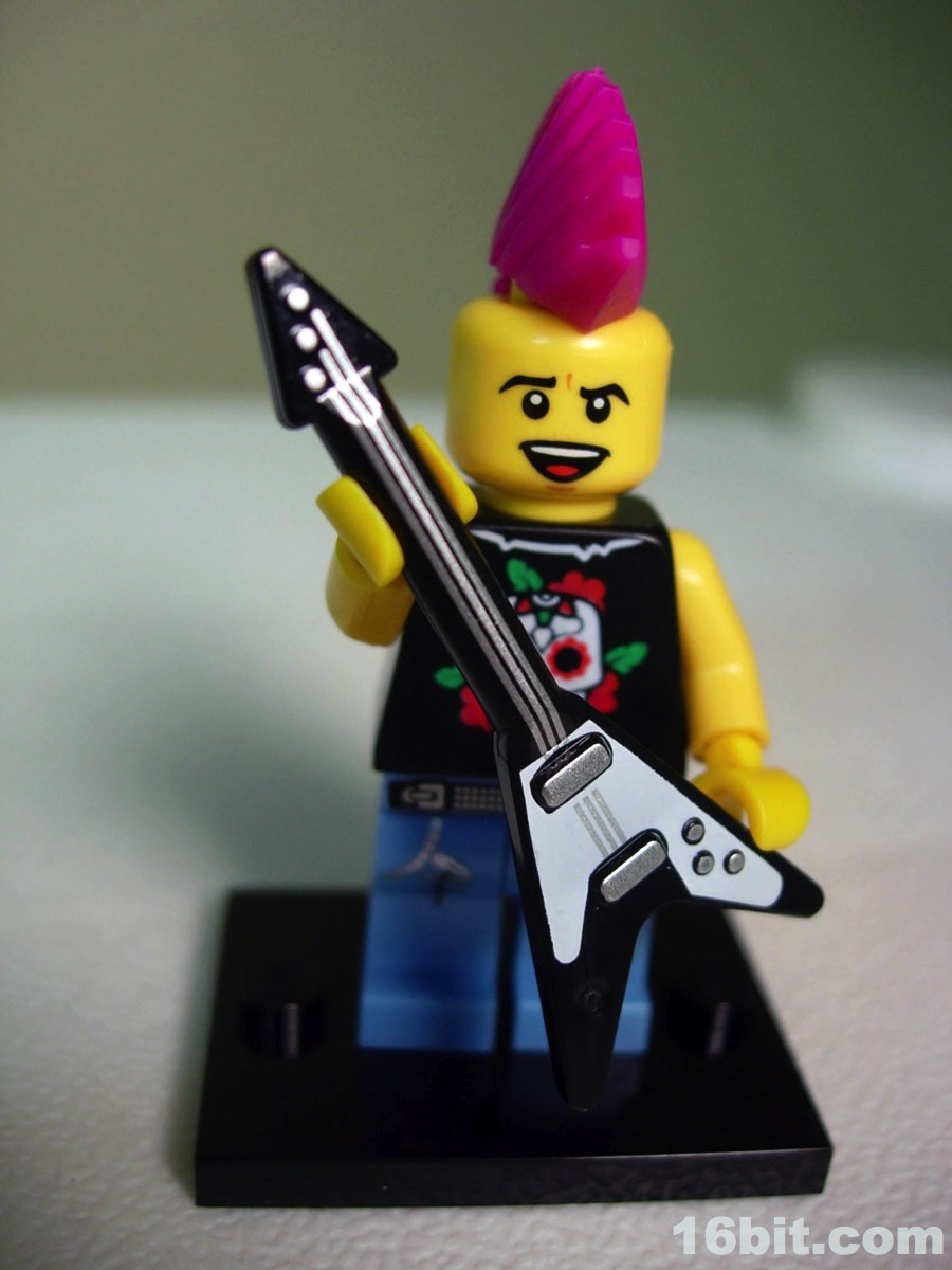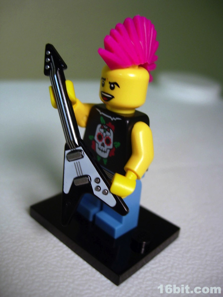 The Punk Rocker as a LEGO figure says a lot about our culture. At one point, the kids with the crazy hair held up by glue and safety pins in their noses and loud music were scary outliers and are now cuddly mascots or worse-- it's "retro." The punks have been afforded a degree of respect that the hippies haven't been given culturally, but both have probably evolved to a point that would make their respective founders vomit. Where was I? Right, LEGO figures.