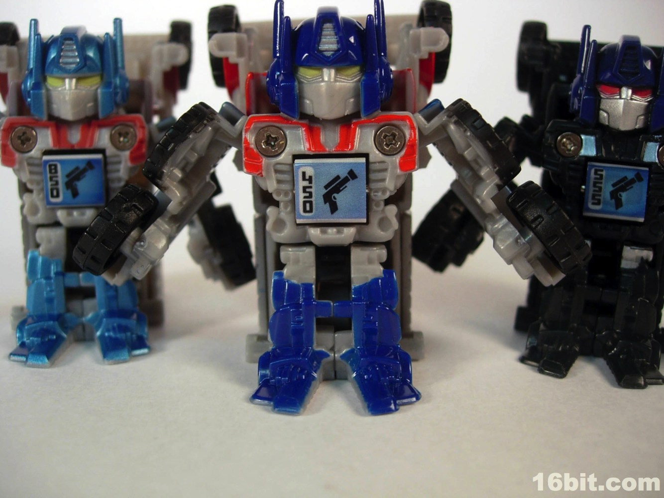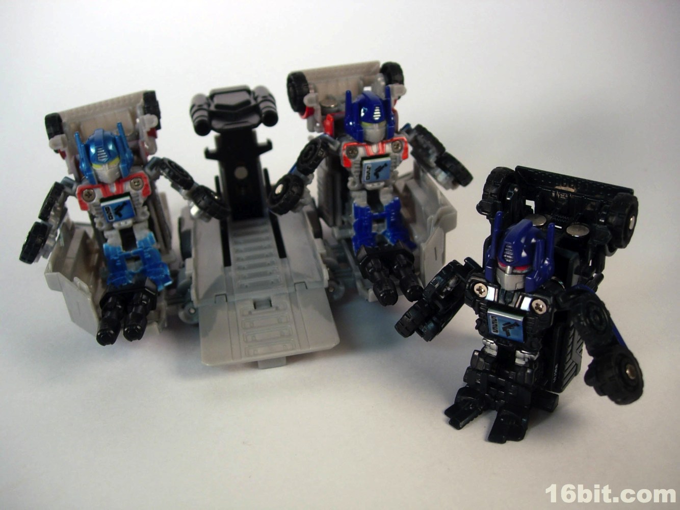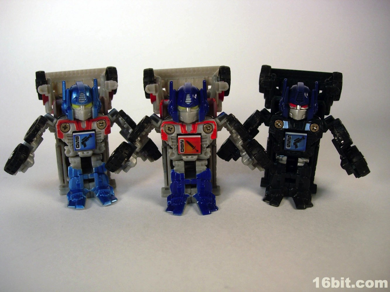 Deco Note: The Launcher Optimus Prime has different deco than the single, basic Optimus Prime as well as different stats on his "attack strength." The launcher Optimus has brighter, richer blue and red paint, while the single one is much paler. Between the two, the launcher one looks a little better.