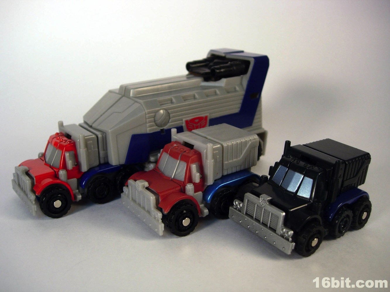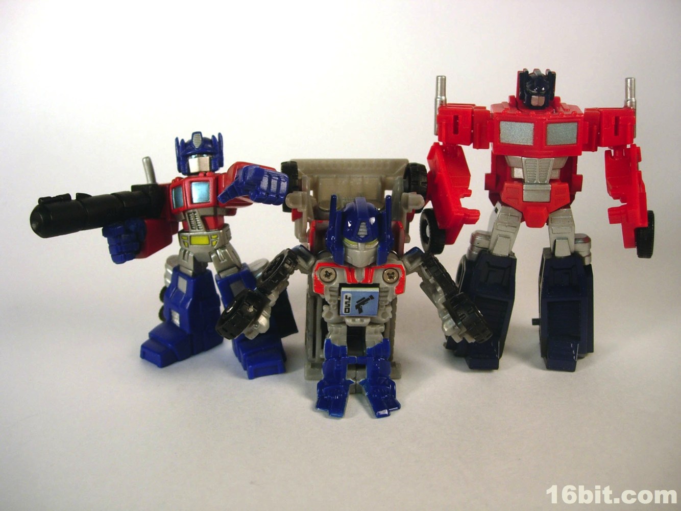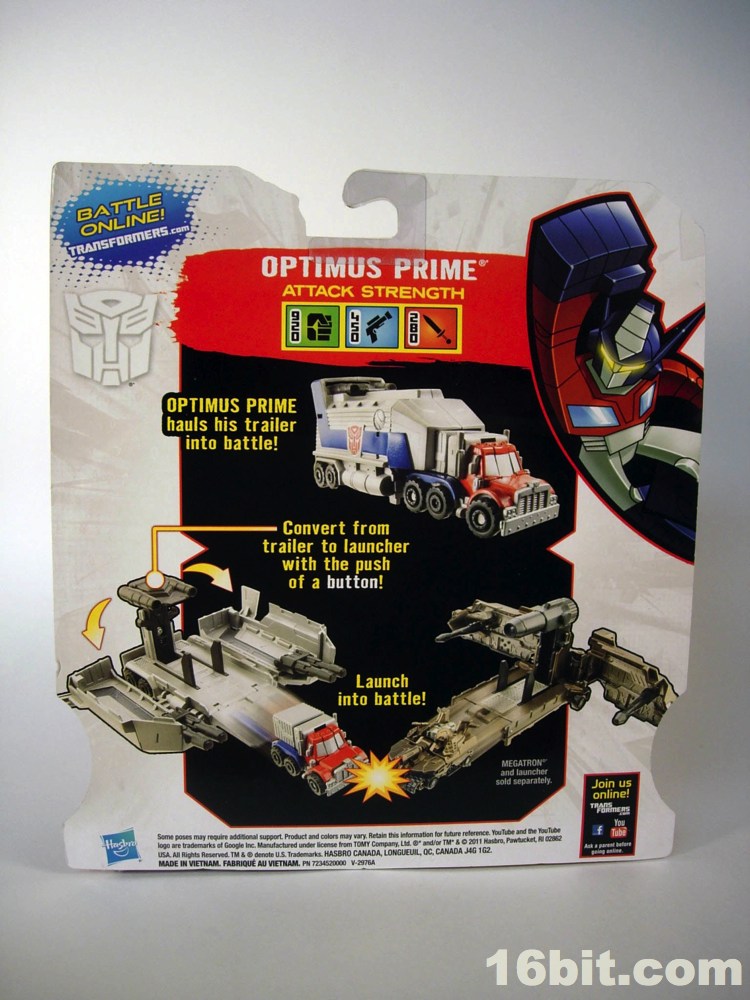 Deco Note: The Launcher Optimus Prime has different deco than the single, basic Optimus Prime as well as different stats on his "attack strength." The launcher Optimus has brighter, richer blue and red paint, while the single one is much paler. Between the two, the launcher one looks a little better.
