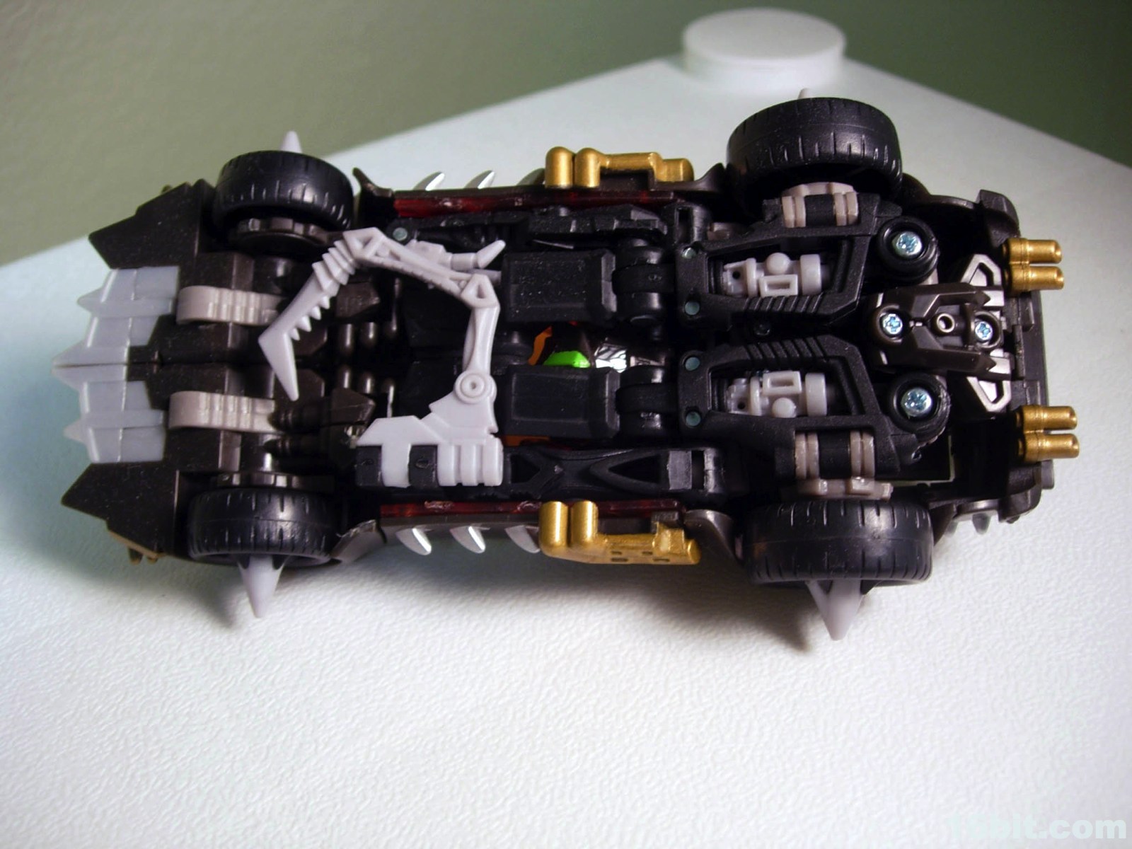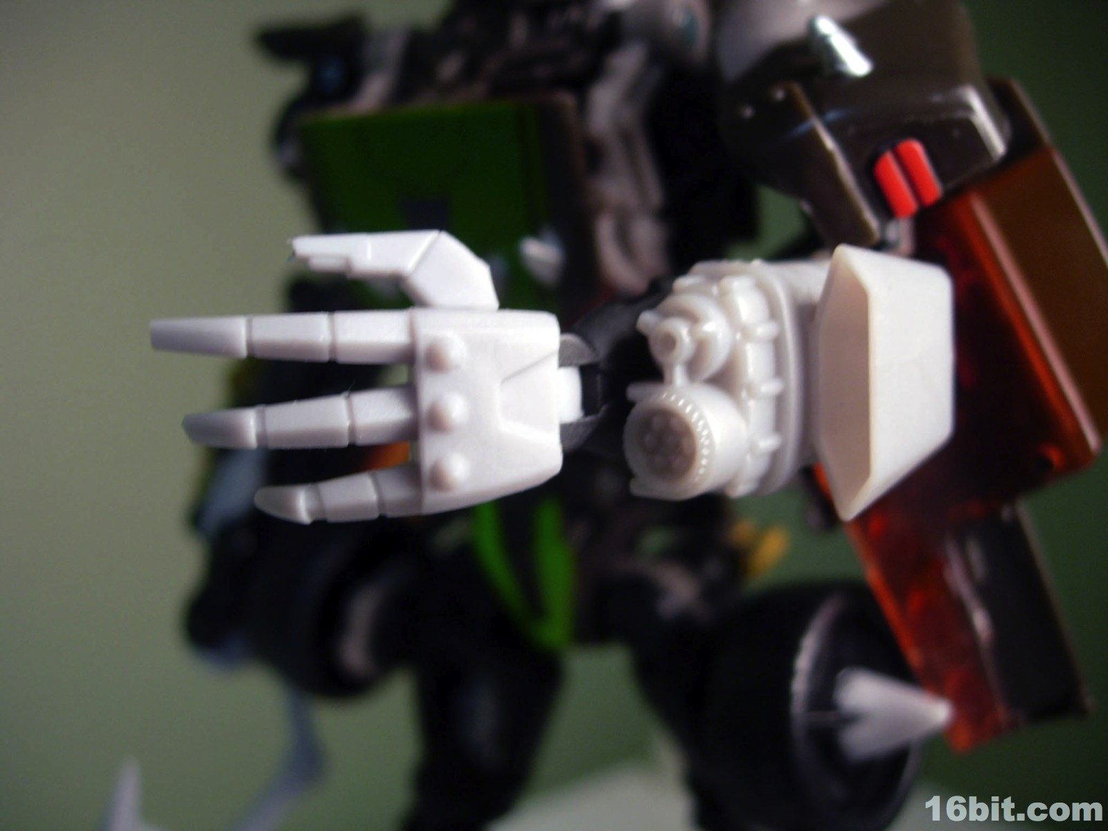 I've generally felt that many of the movie toys felt a little more thin and fragile, and seemed less suited to younger fans than what was put out in the past few years. Lockdown is no exception-- while he has amazing deco, a good sculpt covered in spikes, and a fantastic vehicle mold, he won't hold together well. Arms pop off easily, his left hand and right claw hand are made of a supremely rubbery plastic and are not capable of holding anything, and there are so many moving parts here that it seems unlikely that this toy would make it through a year in an average child's toy box without damage or lost parts. Granted, the distribution of this guy was all over the place so it remains to be seen how many ended up in kids' hands after the various closeout stores got Lockdowns. (Are any kids in the distant future reading this? I'd love to know how the children of 2010 like this guy and how he looks in 2020 or 2025.)
