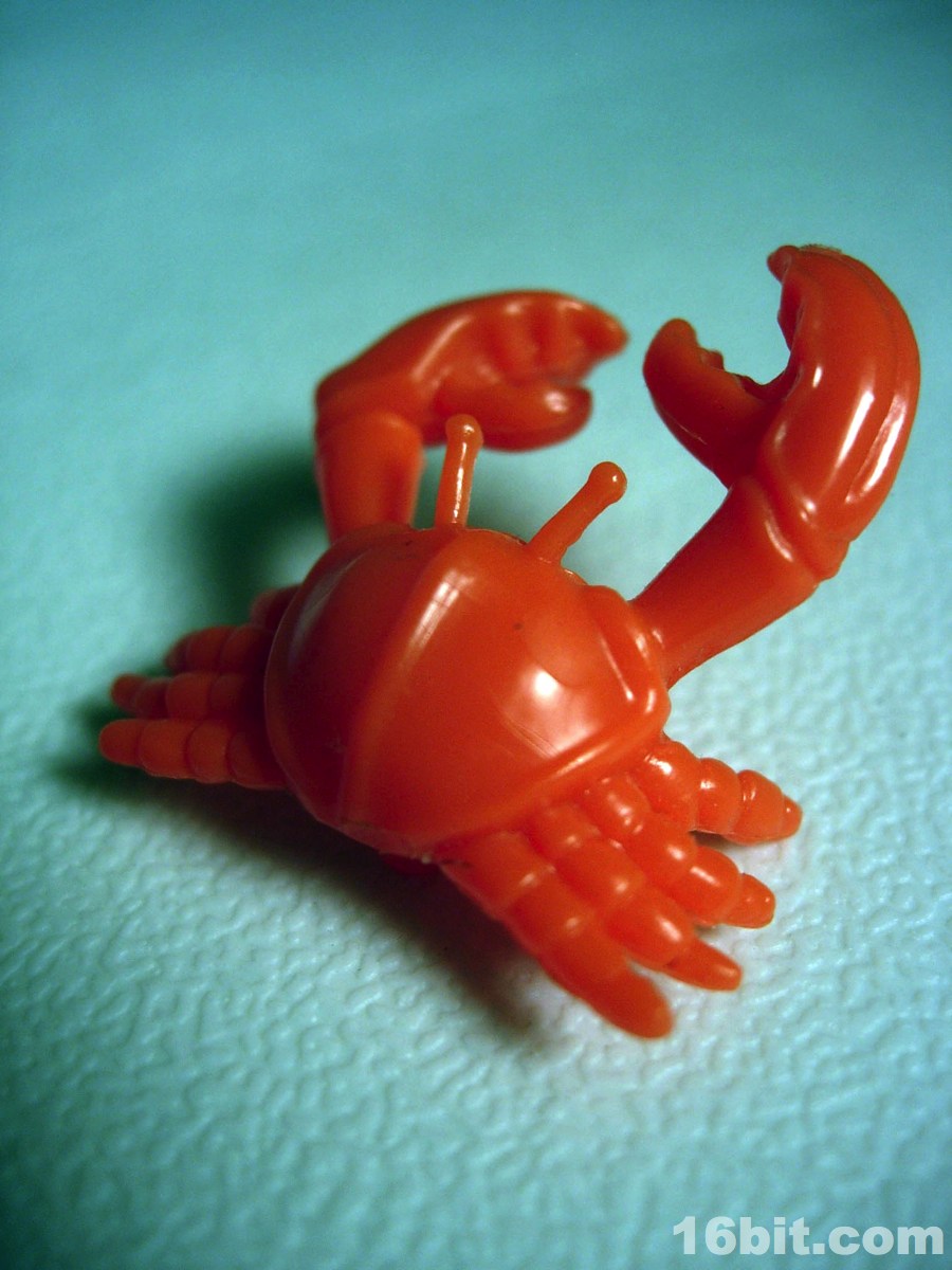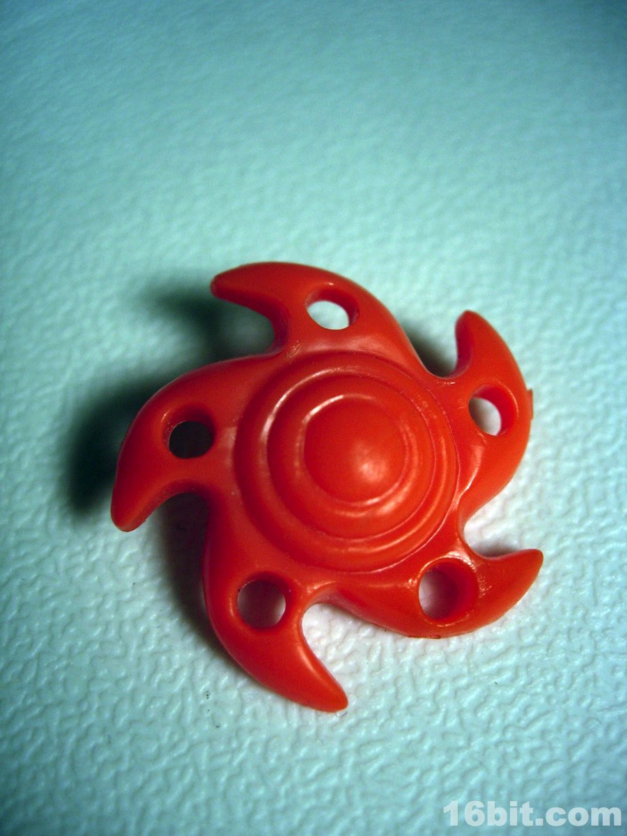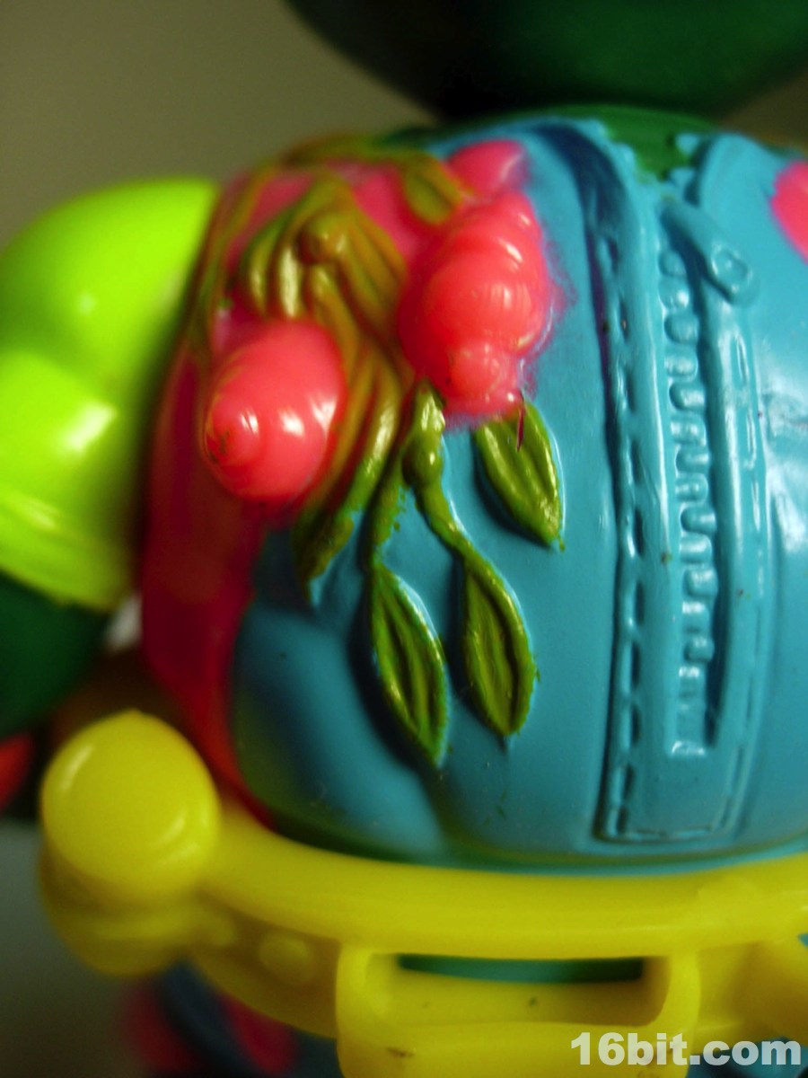 Playmates was no slouch in including accessories, although they weren't always looking like they were completed. Mike is one of the lucky ones-- his surf board has a preposterous sticker on it covered in day-glow colors and checkers, but it had a few foot pegs which meant your figure basically had an awkward display stand. I say "awkward" because the board has the little fins on the bottom, which meant it couldn't lay flat on a shelf or table. The board had holes in it, so you could plug in the included star accessory which could spin, or the little crab. Both of these were unpainted, and the crab is one of many little sidekick figures included in the line. It showed some imagination on Playmates' part: why include a gun or a sword when you could include an extra character? It was a great example of how you could put more in with each figure without increasing the budget too much.