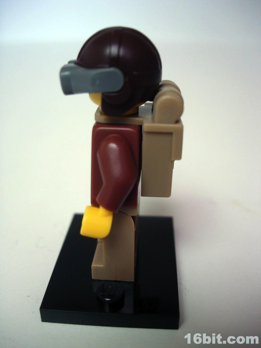 Dressed in a bomber jacket and olde tyme helmet, this is a pretty decent looking figure. He also seems like he could be the 2011 version of the character in the old 1990s LEGO Adventurer line, which was itself clearly a dry run for an Indiana Jones-esque series. (It was also more successful than Indy, but that's another article.) This guy has a backpack, articulated goggles, and... well, that's it mostly. The main reason to get excited for him is his head, as "old guy" doesn't usually make the rounds on collectible figures for children.