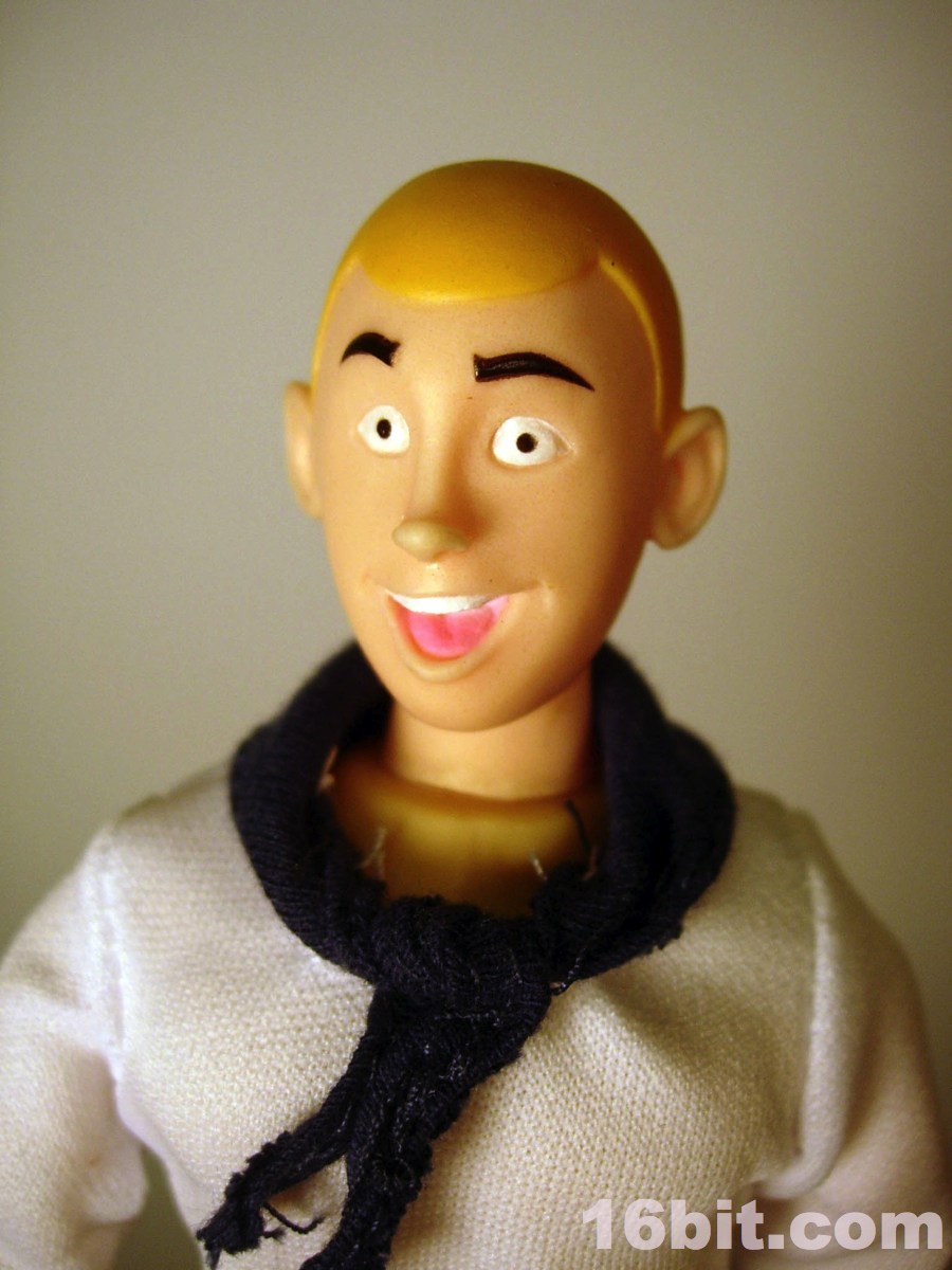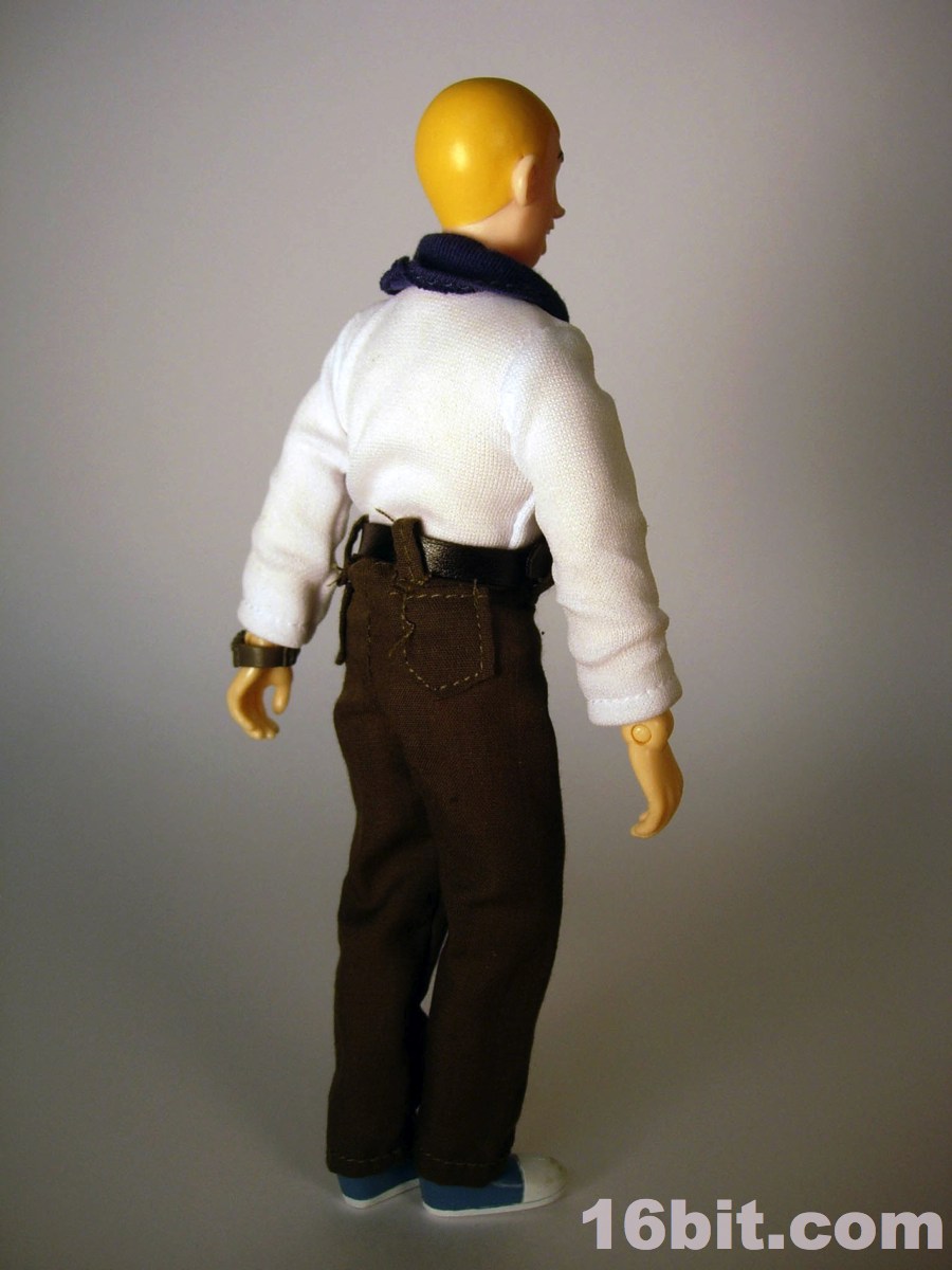 The head sculpt is good, and the outfit is appropriately Mego-ish. Well, mostly-- I like the belt, and the watch communicator is a great feature. The head sculpt looks like a cartoon character, as it should, and his goofy smile is just perfect. His kerchief though? I don't care for it. If you look at the picture you can see it looks a little worn, and that's exactly how it looks as it comes out of the package. If you're a customizer, you might consider trying your hand at seeing what you can do with it. I'm a putz, so I'm just going to leave it.