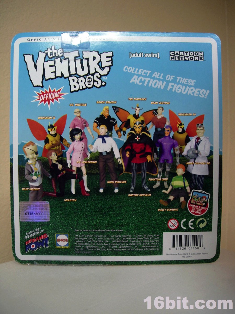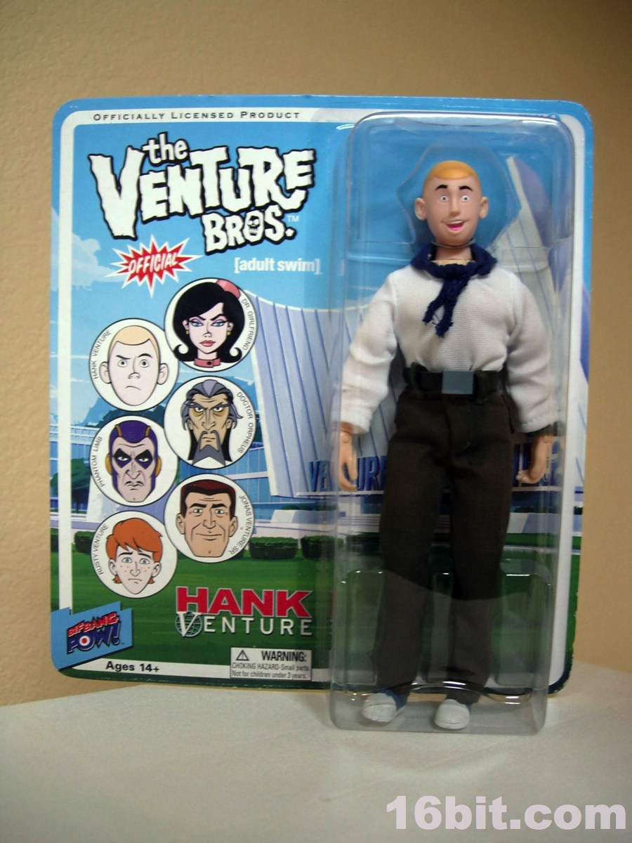 Go Team Venture! Hank Venture came out in the second batch of figures, but as one of the main characters is totally essential. As the only action figure of the character released thus far, I'll just say go ahead and get one. The figure's skin tone is way better than Dean Venture's pale face, which is unfortunately highlighted when you stand them both next to one another.