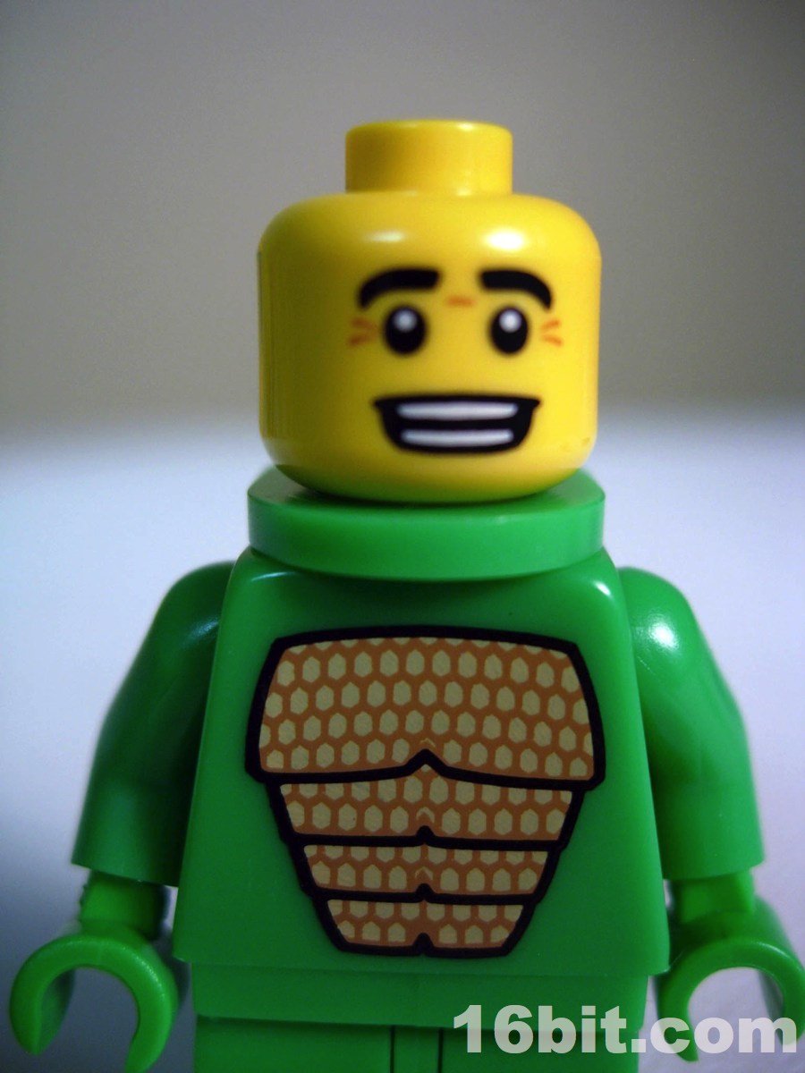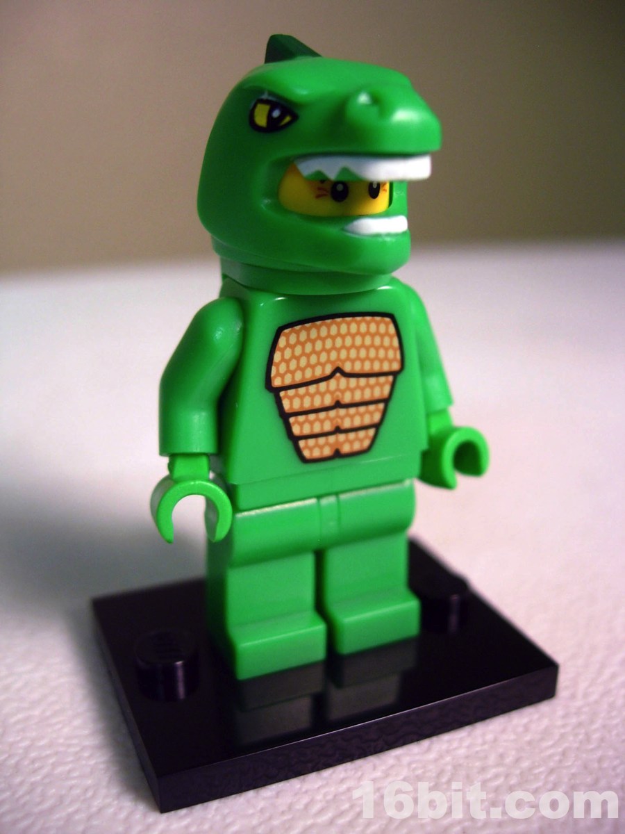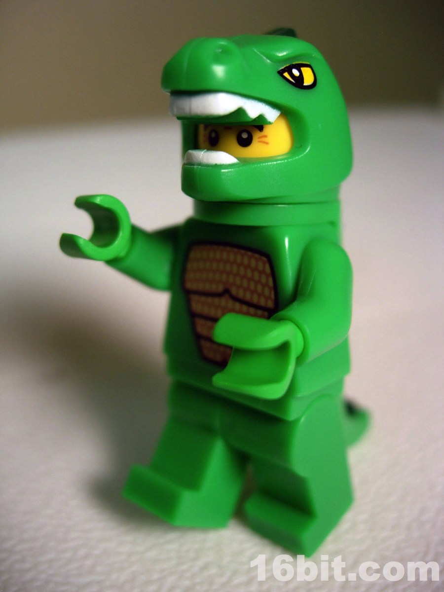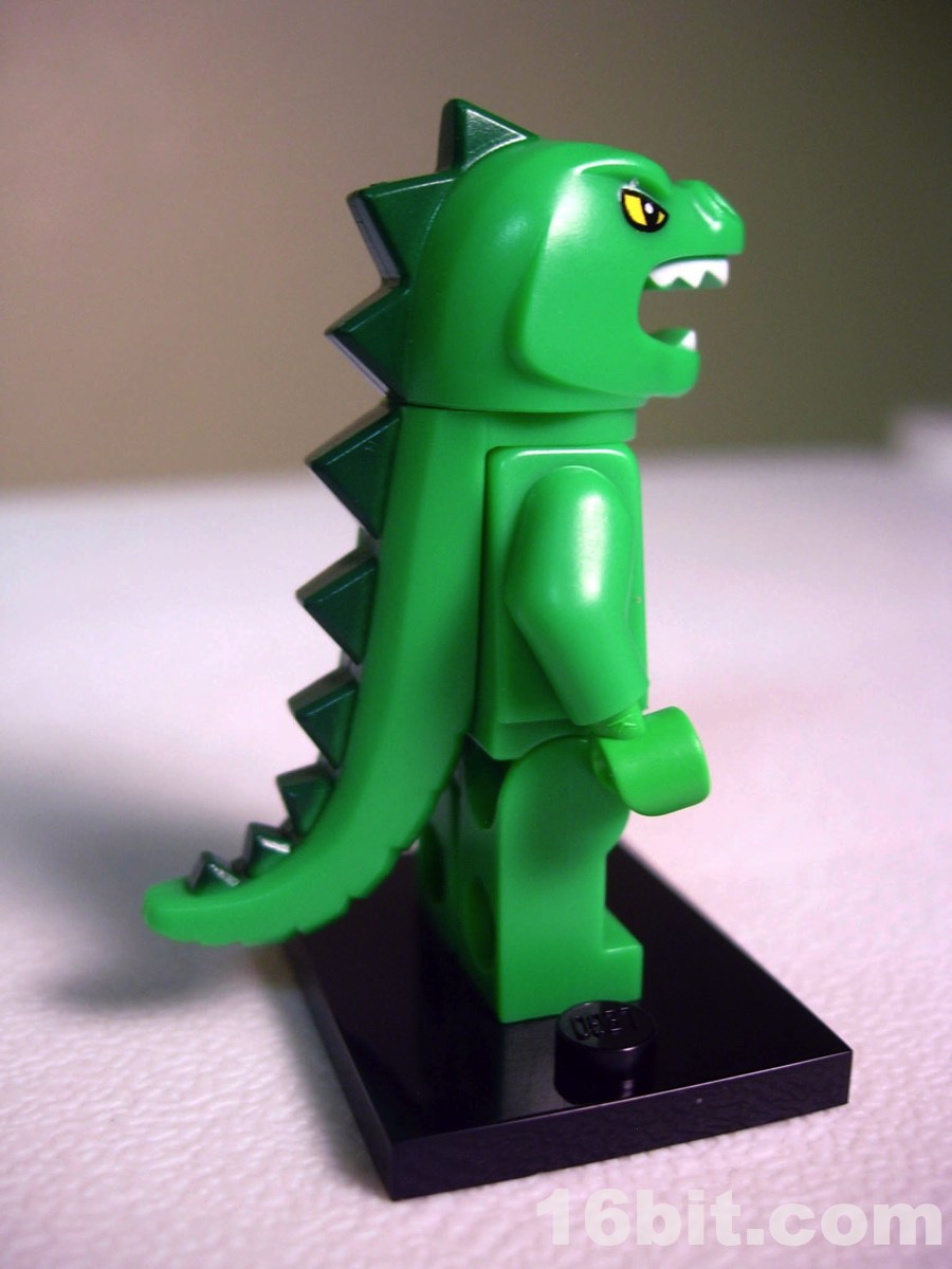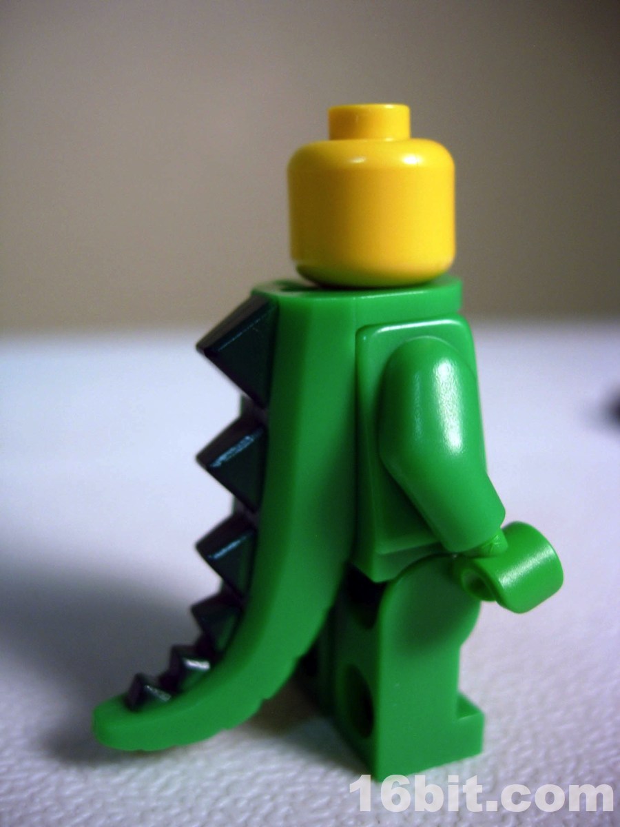 The figure's construction is, as always, nicely done. The basic figure has been augmented by a tail which acts sort of like a backpack, hanging off his neck. The head is a helmet, and the rest of the figure is just good ol' green plastic. His chest is painted all scaley, and well, the figure reminds me just how much it sucks that I grew up before these guys came out. I just know my life would be way better as a child if I had access to King Kong and Godzilla in LEGO form. (If I had Ghostbusters I would've lost my mind.)