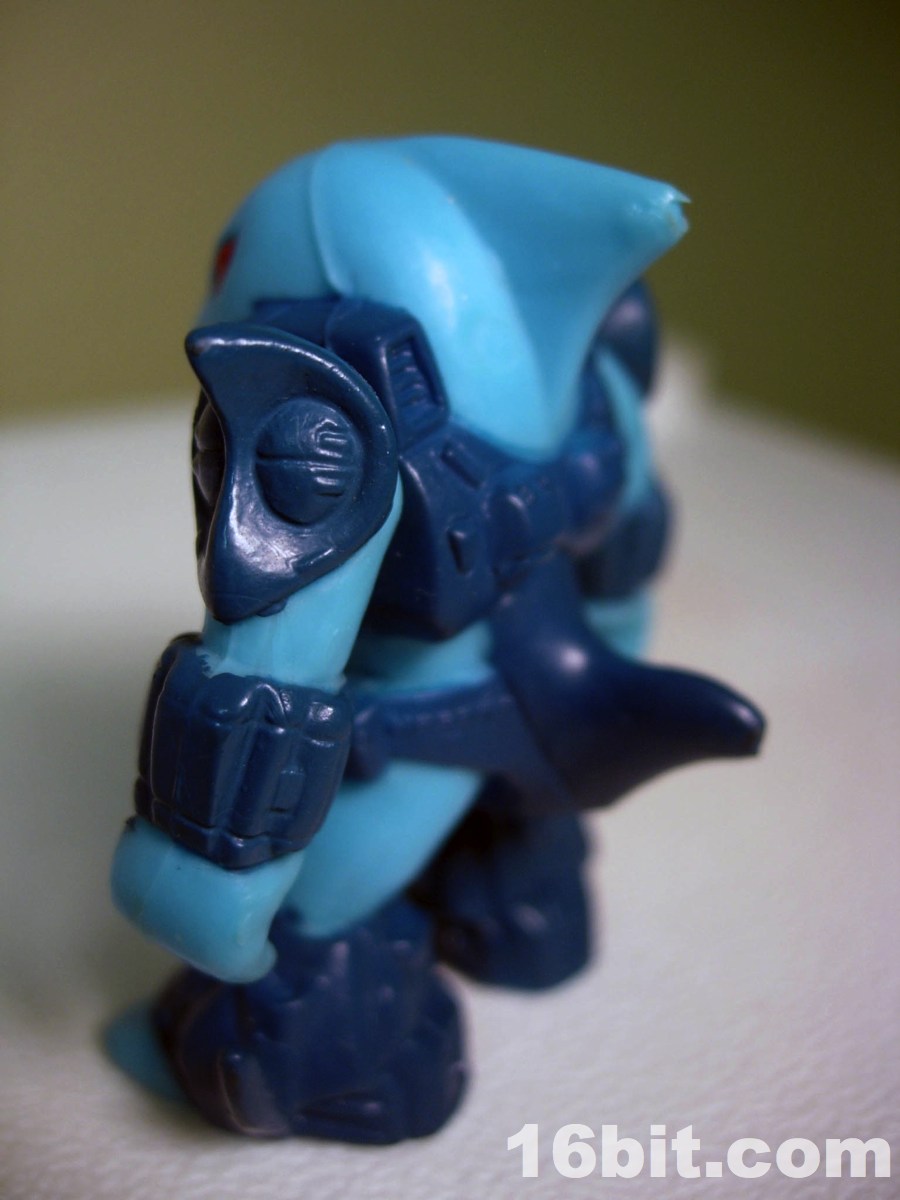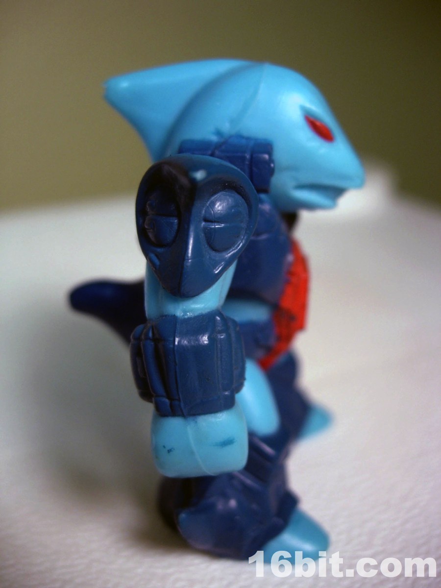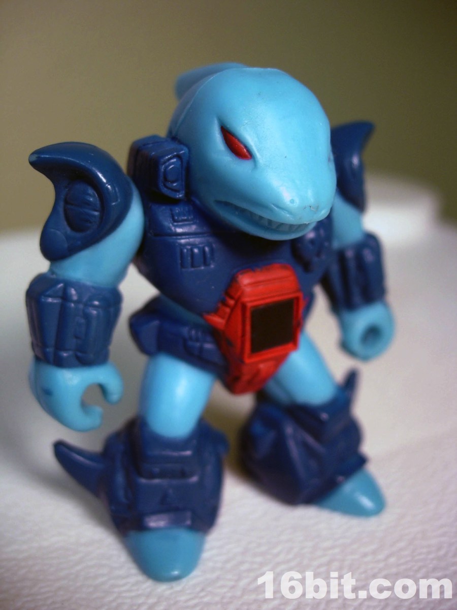 Sawtooth Shark is the first classic guy we're going to look at this week, and he's pretty awesome. Heck, the entire line is fantastic and perfectly sized for the modern toy collector. Worried about them taking up too much room? They're 2-inches tall. Need a toy that won't fall over on your desk? Their footprint is small and they're sturdy, so they can sit on top of a thin LCD monitor. They have but two joints, but if you want a toy to display on your desk it's not like you'll be having them fight much. Their giant feet make it harder to tip them over, too, which I appreciate.