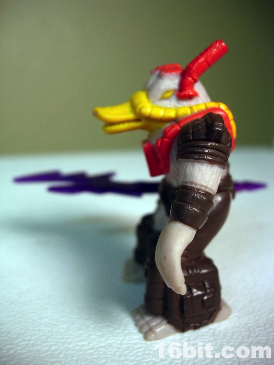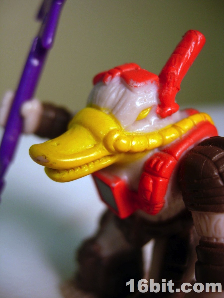 The 2-inch figure was one of very few which didn't incorporate its animal inspiration's name as a part of the action figure's name. This figure was one of the last to see widespread distribution in the USA in decent numbers. These were durable plastic guys with strong gripping hands, so you could have him hold his weapon and smack around other figures with it. The funny thing is this was more common in the 1980s than it was in the 1990s and beyond-- you can't expect most Star Wars or G.I. Joe figures to stand or hold their guns these days, as they would either drop the weapon or the lightsaber would just snap. While Diving Duckbill can only hold his might weapon in his right hand, it's worth noting his left hand is outstretched for swimming plus he sports sculpted fingers and tiny claws. Off the top of my head, I can't remember any other 1980s or 1990s platypus action figures, or aside from stuff at the zoo, other platypus toys. Combining animals with violence worked well for me as a kid, I just wish it continued a little longer.
