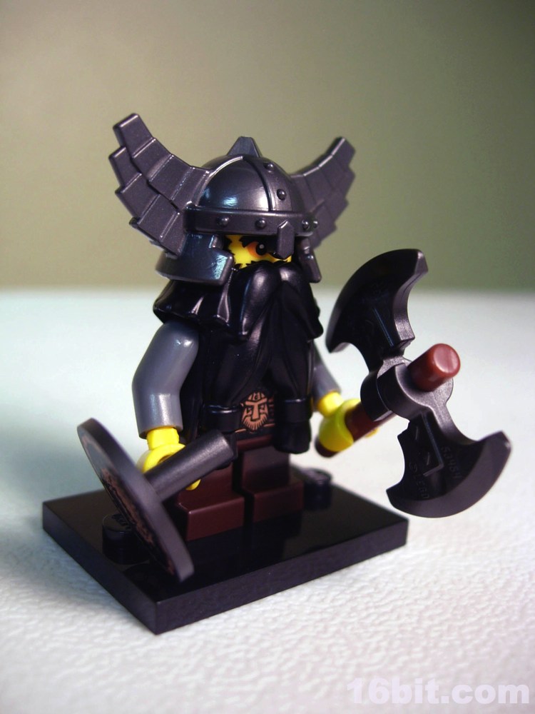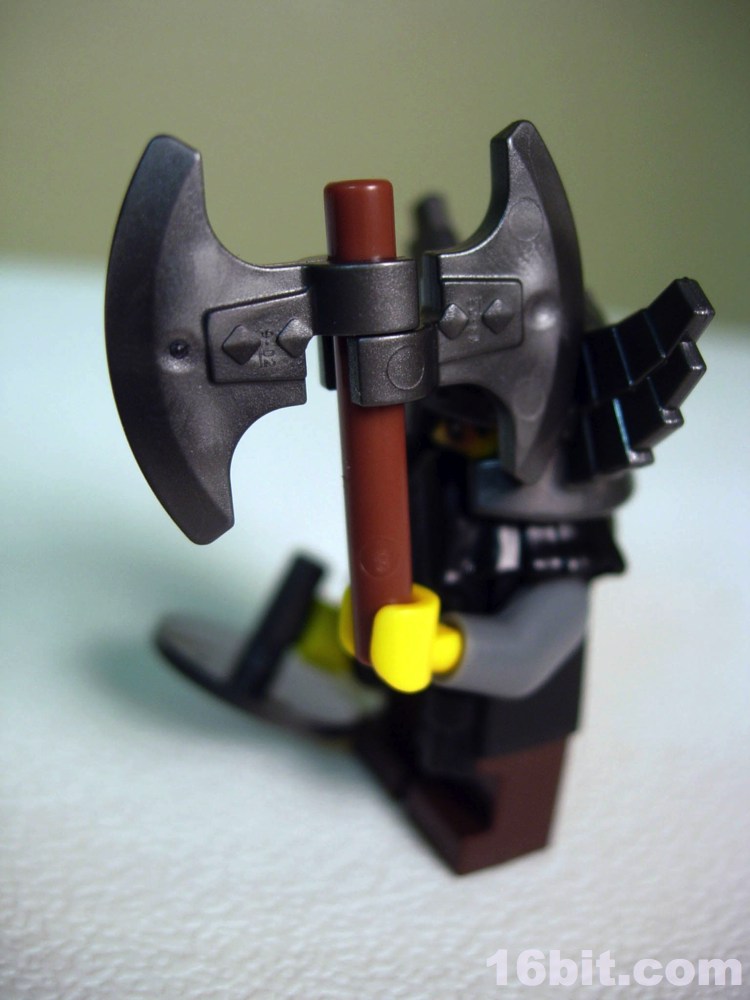 Based on the shorter build of minifigure (which is the same as the normal ones except it has short, non-articulated legs) it's amazing just how much detail is on this figure. What's even more amazing is how much of it they covered up. The helmet and beard obscure one of the more ornate figures of the line, which you can see has heavily detailed armor with all sorts of patterns, rivets, mail, and other elements as well as a heavily painted bearded face complete with dark, sunken eyes. And when assembled, you will see none of these things. I appreciate LEGO putting more money into developing a figure, but it's kind of unfortunate to see it wasted in the figure's basic configuration. If you need a figure to buy to use as spare parts for your own creations, though, this may be one of the best on the market today.