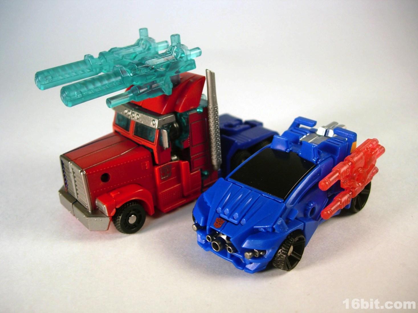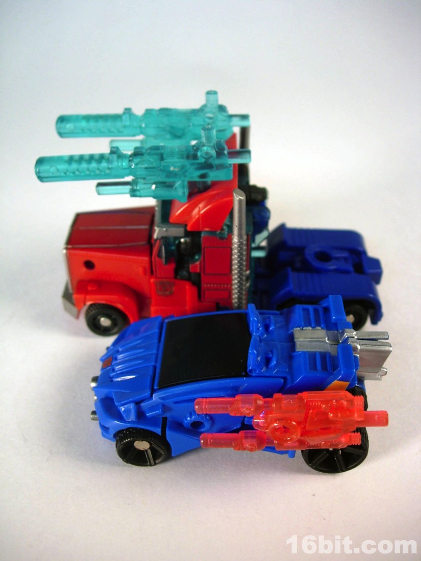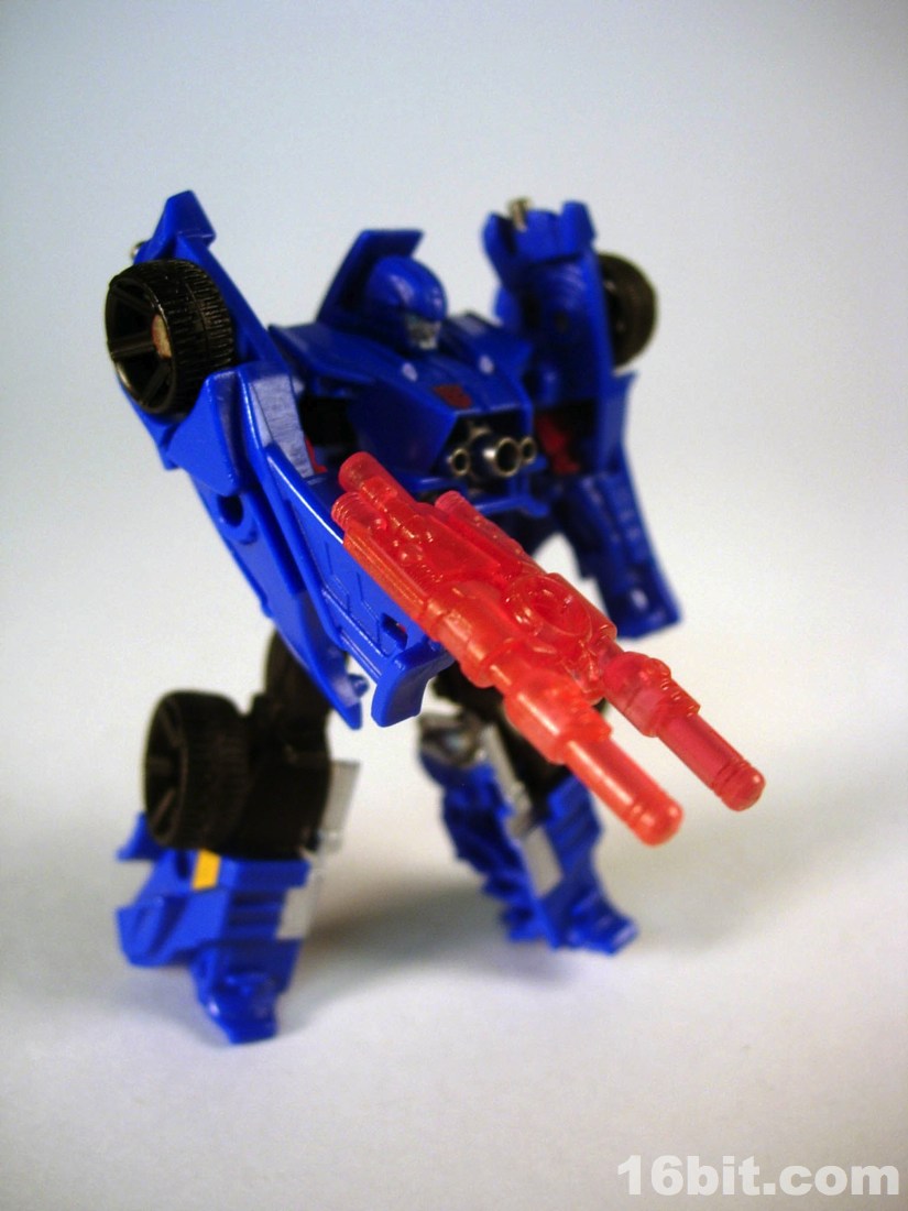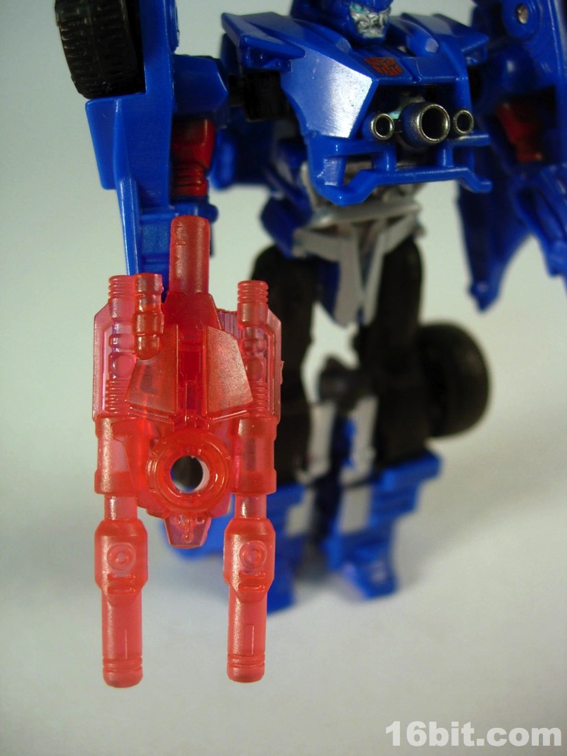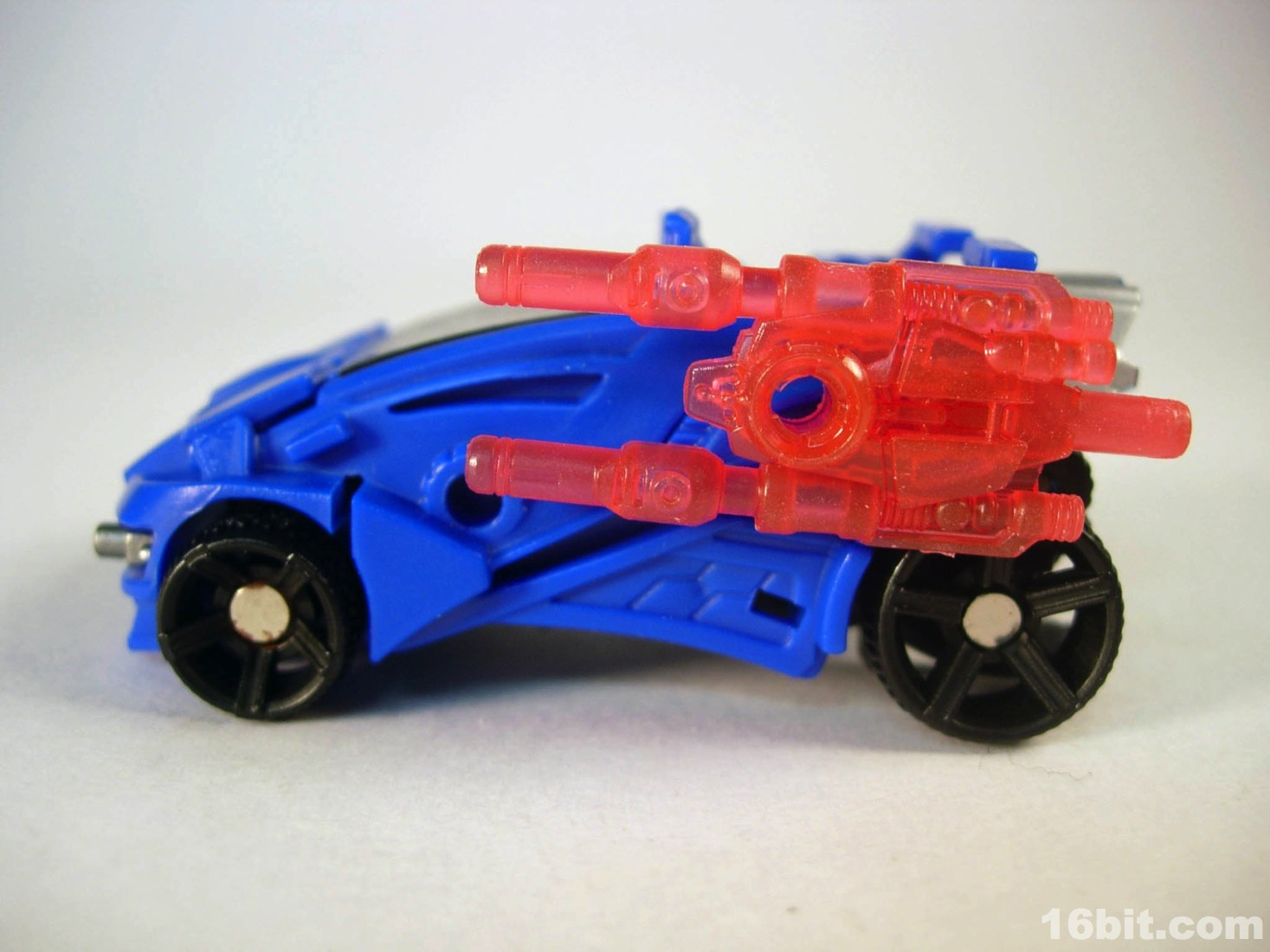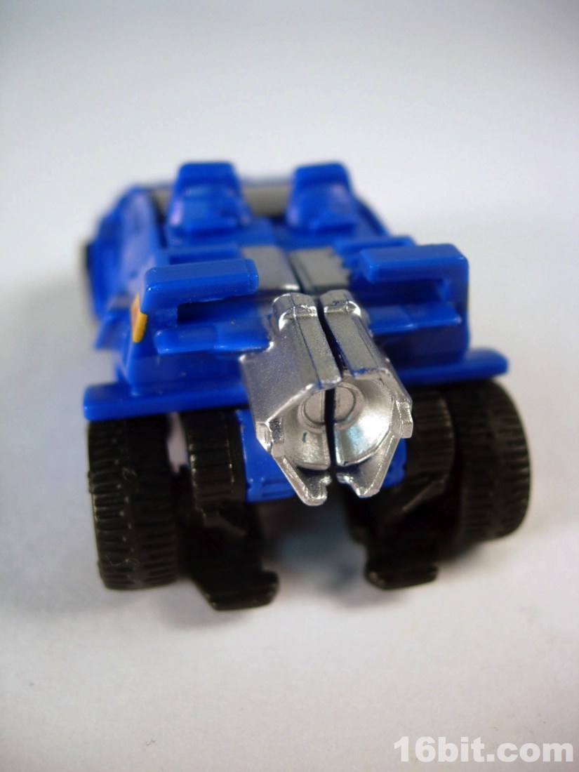 The wheels on my sample roll fairly well, which is a plus. The vehicle has no real action features to speak of, but there are a bunch of small holes on which you can attach weapons. Now that Hasbro has included weapons in all these figures, they're a little more fun: it gives the figure a little more oomph and the vehicle has one extra thing you can play with. It looks great, and I bet repaints of it would look pretty cool too.