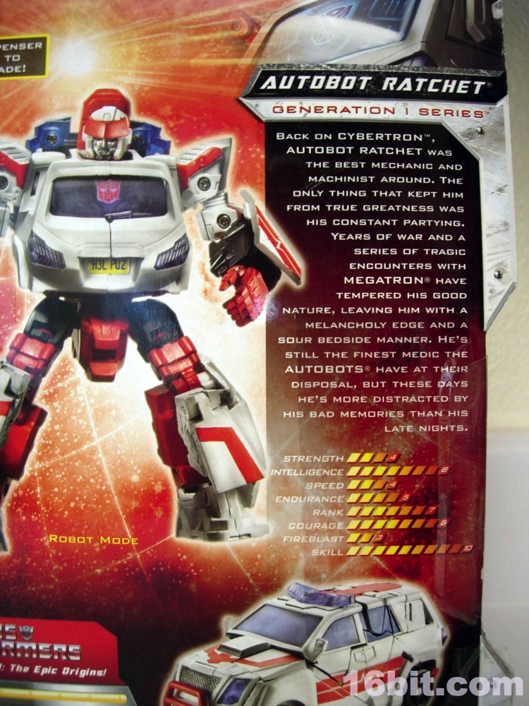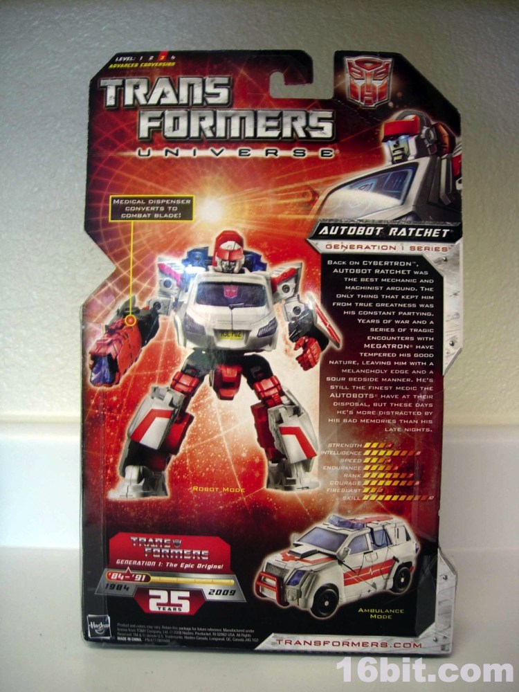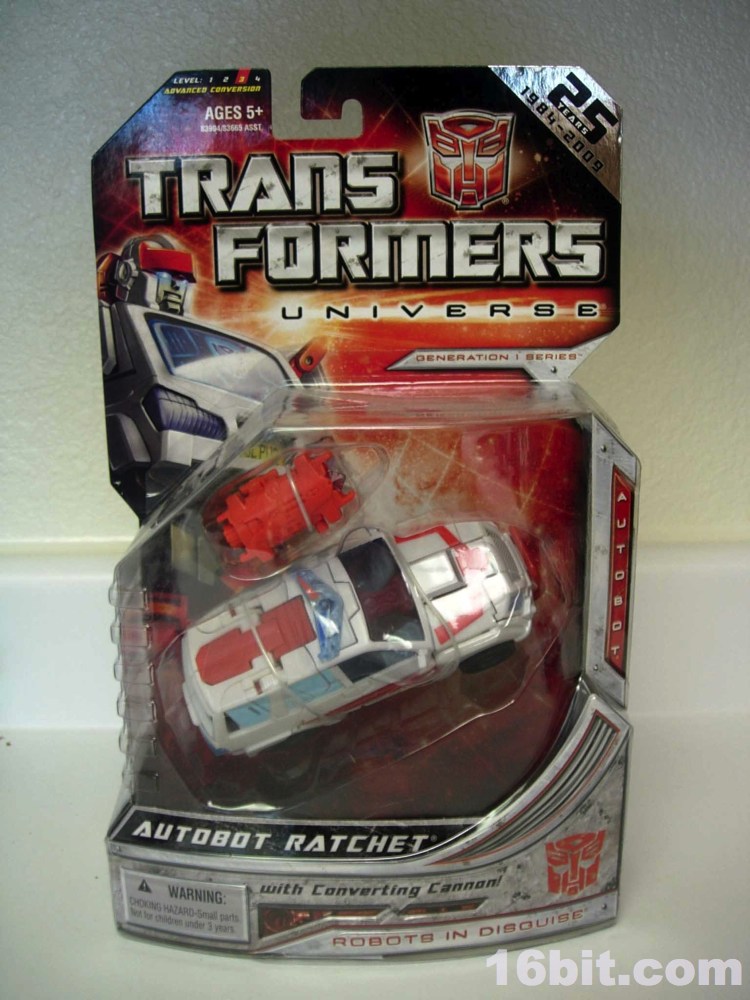 Since this is the only modern US-released transforming toy based on the proper G1 Ratchet, it commands a premium on eBay, which I find odd because Phoenix grocery stores were still drowning in Ratchets well into Spring 2011. Hasbro has done better, but G1 Ratchet's best official representation is probably somewhere out in the future. If the price is right, go ahead and get it, but just remember I warned you that it's disappointing. The gun/laser scalpel weapon is certainly a clever one, but it's not clever enough to make up for the chore that is trying to play with this toy. Hasbro can do better. I hope they'll try.