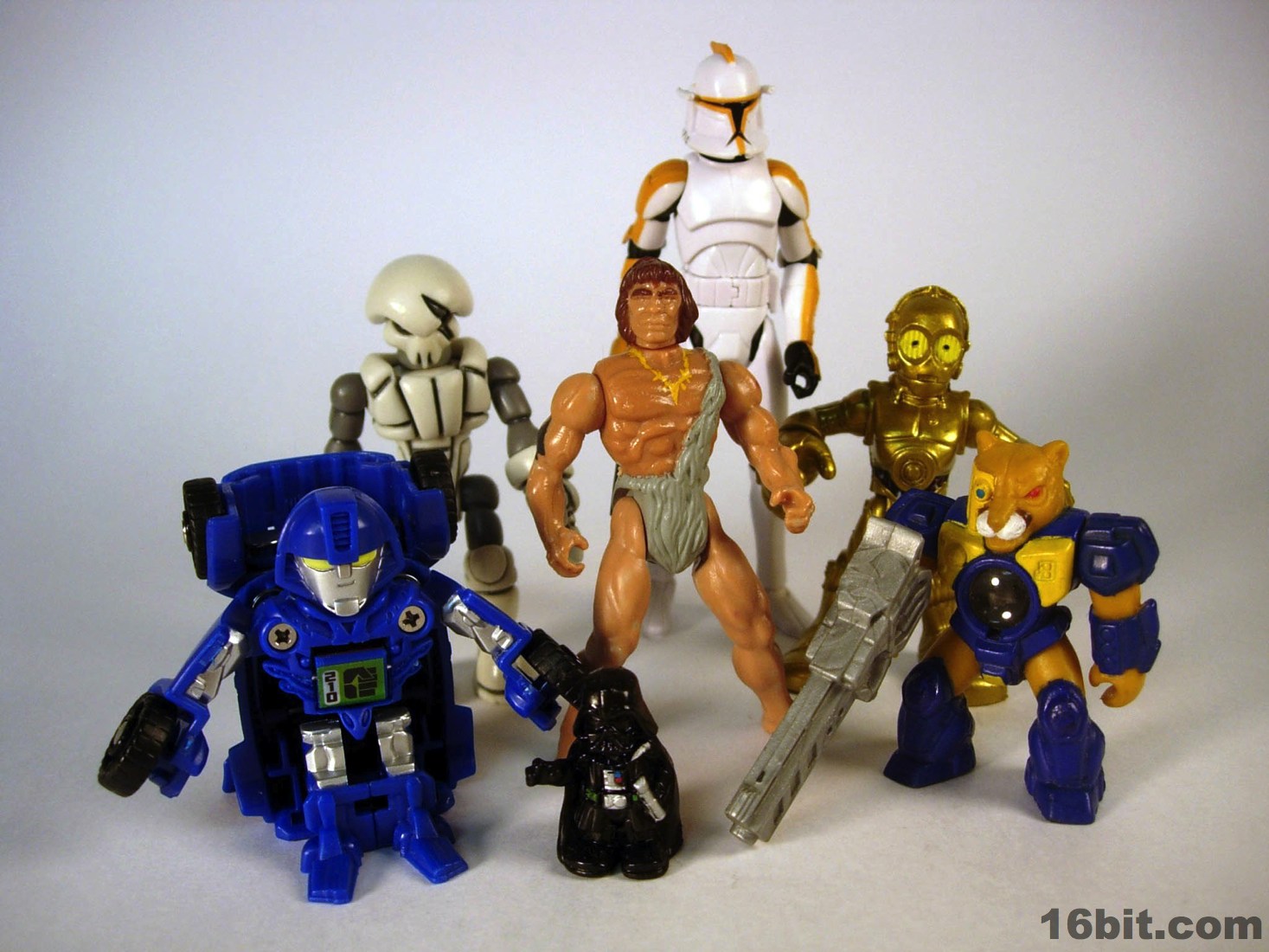 Today, this figure is still pretty cheap-- ten bucks or less should get you a carded sample. I won't say it's worth the asking price, because even when I was a kid I knew this was a pretty iffy toy. But I'll go a long way for a stupid hat, and the pterosaur bonnet is too darned goofy to ignore. If I stumbled on a case of Bone Age cavemen figures at the Big Lots! for a buck a piece, I can't say I'd be tempted to buy too many more on the merits of the aesthetics alone, or on the amount of fun I had with them as a kid. But they do have some really goofy accessories, and that counts for a lot in my book. As another footnote in the era where action figures were below 3-inches tall, but not yet "micro," it's a unique evolutionary step in toy development. He is basically a standard Kenner 5-joint figure, just smaller. Kenner was pretty smart to build more interesting toys with a smaller human figure as a companion, as were the other toy companies, but it seems this kind of smaller articulated has all but fallen out of favor, at least in the non-toddler or non-collector segments.