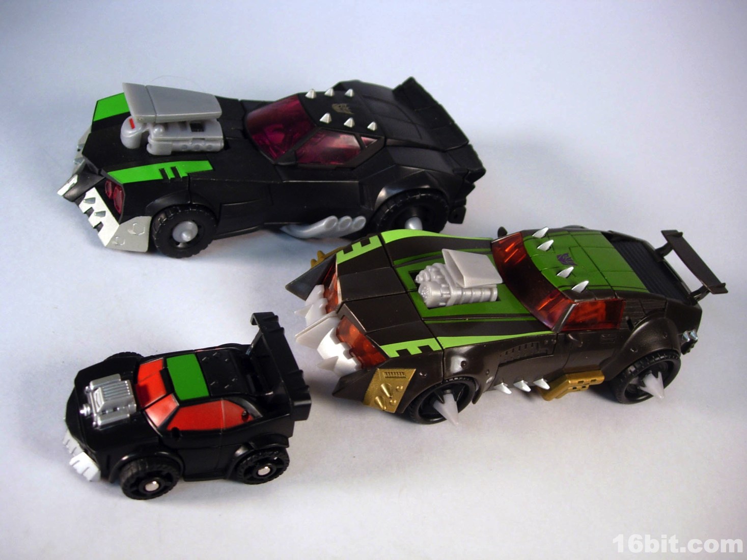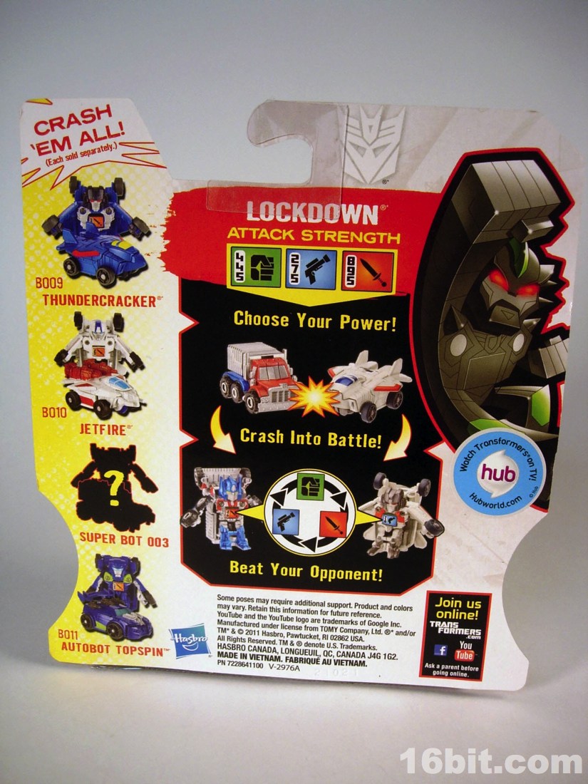 With no accessories, it is what it is-- a fun, cheap toy with a good sculpt and exceptional paint job. The car mode is notably striking in that Hasbro opted to paint more of the windows, generally we only see deco on the windshield but Lockdown has red all over the car mode. I'd go so far as to say this is the best-painted Bot Shots toy vehicle so far, given the silver engine and bumper are actually decorated. I'd love it if the spikes on top were painted as well, but well, you can't have everything. If you loved Animated you owe it to yourself to pick this figure up. Sure, it's completely devoid of articulation, but it rolls nicely and has a fun spring-loaded transformation. And none of the parts pop off during transformation. That puts it at the head of the Lockdown class, in some respects!