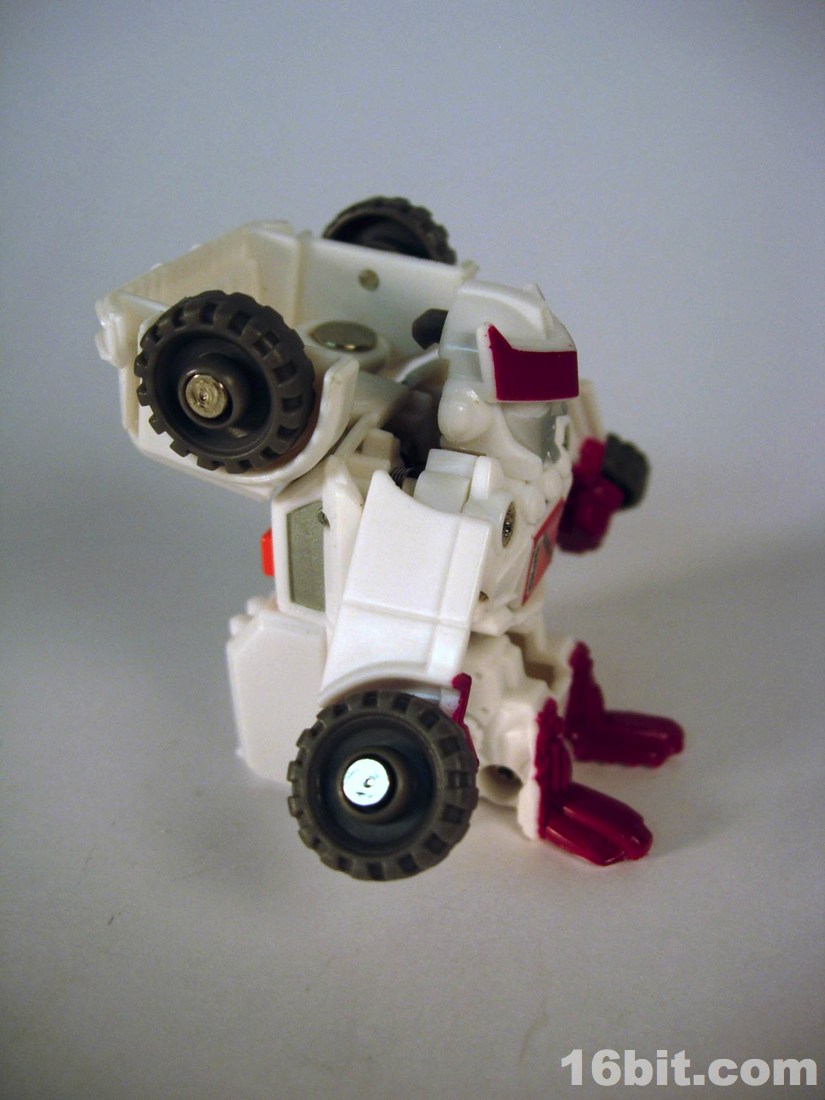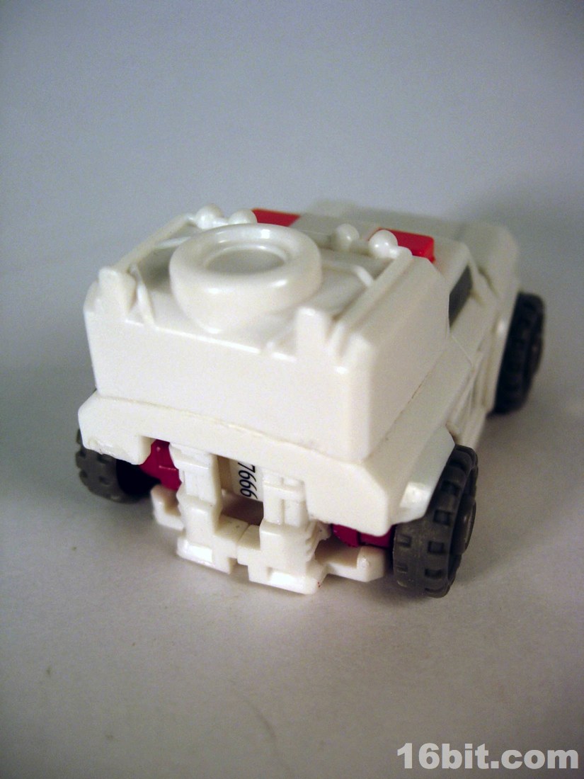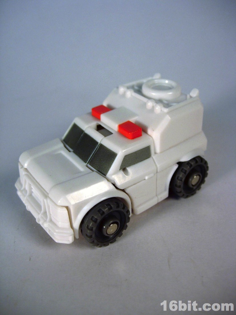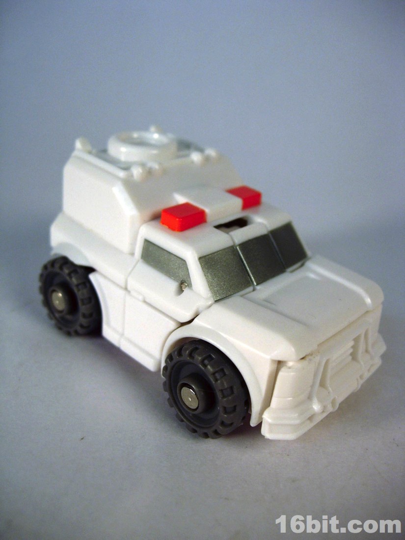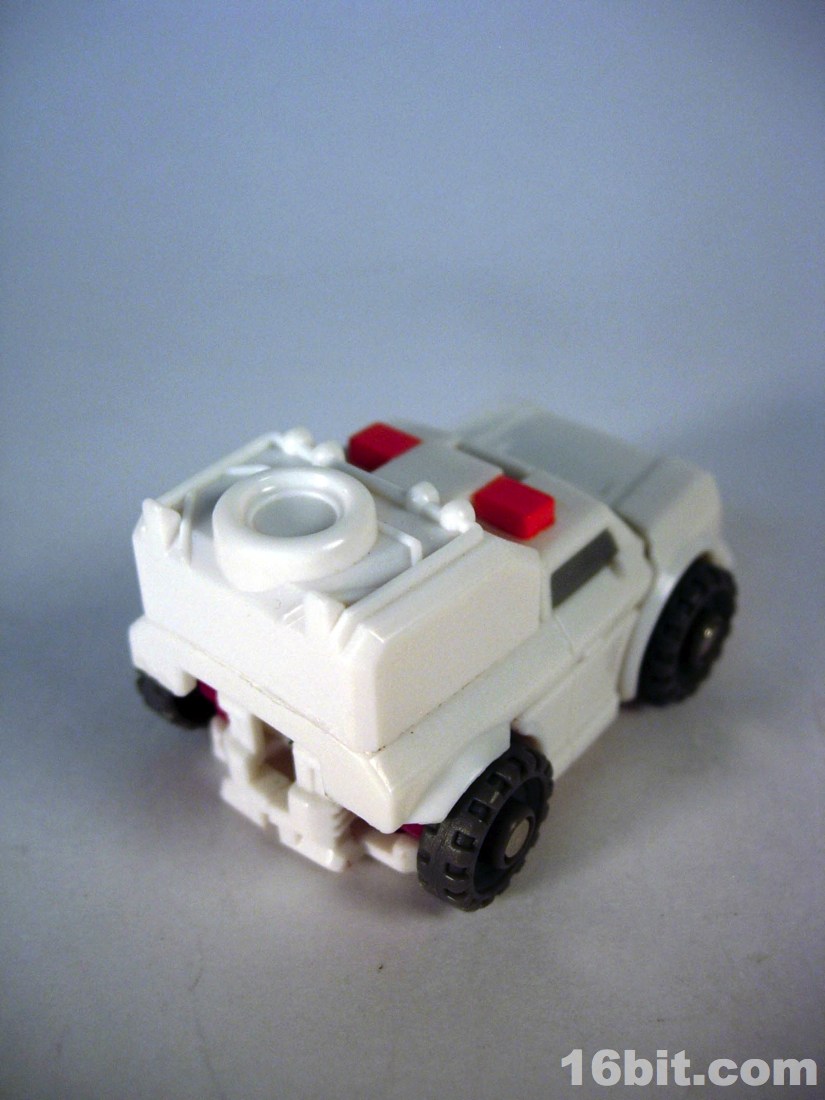 The smile was surprising for the character, but it's a pretty neat mishmash of Ratchetness. The red crest on his forehead is similar in color to the Prime incarnation, but the vehicle mode lacks the red paint on the more recent edition. As always, the wheels roll fine, the sculpt is good, and those of you with any skill can make this figure even better if you know how to paint things or can get the right stickers in place.