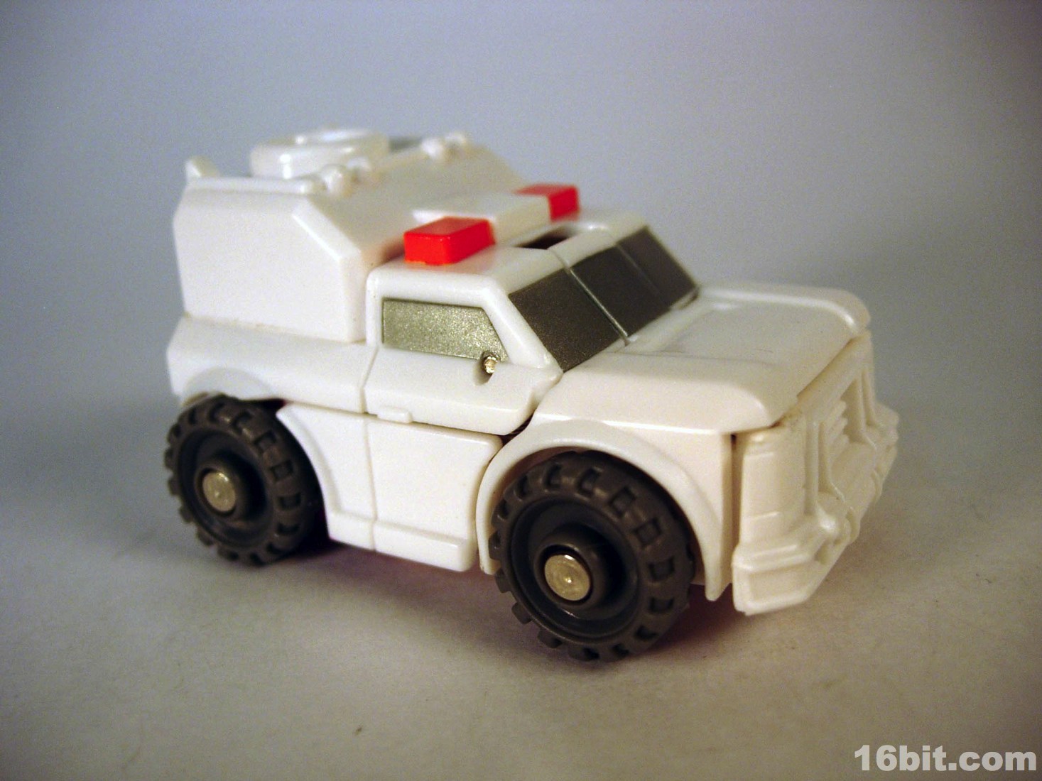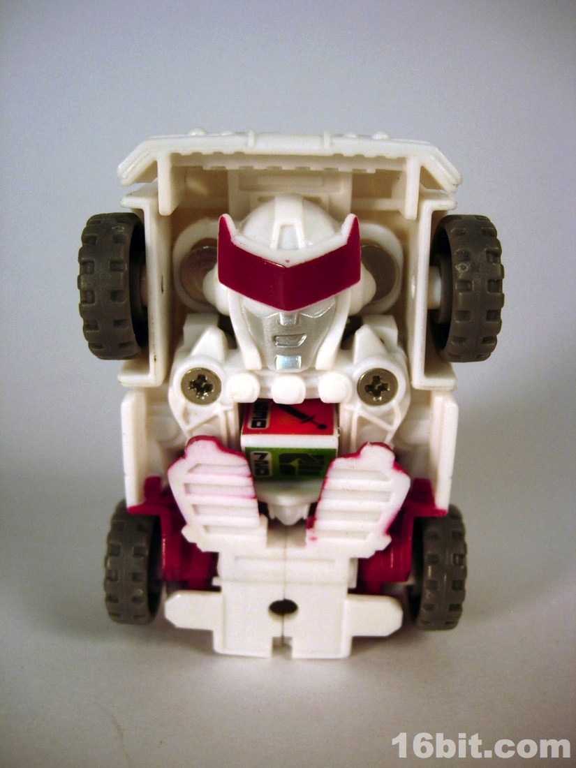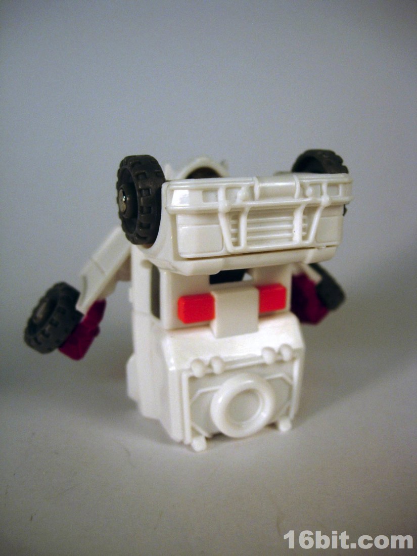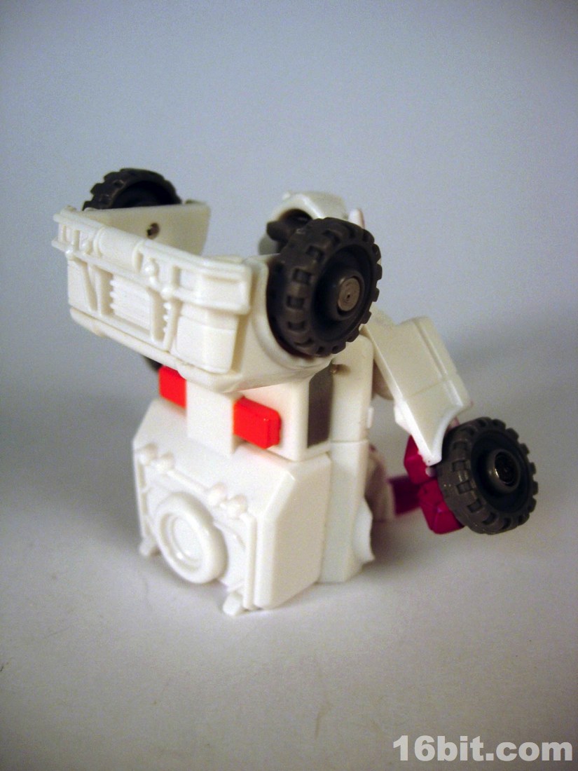 The smile was surprising for the character, but it's a pretty neat mishmash of Ratchetness. The red crest on his forehead is similar in color to the Prime incarnation, but the vehicle mode lacks the red paint on the more recent edition. As always, the wheels roll fine, the sculpt is good, and those of you with any skill can make this figure even better if you know how to paint things or can get the right stickers in place.