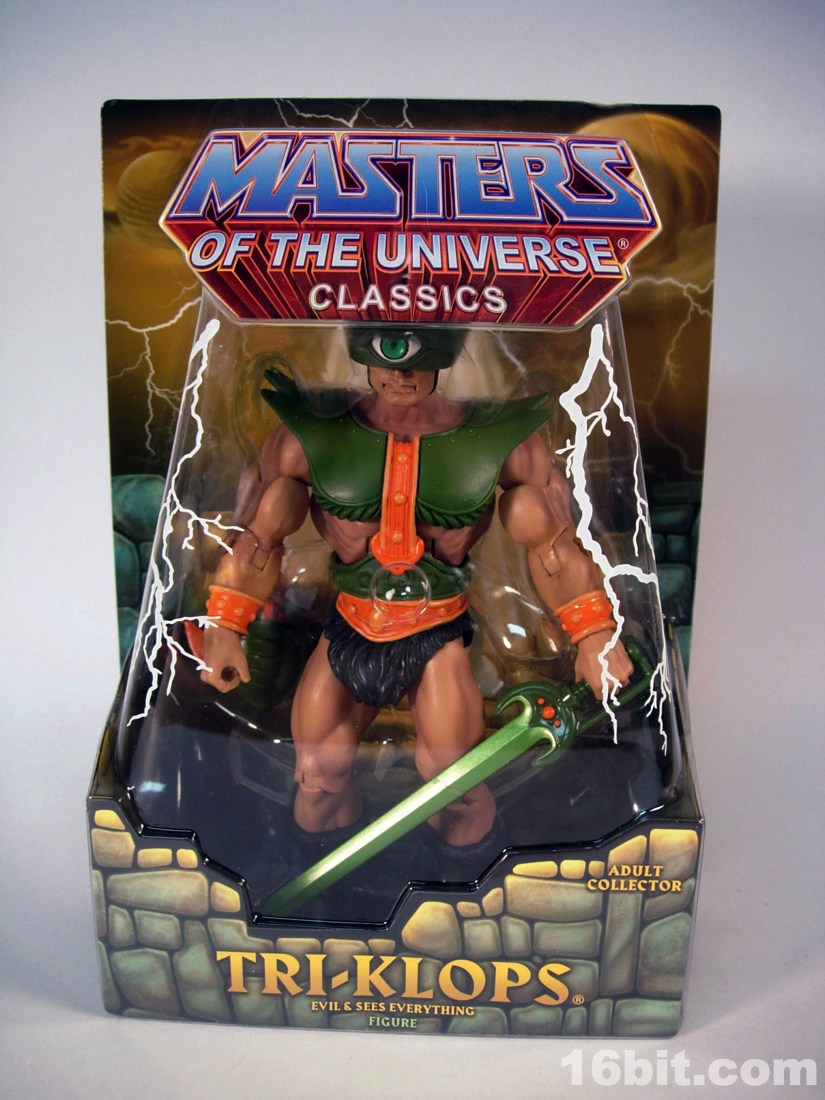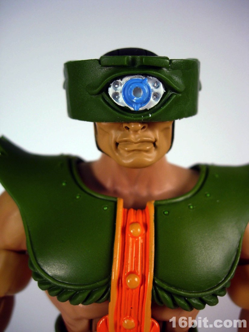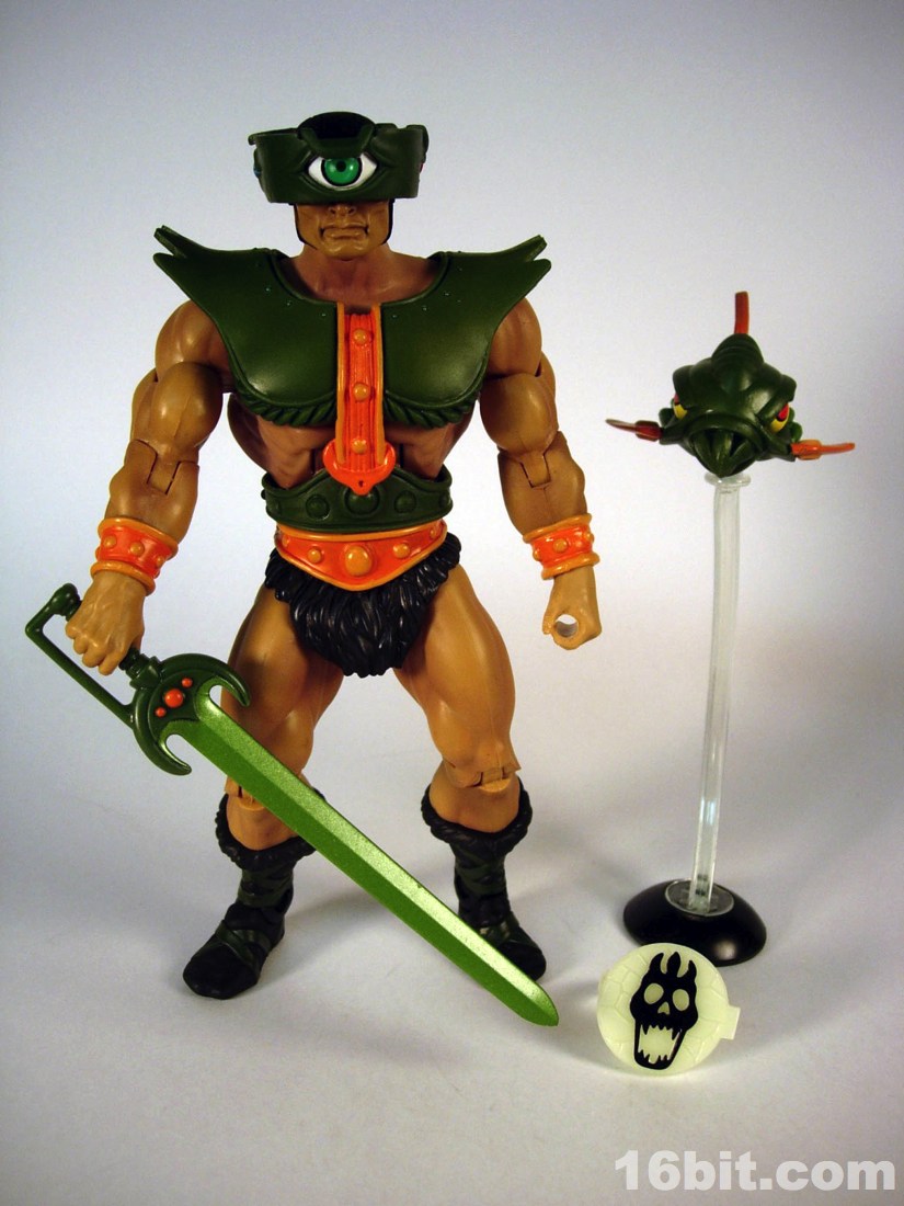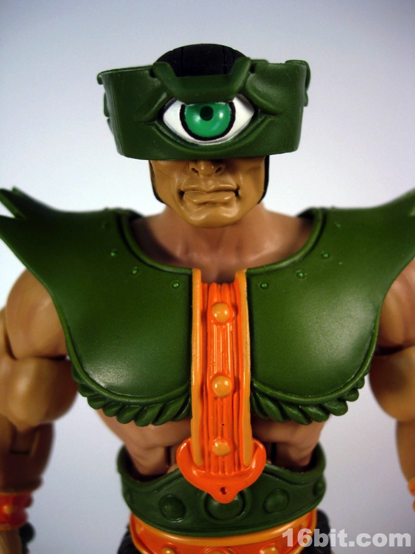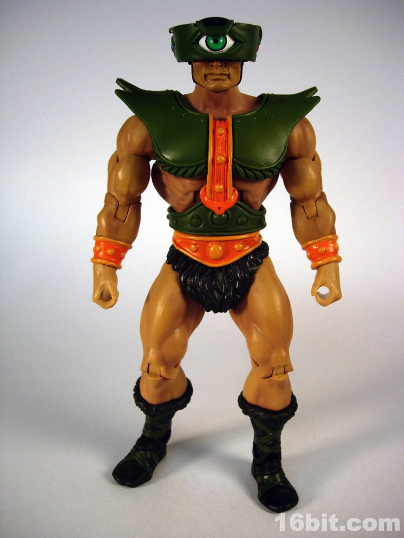 The pictures should show just what a nice paint job ol' three-eyes has, and I can't complain about his gear. The rotating eye mechanism works great, and the hands are a little softer than some other figures in the line, meaning he can hold his gear much more easily. If you make this the first figure in Masters of the Universe Classics you buy, you will be spoiled. I got him late and I gotta say, he's so good he stands up against 2012 figures and in most cases, is a little bit better. If anyone ever tells you this figure isn't good, ignore them. Like, on everything. And I mean on life-or-death stuff too, anyone who says this Tri-Klops sucks can't be trusted. Put this on your shopping list, you won't be sorry.
