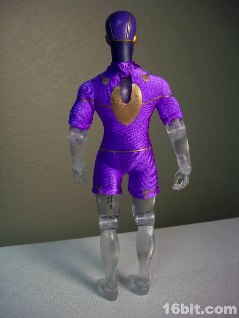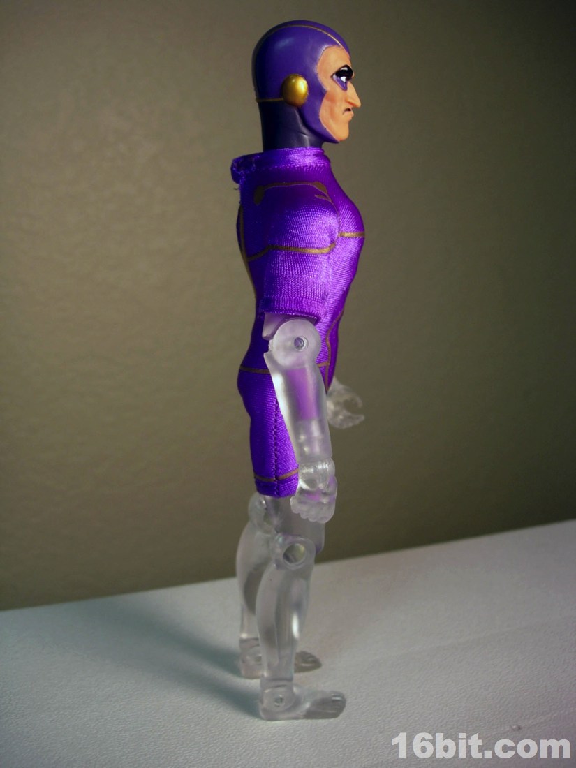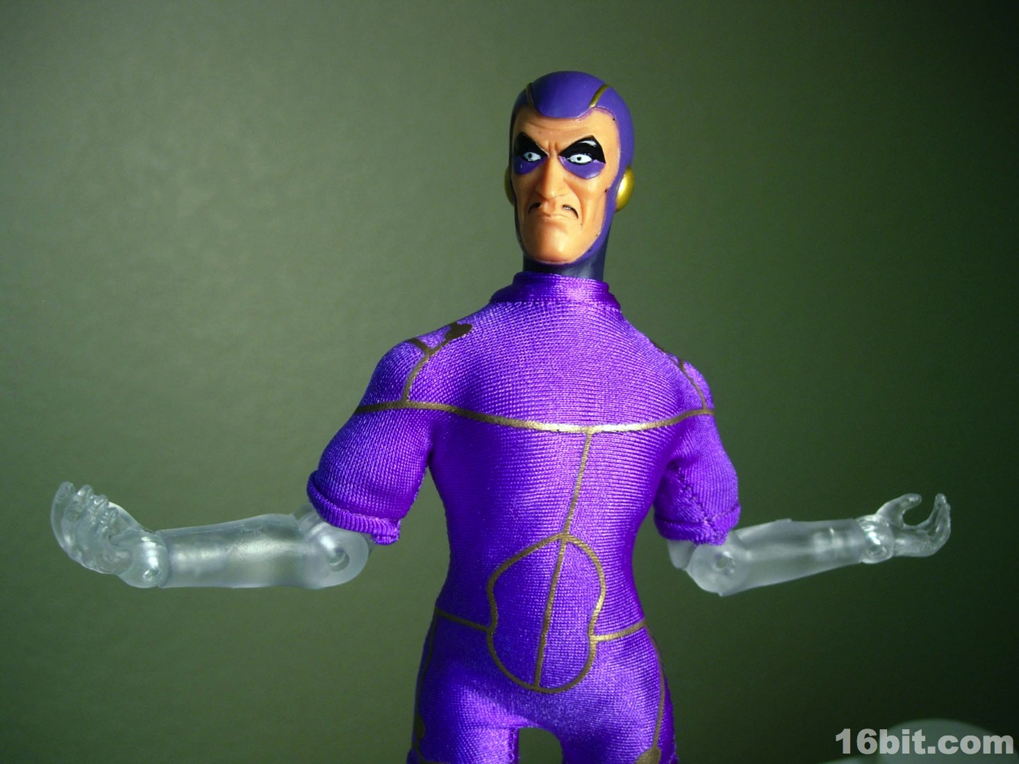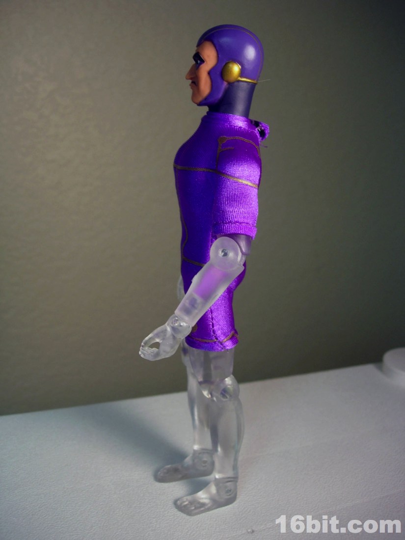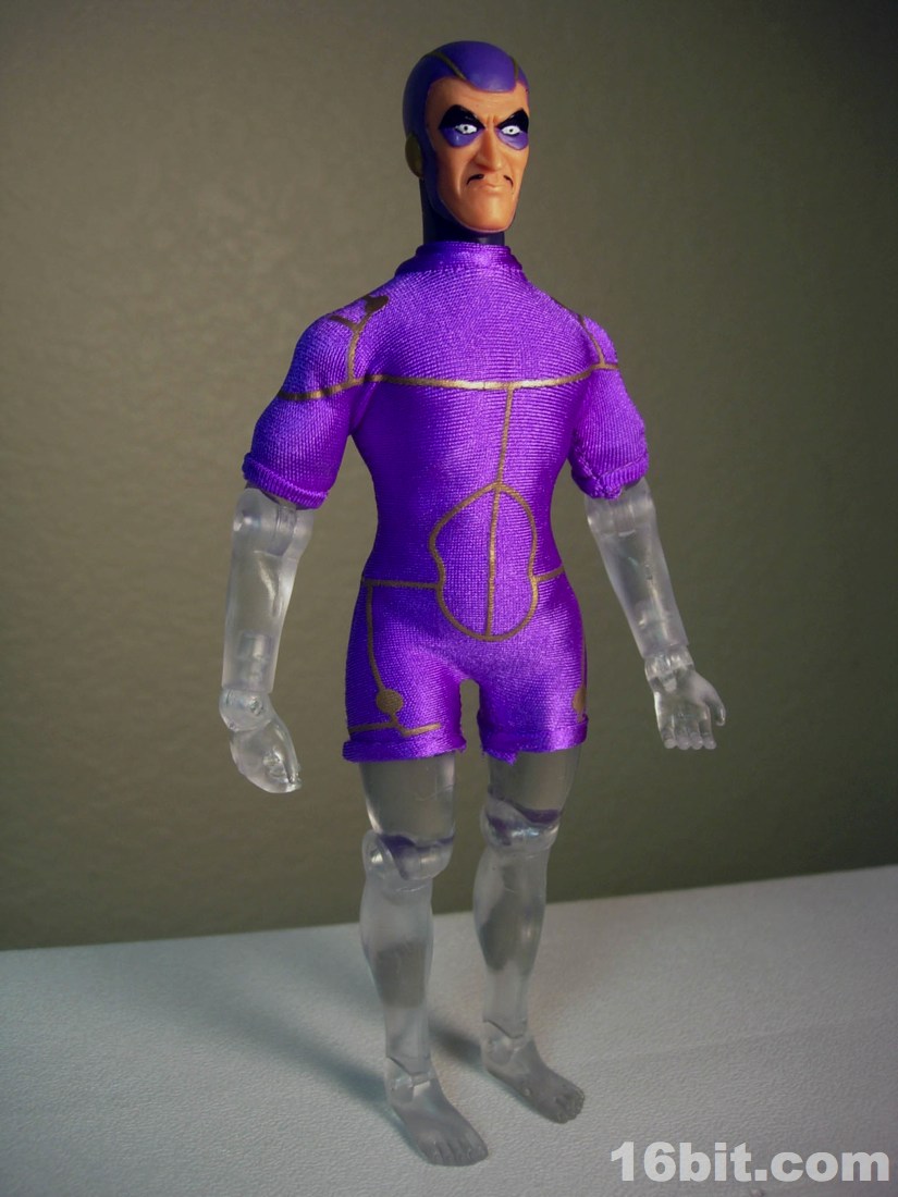 The majority of the Bif Bang Pow! figures are modern relics, new releases meant to evoke and old format, with all of its charm, limitations, and benefits. The Tom Baker Doctor Who may be the best example of plussing up the format, while Phantom Limb may be one of the more stripped-down releases. Compared to his casemate Dr. Orpheus, he doesn't exactly seem impressive, but as a popular character it's not like there's a lot more to do with this particular supervillain. Purple head, purple outfit, invisible limbs, he hits all the high points while the Mego format seems like a bizarre yet totally appropriate way to execute this outfit. It's like He-Man's furry shorts somehow just work on those figures, it almost feels like the series creators conceived of Phantom Limb just to be a Mego figure. (They didn't, as far as I know, but it sure as heck feels like it with the outfit and clear limbs.)