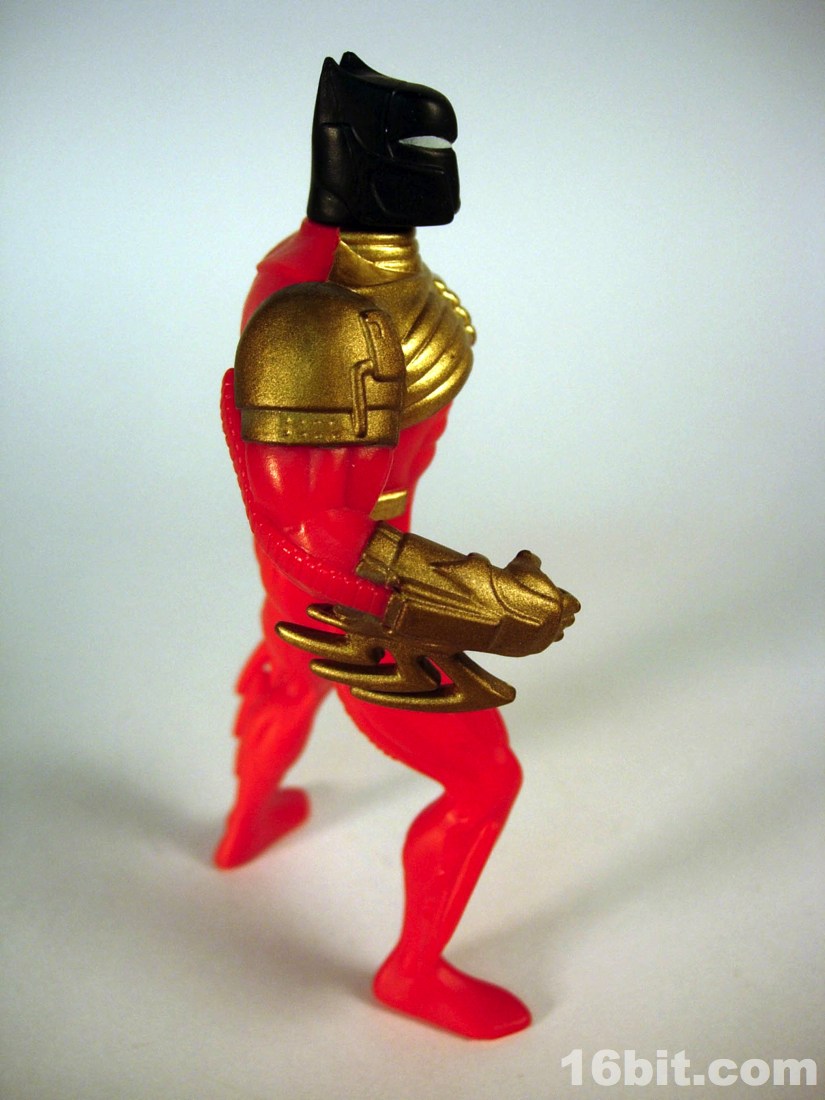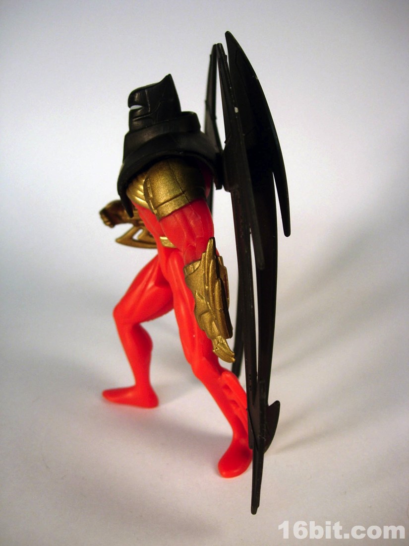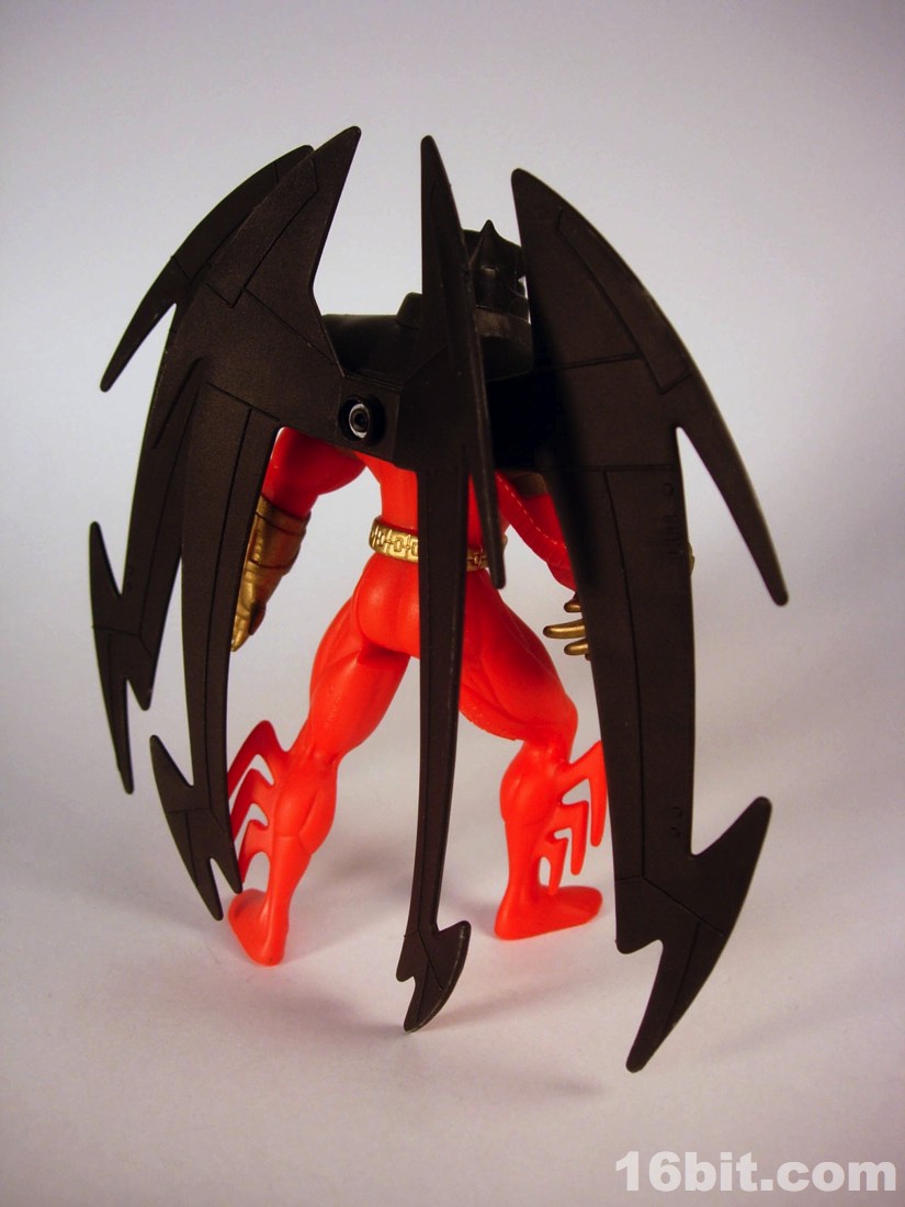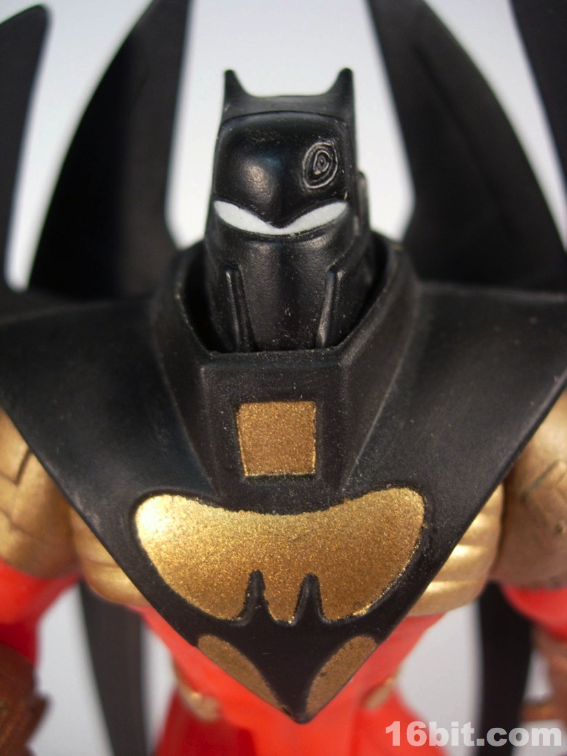 Bats isn't meant to fit in a vehicle, he's meant to stand around and look cool. These overly muscular figures have extreme poses and came out during a period where companies like Playmates and Kenner clearly understood that there were adult collectors out there, so the company started to walk the tight rope over the sea of kids with the collectorgators underneath. The black and gold paint sit nicely over the bright red figure, and the gold paint held up particularly well.