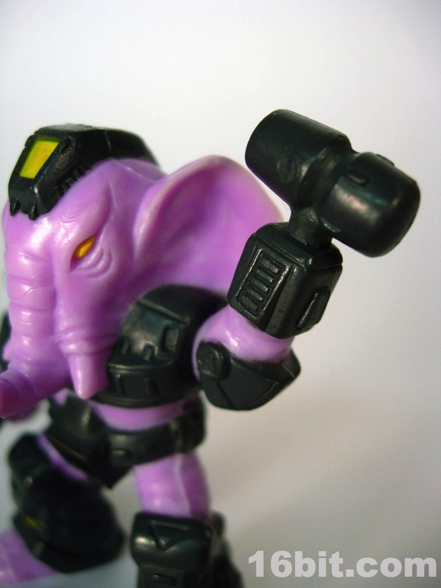 Like a few of the figures, the name is descriptive of a feature on his person. His left hand is a giant hammer, so "Sledgehammer Elephant" makes a lot of sense as far as names go. It also calls attention to a handicap, it'd be like calling someone with one leg "Stumpy" or something. As a kid I always preferred hands to weaponized hands, except on this guy. I liked hitting other figures with his hammer, and if they ever made a giant version of him with a spring-loaded arm I'd totally buy it. It's just so dang much fun to have a built-in hammer fist, which as of yet neither new beast line seems to have. Although I guess with the Minimates, it'd be really easy to replicate by grabbing a few of the other figures and swapping parts. Hooray, customization!