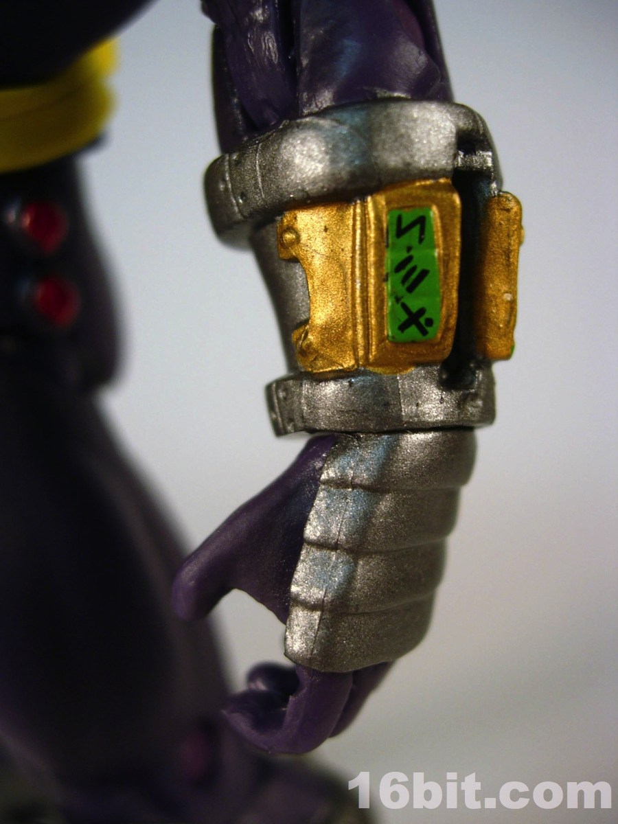 As most of the figures in this line, Spector is made of previously used parts like Trap Jaw's left hand and feet/shins, Optikk's "loincloth," and the standard buck outfitted with a new head, a new harness, and a new left wrist. The head looks properly heroic, but the wrist is particularly amazing as it's packed with tons of detail and probably had more paint applications than most vintage 1980s figures. There's gold and silver, a little bit of dirt, some green, and some black which all come together to make an almost alien, definitely futuristic control device which is clearly beyond our understanding as mere mortals.
