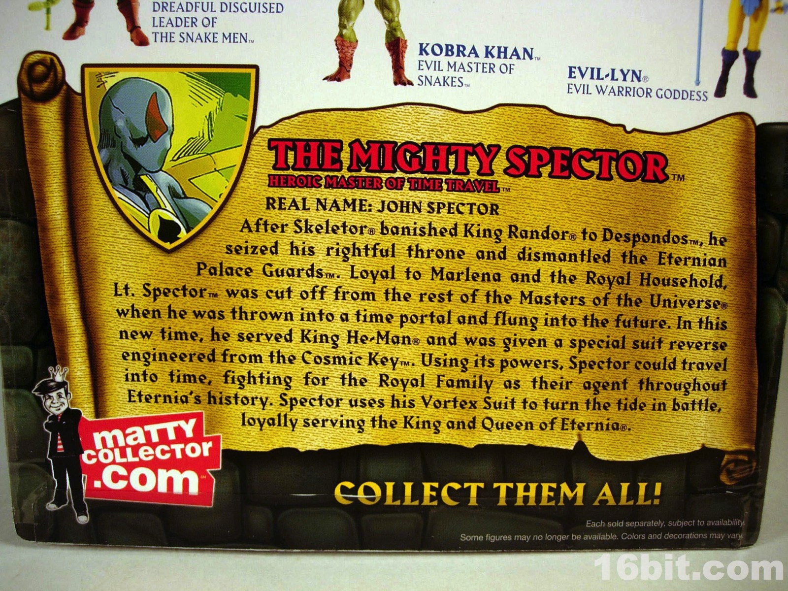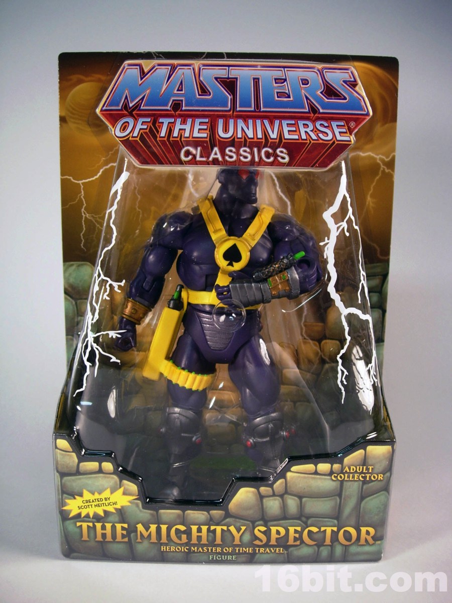 It might be bad of me to say this but there are times where I enjoy watching the ant farms that are toy forums get shaken up a bit. With The Mighty Spector we got to see the small (and intensely passionate and vocal) members of the Masters of the Universe's most popular board lose their collective cool for several months, despite the fact this is a pretty good figure. As a fan of the line who's not, shall we say, "engaged," I generally just get my figures and enjoy them. The line has its ups and downs, and some.shtmlects I don't necessarily love, but I don't begrudge the line for including a She-Ra character here or there as they have their fans. With Spector, Mattel made a separate subscription with six original characters and well, you could opt out. I guess figure fans are the same all over, so many of us feel compelled to buy every last one in a line regardless of if we like it or not. I'm glad to say I like this one.