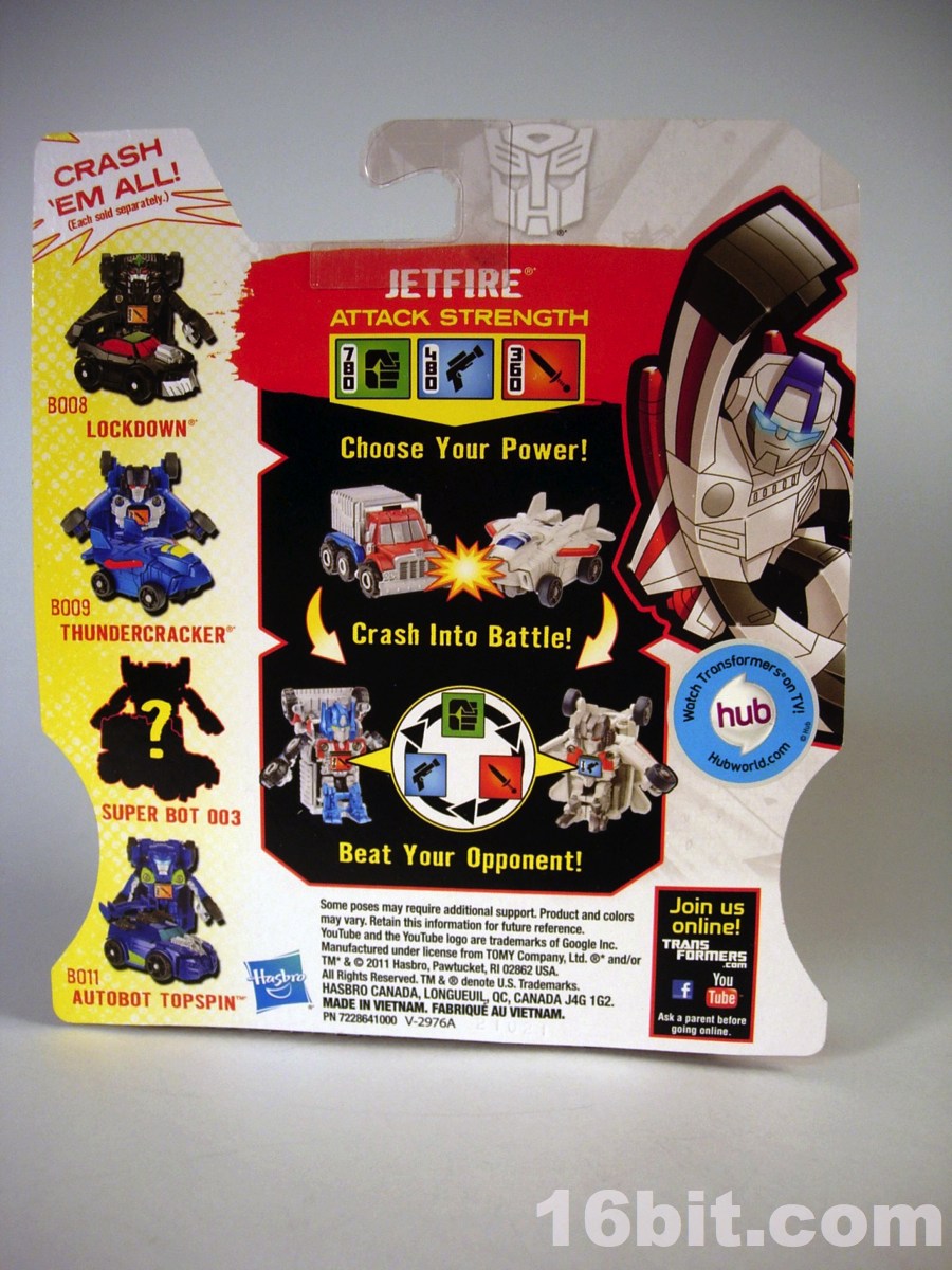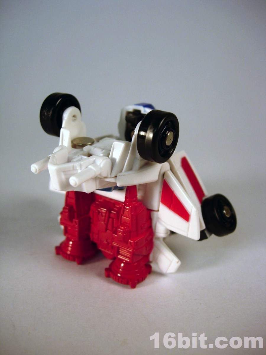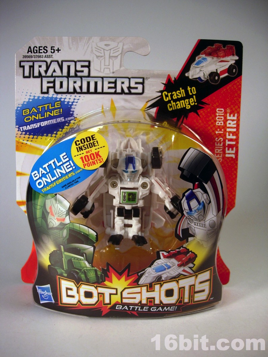 I like this line because it really does a great job mixing generations. Bot ShotsJetfire recycles Starscream's basic chassis, but adds engines and a new head and, of course, new paint. This time around the figure borrows heavily from the original cartoon as well as the Classics toy, which moves it away from the original 1980s toy's origins in Macross/Robotech. At this point, it basically just looks like a supercharged fighter jet rather than an intergalactic anime battle ship of some sort.