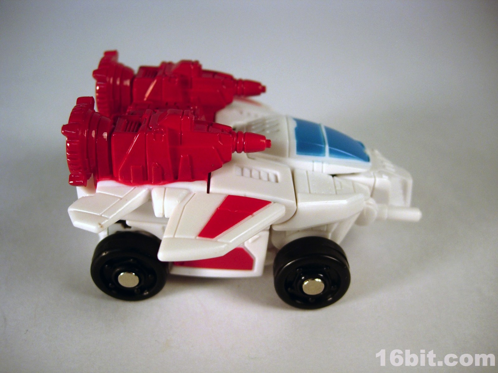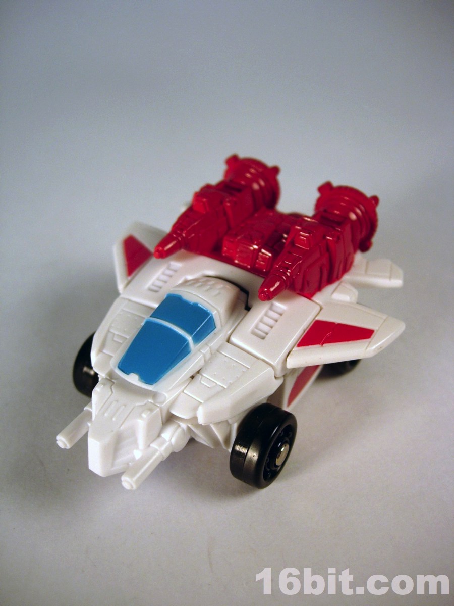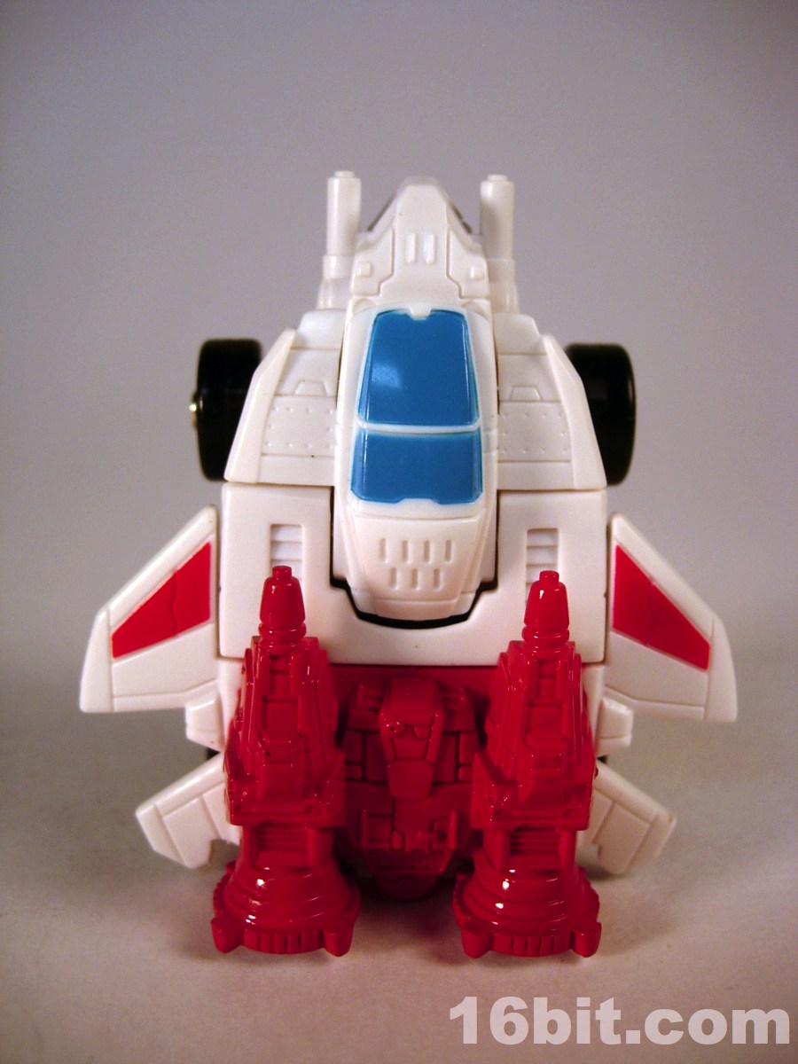 I like this line because it really does a great job mixing generations. Bot ShotsJetfire recycles Starscream's basic chassis, but adds engines and a new head and, of course, new paint. This time around the figure borrows heavily from the original cartoon as well as the Classics toy, which moves it away from the original 1980s toy's origins in Macross/Robotech. At this point, it basically just looks like a supercharged fighter jet rather than an intergalactic anime battle ship of some sort.