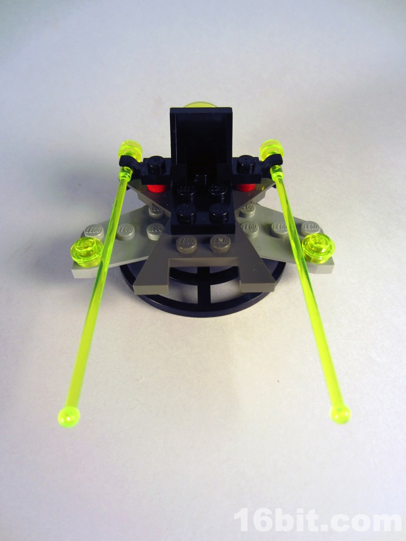 The minifigures have long been a selling point of larger LEGO sets, so any chance to get a figure for a dollar or two is usually met with some form of glee. The nameless UFO Alien (or robot) has a swell removable black helmet with some hose detailing on the sides and a flat, undecorated surface on the top. If you pop off the helmet, you'll find a clear red head and a fairly ornate torso with buckles, belts, and what might be the internal structure of the creature. Despite being a freaky being from another planet, he somehow still retains the jovial smile and arguably friendly expression found on most LEGO figures from before they started giving them other emotions. It even has printing on the figure legs, which was still somewhat new and exciting during this era.