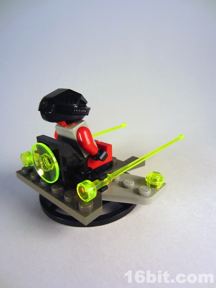 As part of a collection of 12 small sets, the closest price point and product type available today are the Minifigures, which are about $3.50 each. So let's review: in 1998, you could buy a figure with a small vehicle for $2 or even less. Today, one figure is $3.50. Of course, one disadvantage of the good ol' days is sets were usually closely tied to the existing big "themes" out there, which meant you could expect some variation on pirates or space or city or castle without anything too wacky. This little Space UFO Spaceship is pretty by-the-numbers stuff, reusing parts you probably also saw in the 1980s to make a little flying craft that has no visible controls. It's a chair with some engines and a satellite dish on the bottom, so it's not really a practical toy or a particularly involved build, but it does make for a value-priced figure delivery system.