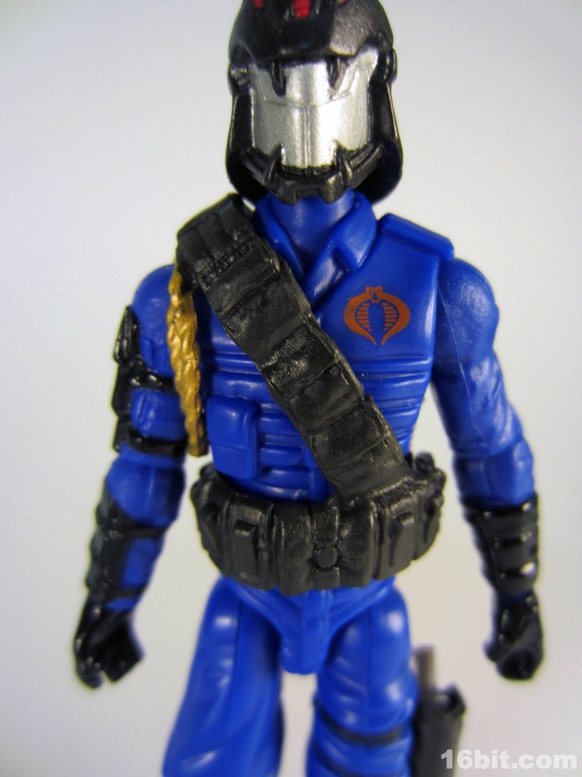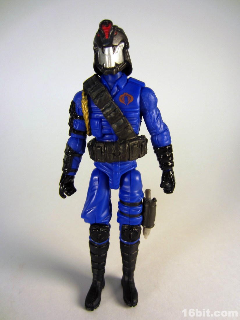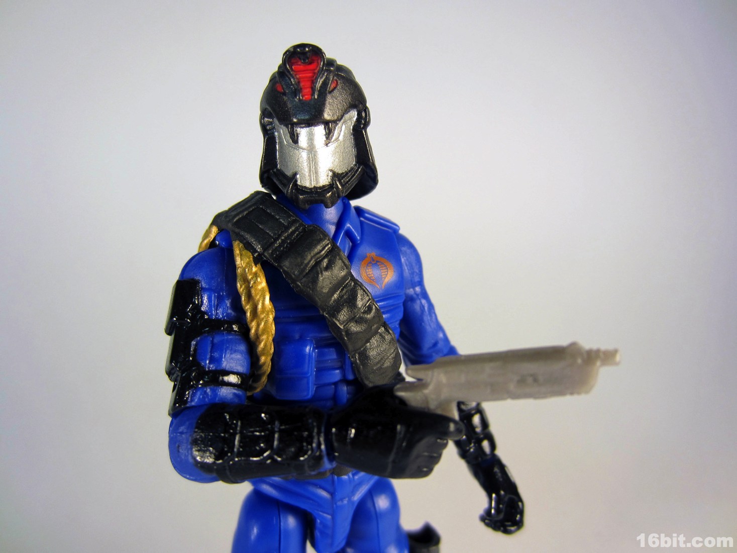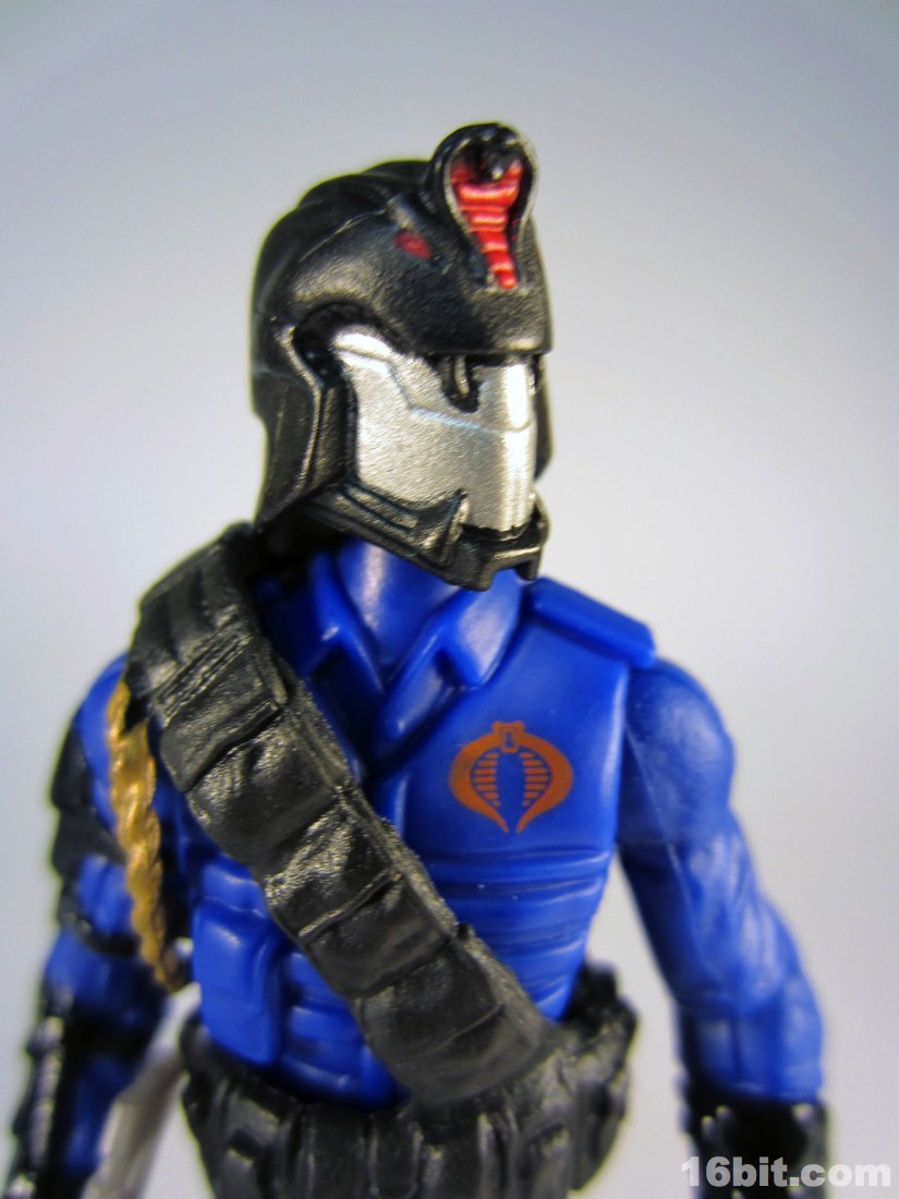 Note for future generations: the movie G.I. Joe: Retaliation was originally scheduled for release on June 29, 2012 with the toys bowing on/round May 29, 2012. The movie was delayed until March 2013 mere days before the official toy launch, so several figures made it out to market. It is unknown if 100% of wave 1 shipped, if all the blue Cobra Commanders shipped (or were being held back), and so forth at this time. It might be a very common figure when the second launch comes in early 2013. The reason given for the film's delay was a decision to add 3D to the movie to increase overseas ticket revenues, but many are speculating it's to un-kill off a major character due to an actor's rising star power. The reduced articulation in this figure is also seen on other figures in the line, but it doesn't suffer too much for it. (The loose joints, on the other hand...)